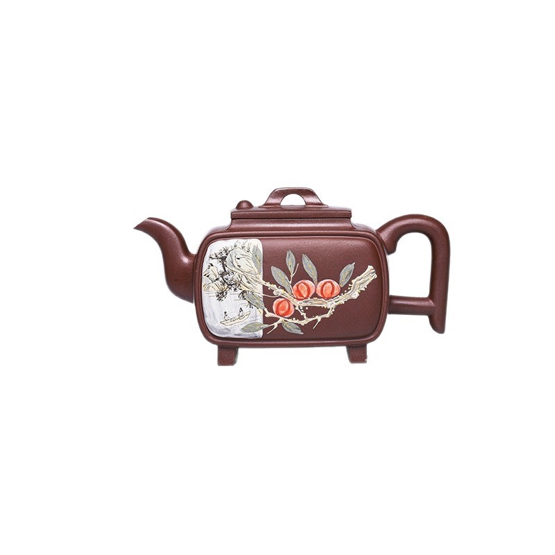 宜兴手工紫砂壶家藏紫玉金砂四方金凤泡茶壶证书齐全