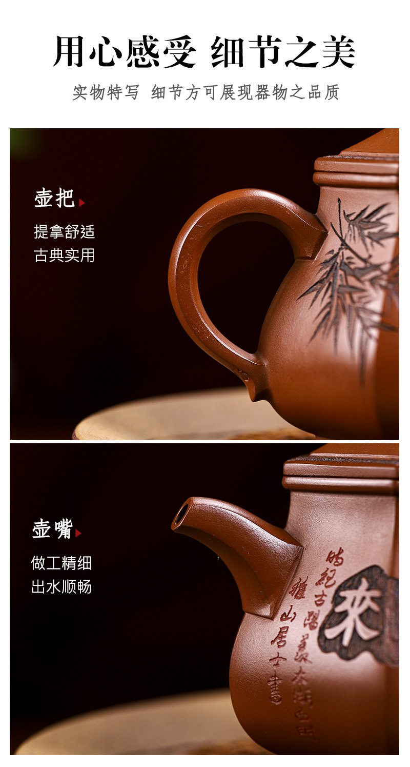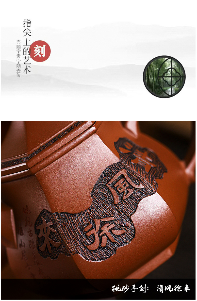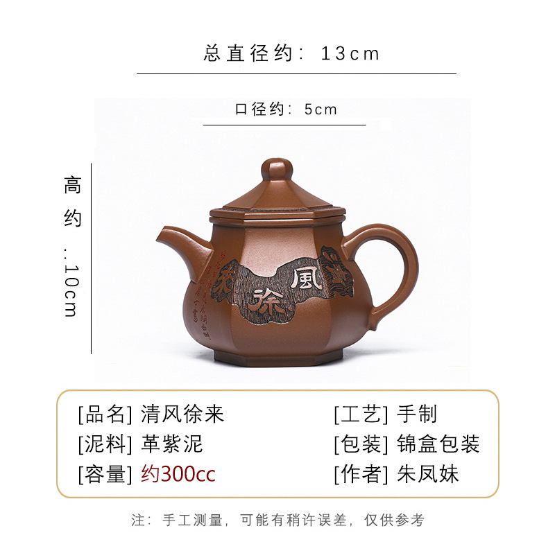 商品名称:宜兴手工紫砂壶家藏革紫泥清风徐来茶具茶壶泡茶壶出水爆爽