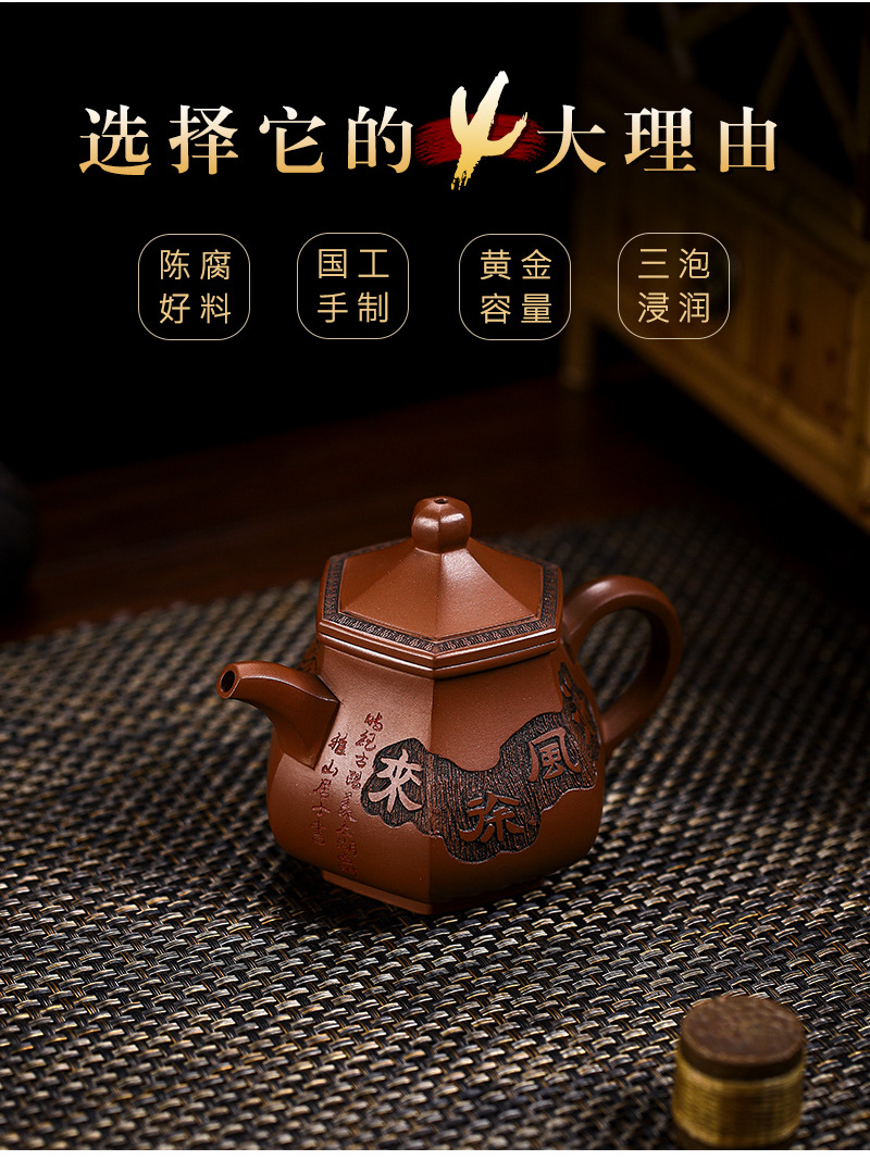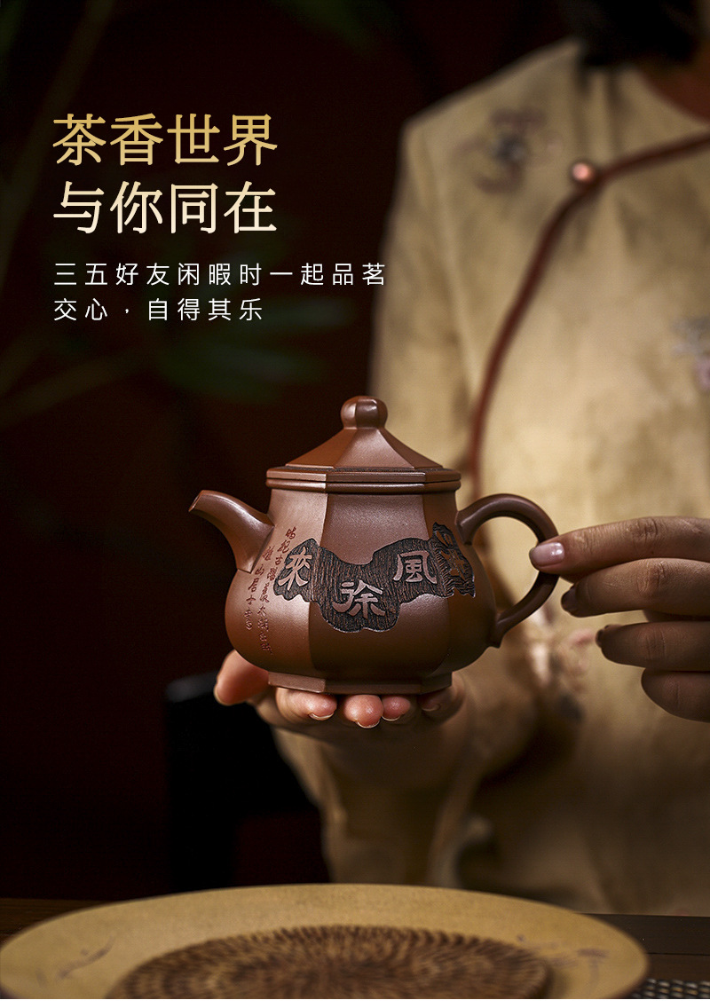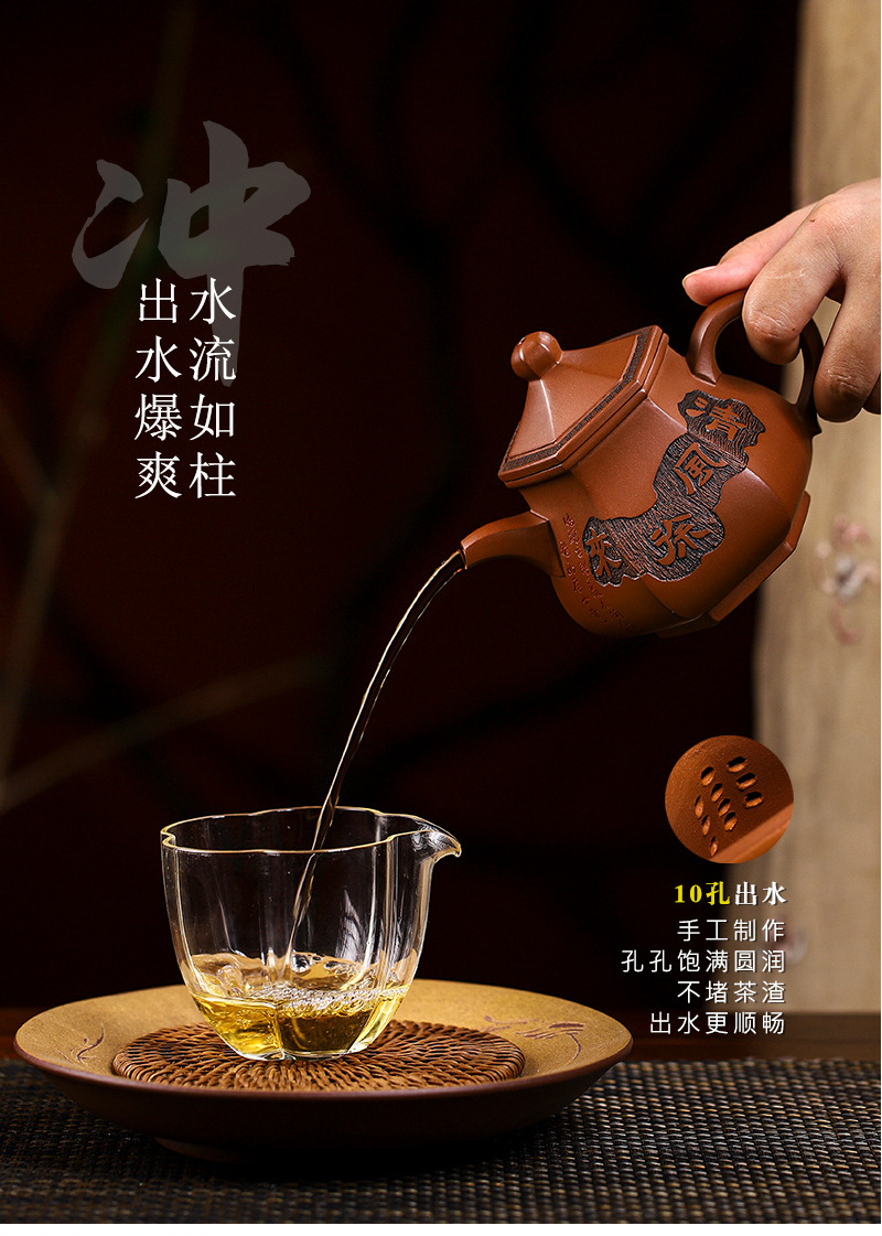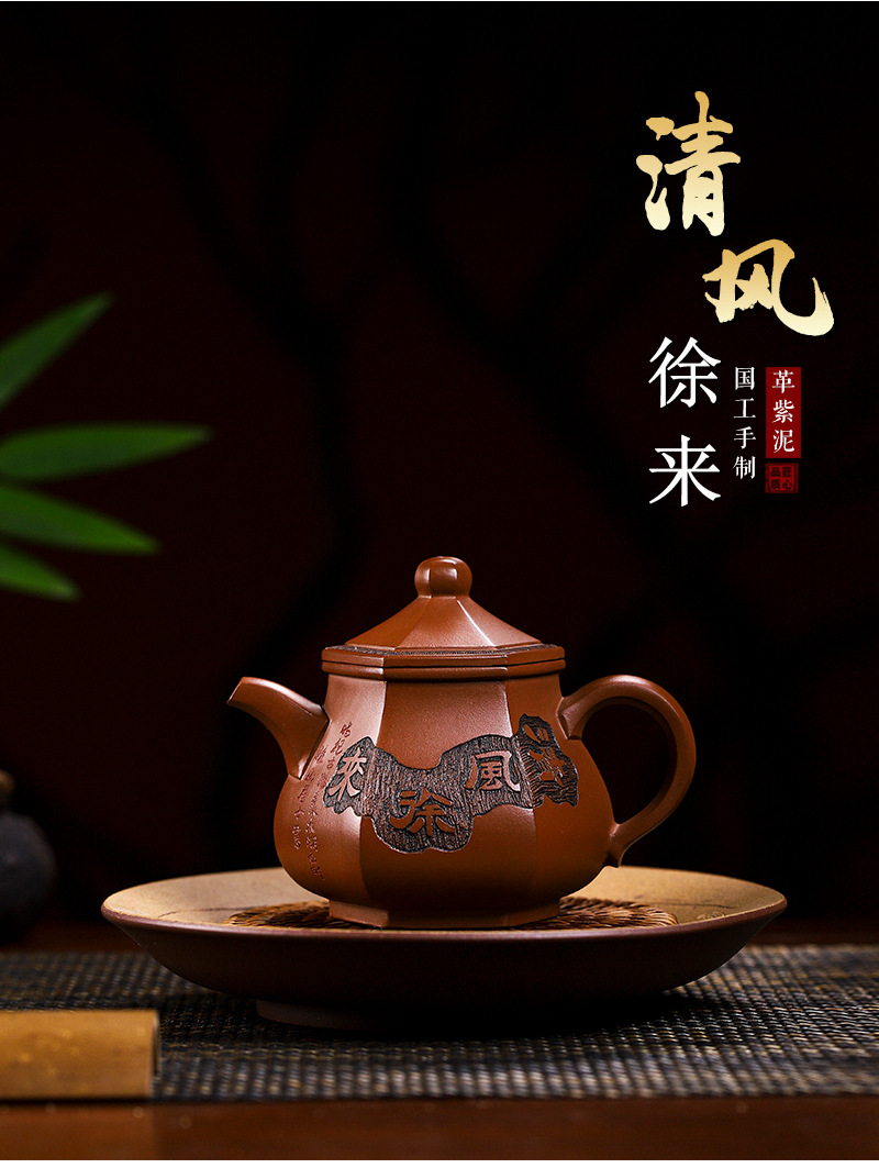 商品名称:宜兴手工紫砂壶家藏革紫泥清风徐来茶具茶壶泡茶壶出水爆爽