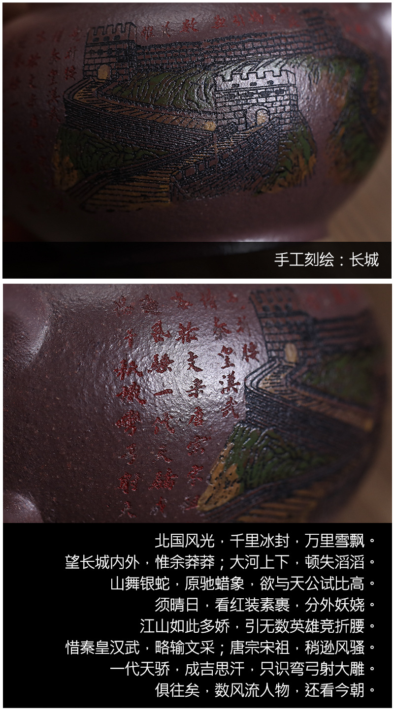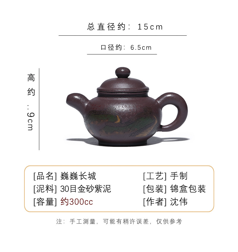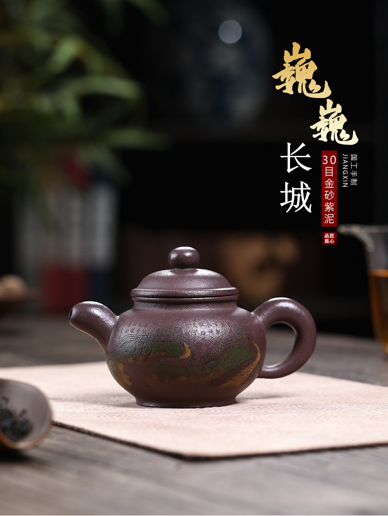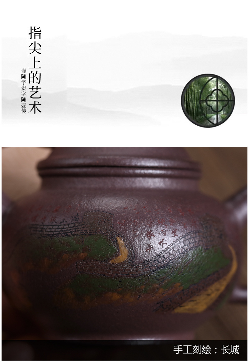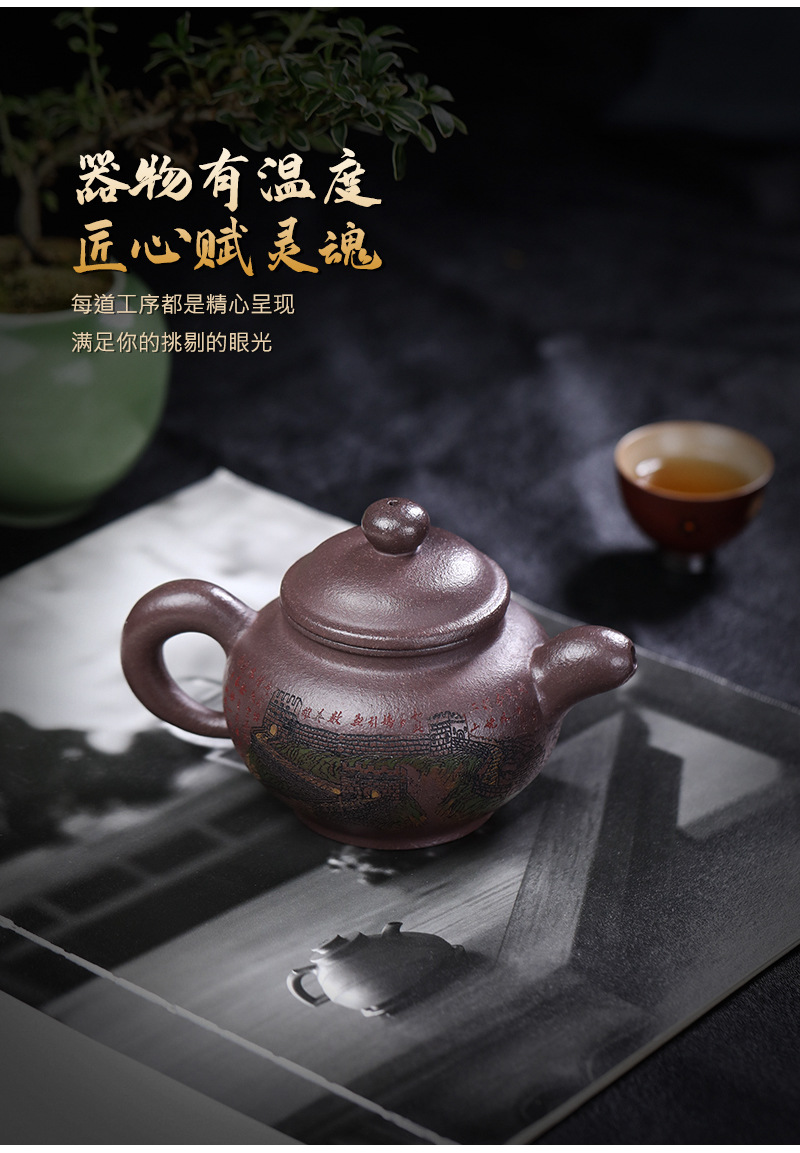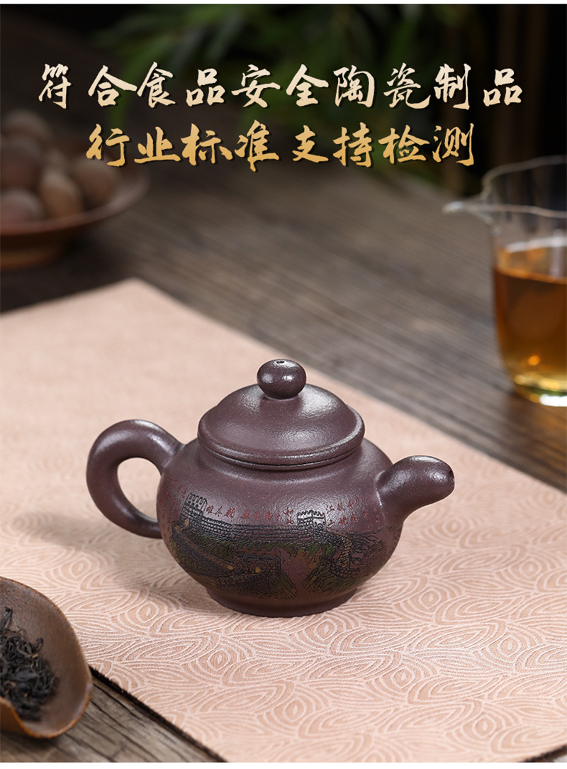 商品名称:宜兴原矿无添加手工紫砂壶巍巍长城30目金砂紫泥家用茶具茶壶泡茶