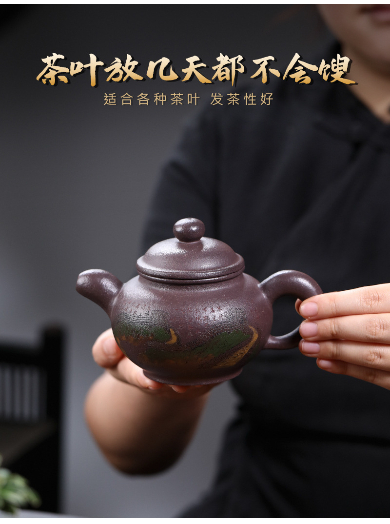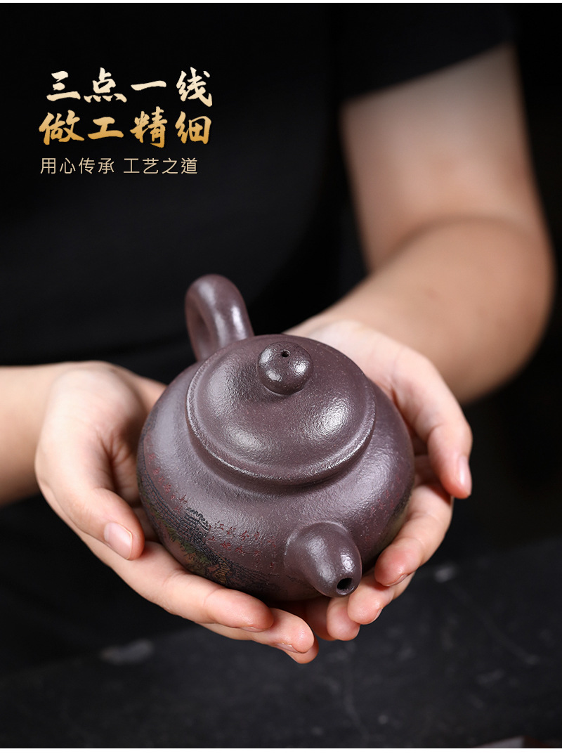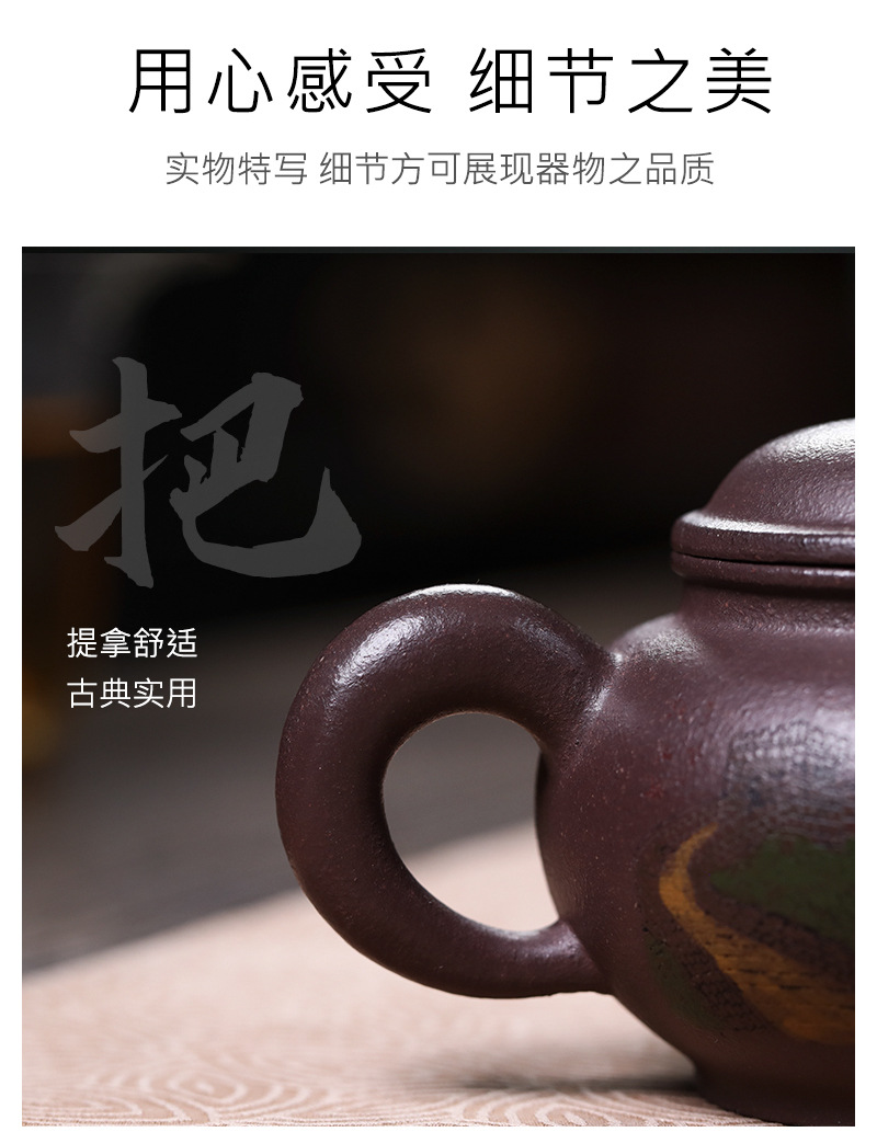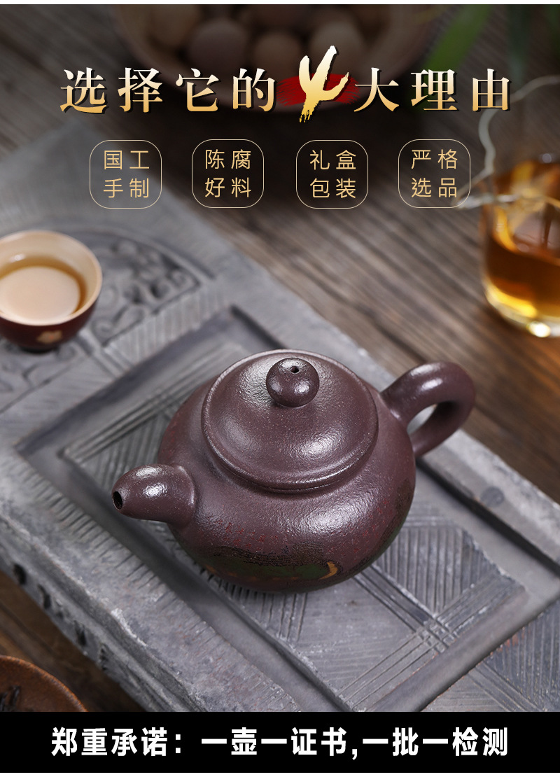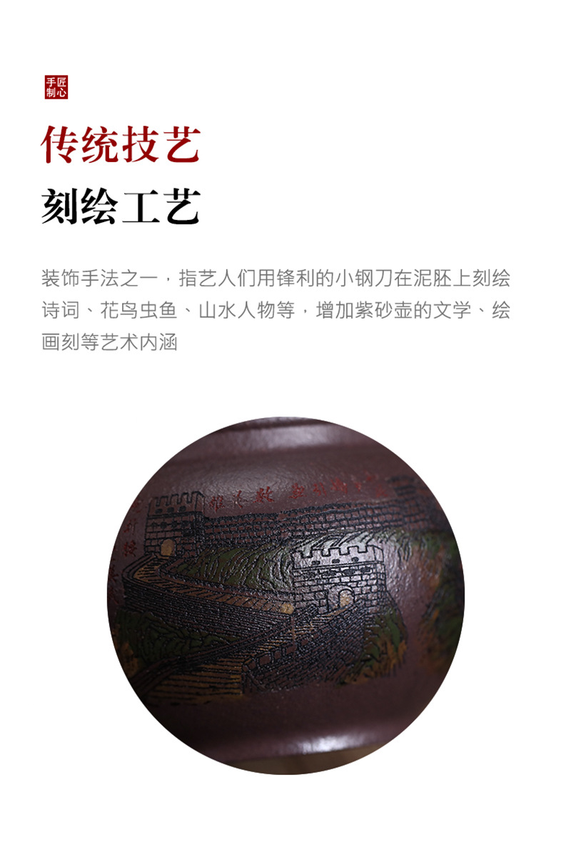 商品名称:宜兴原矿无添加手工紫砂壶巍巍长城30目金砂紫泥家用茶具茶壶泡茶
