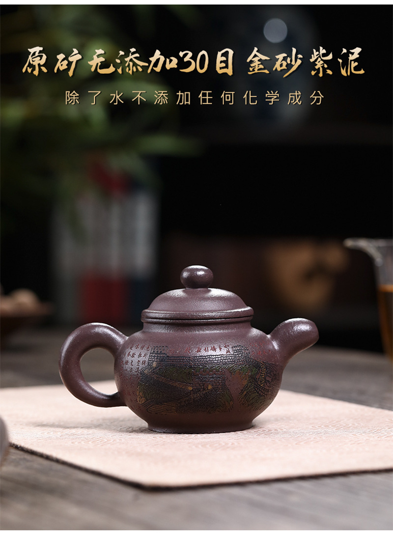 宜兴原矿无添加手工紫砂壶巍巍长城30目金砂紫泥家用茶具茶壶泡茶