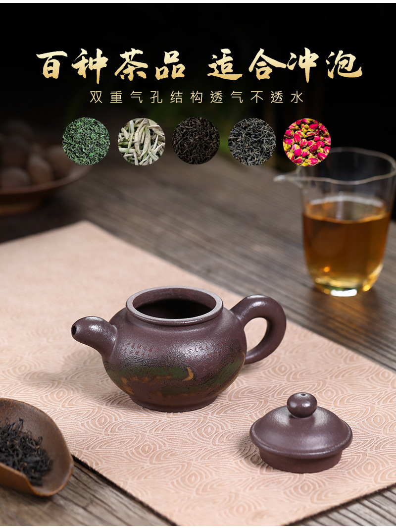 宜兴手工紫砂壶 翡翠青紫泥 一粒珠家用茶具茶壶国工手制出水暴爽