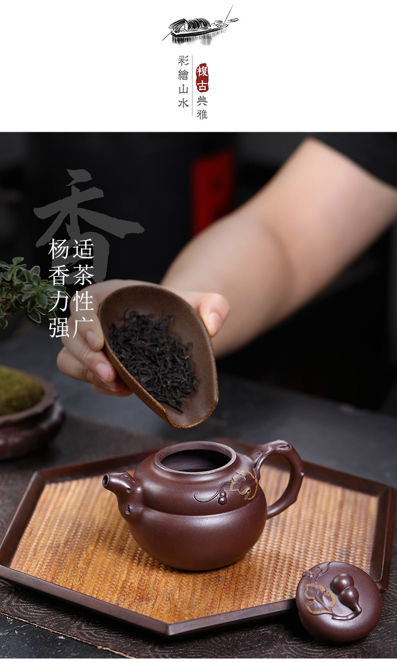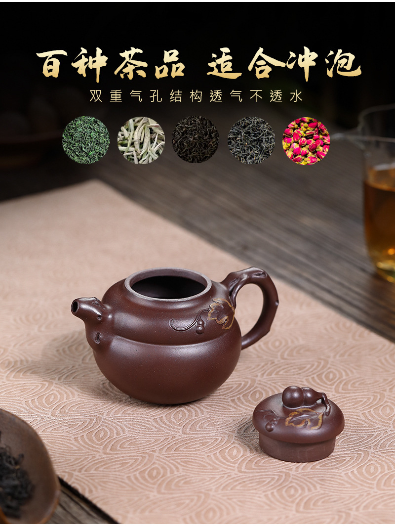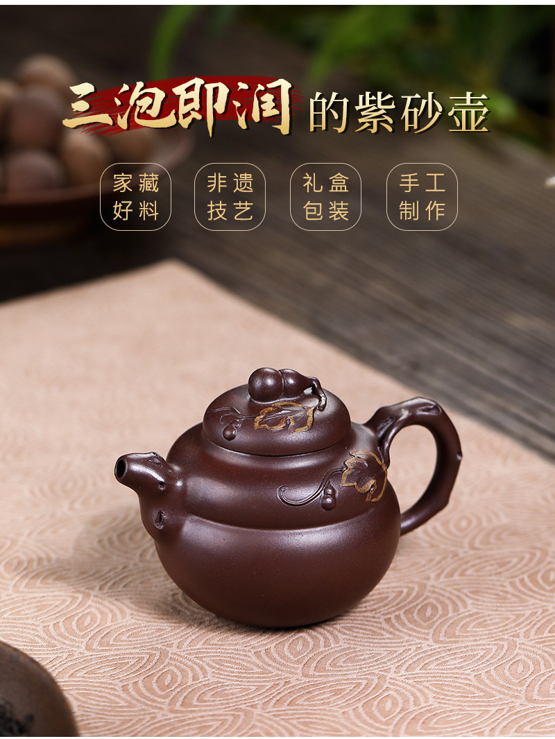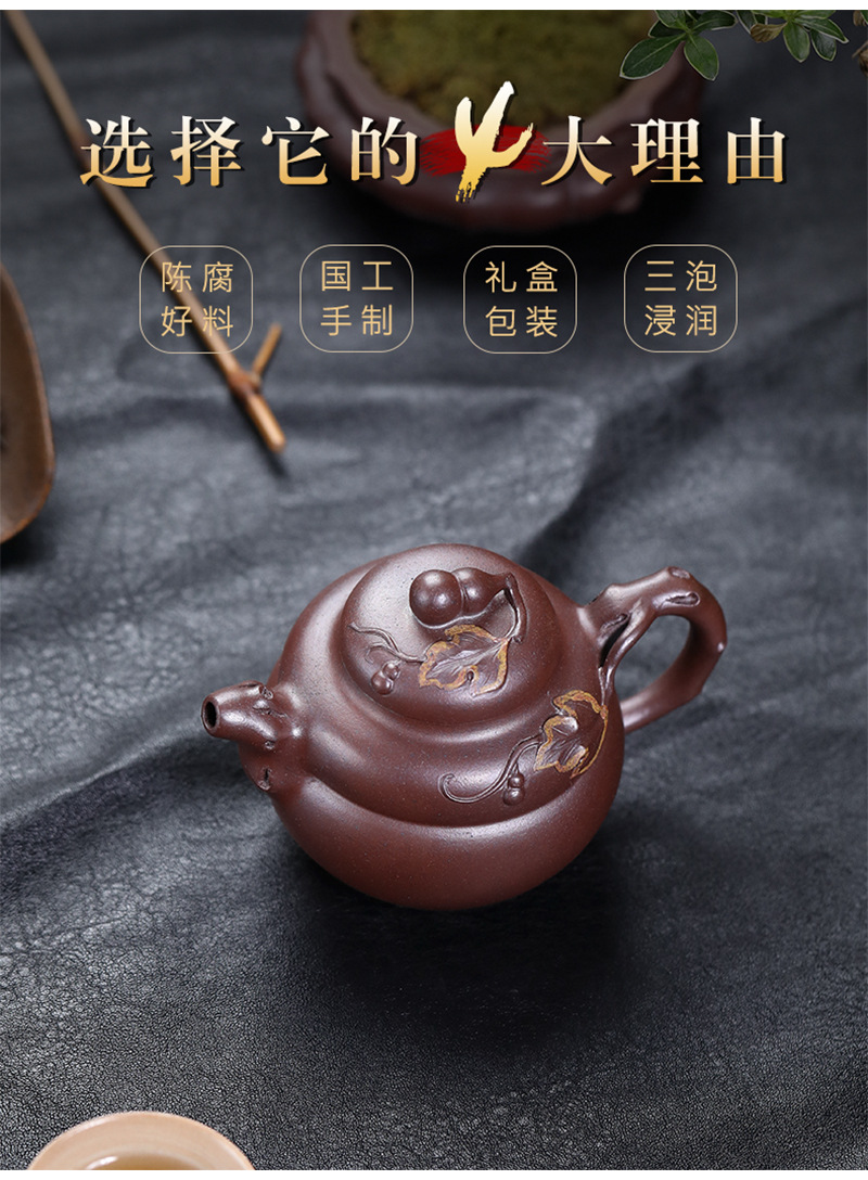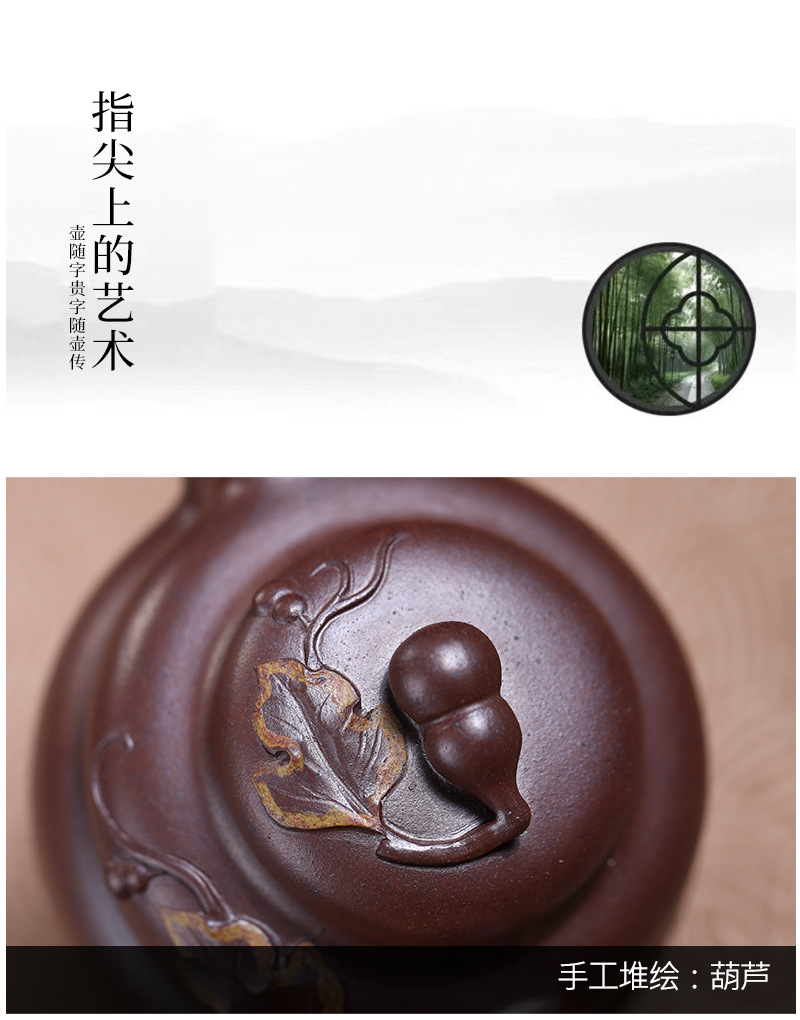 商品名称:宜兴手工紫砂壶原叶葫芦红皮龙家用茶具茶壶泡茶壶