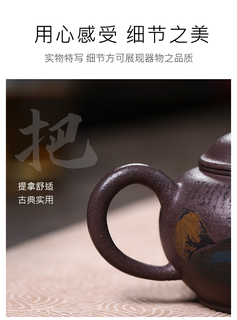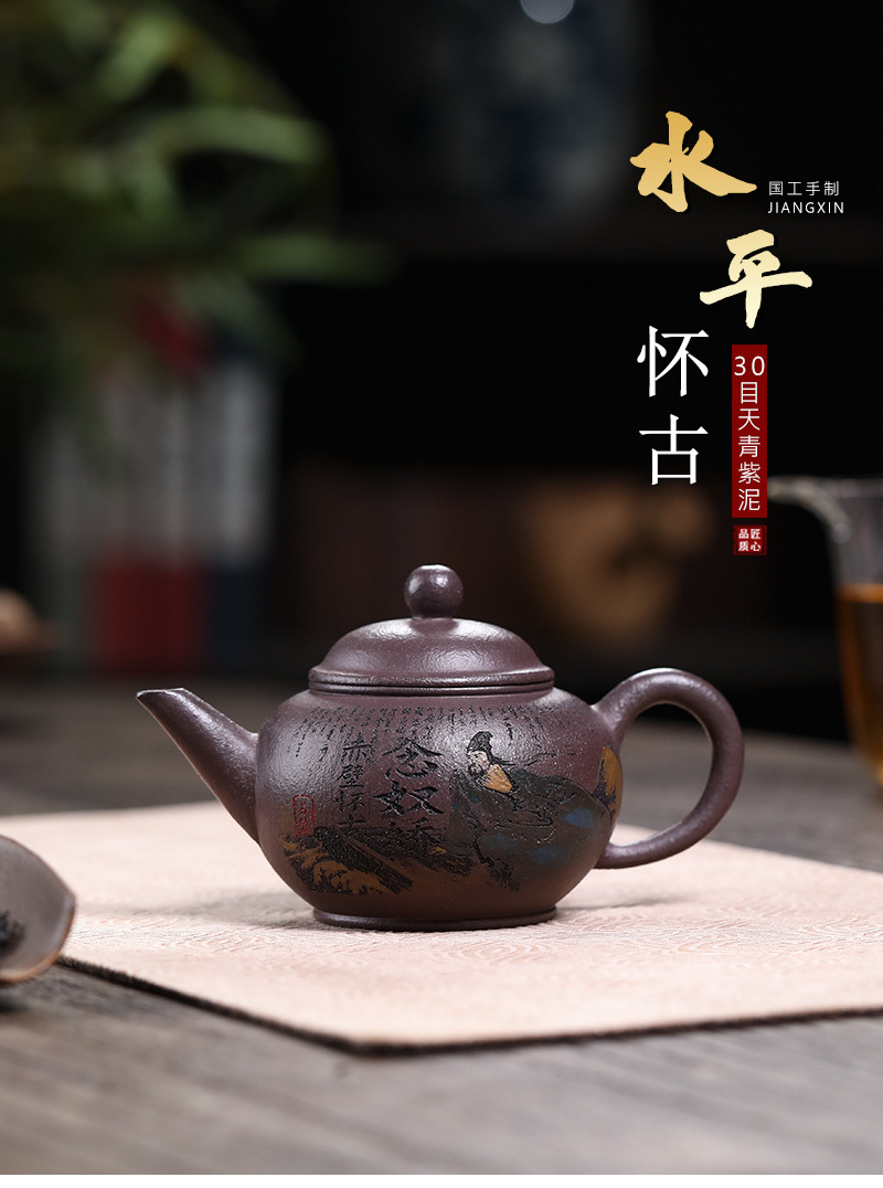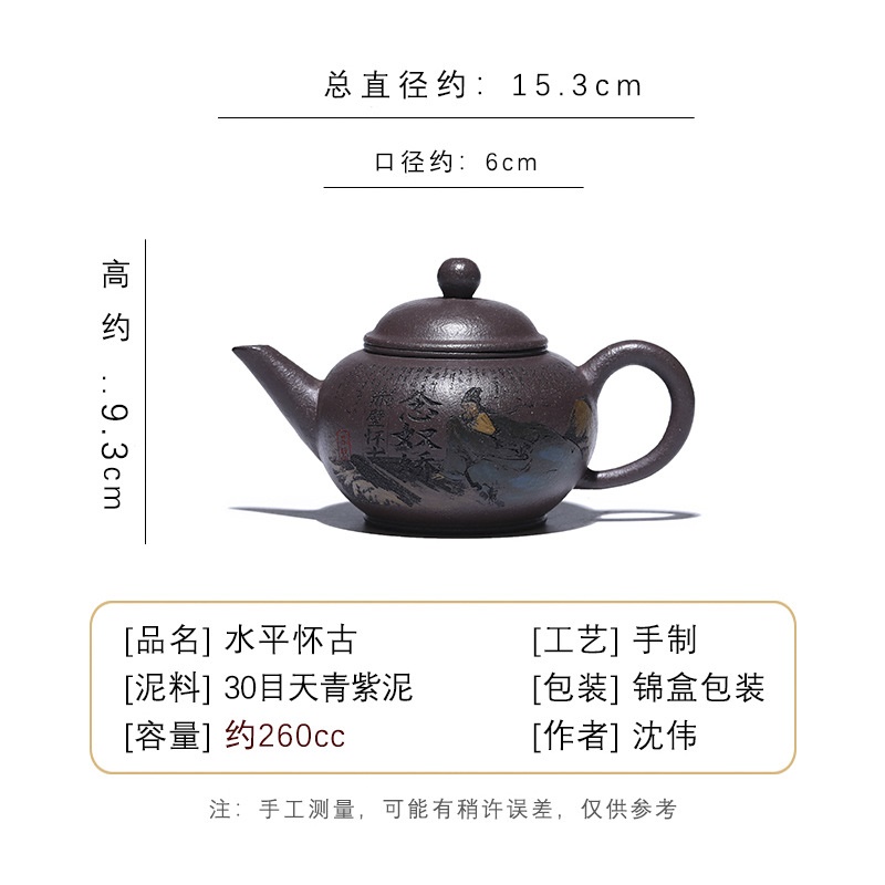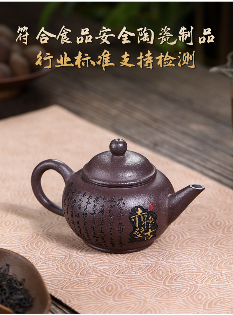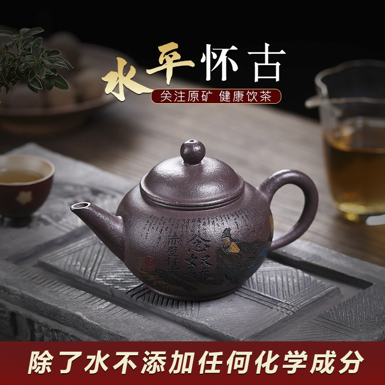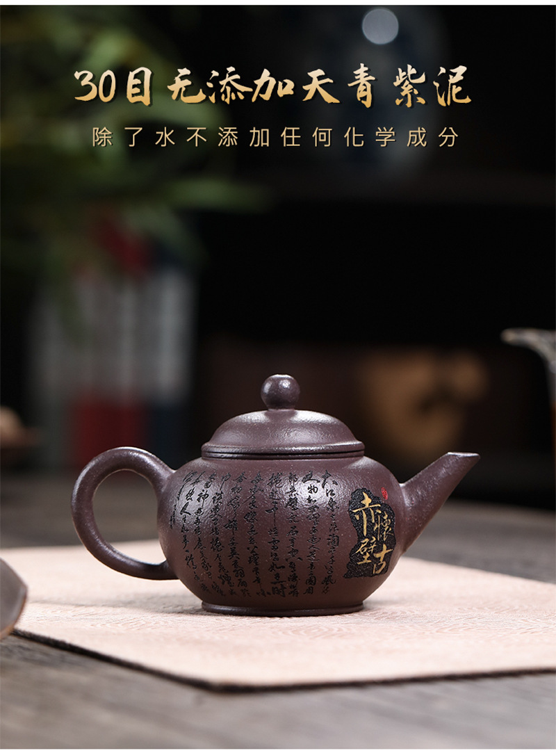 商品名称:宜兴原矿无添加手工紫砂壶水平仿古30目天青紫泥家用茶具茶壶泡茶