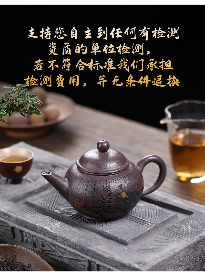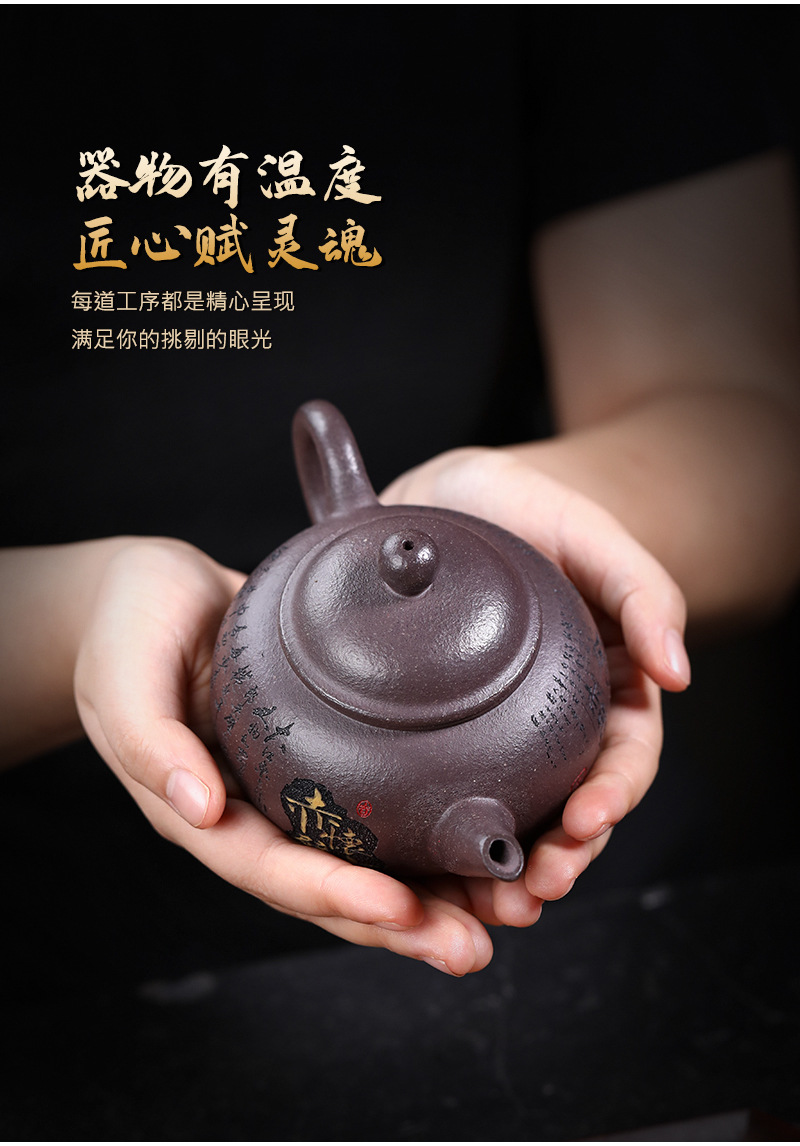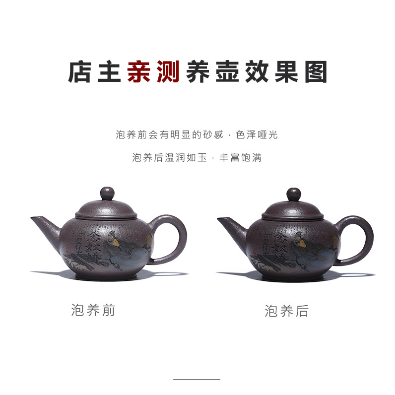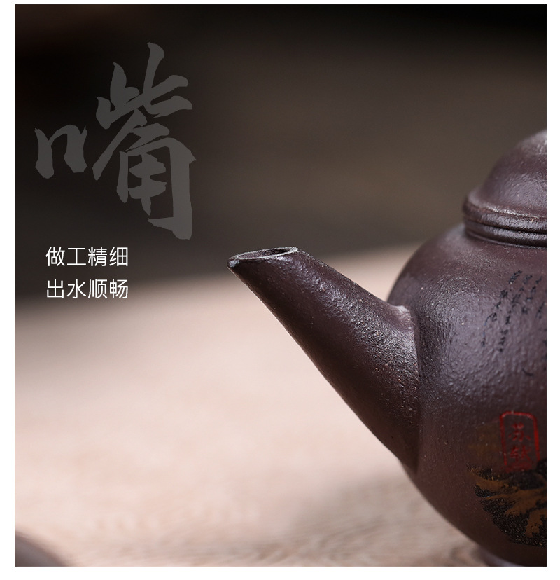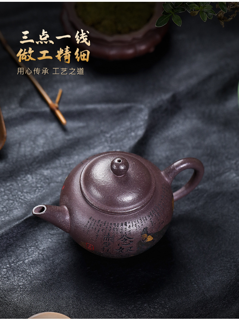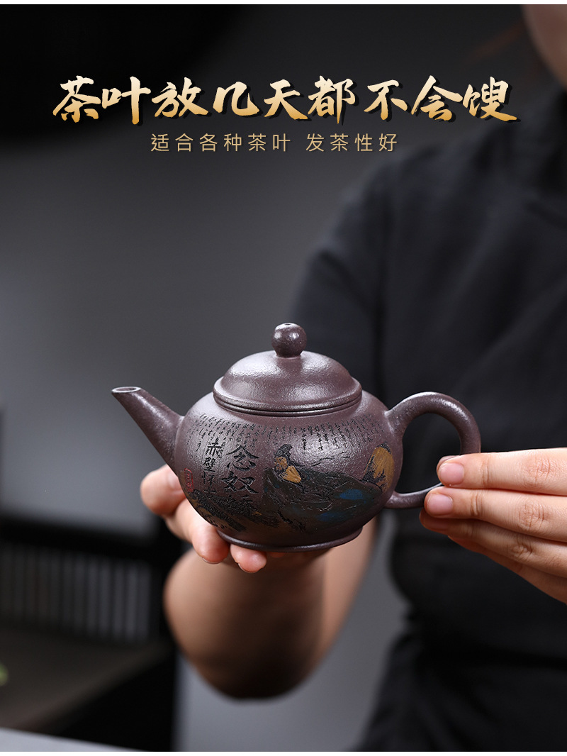 商品名称:宜兴原矿无添加手工紫砂壶水平仿古30目天青紫泥家用茶具茶壶泡茶
