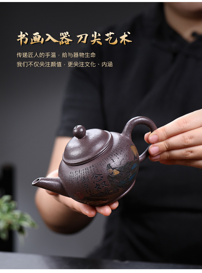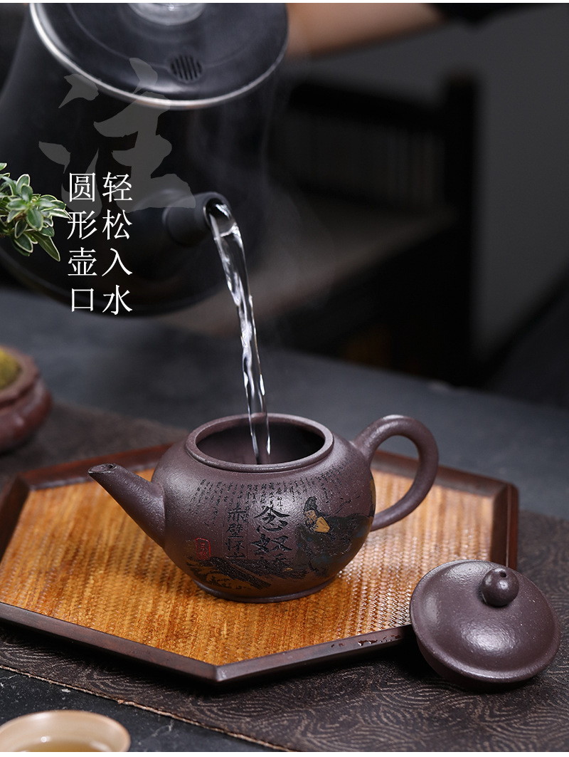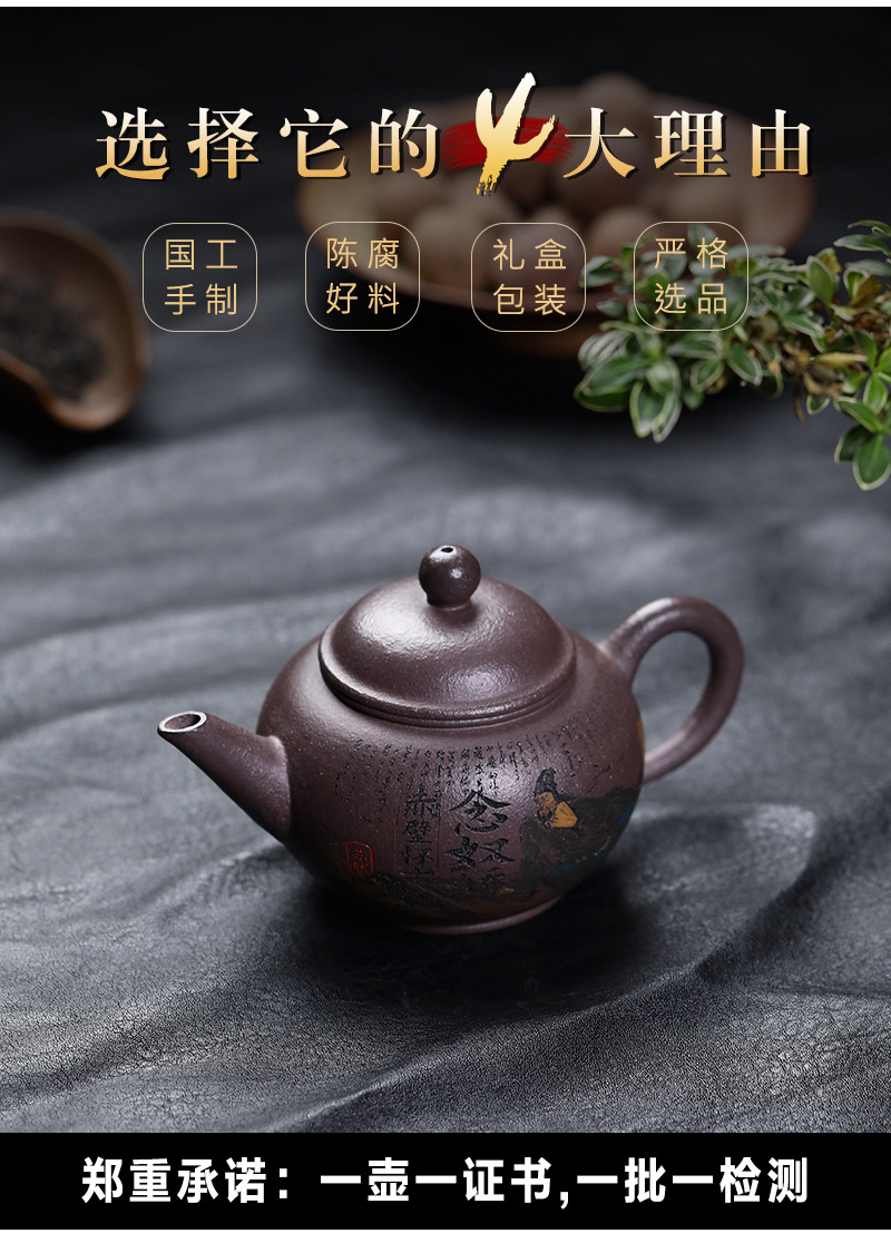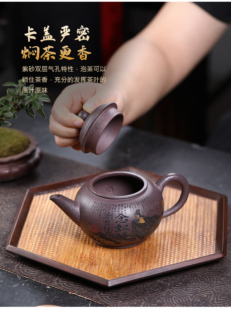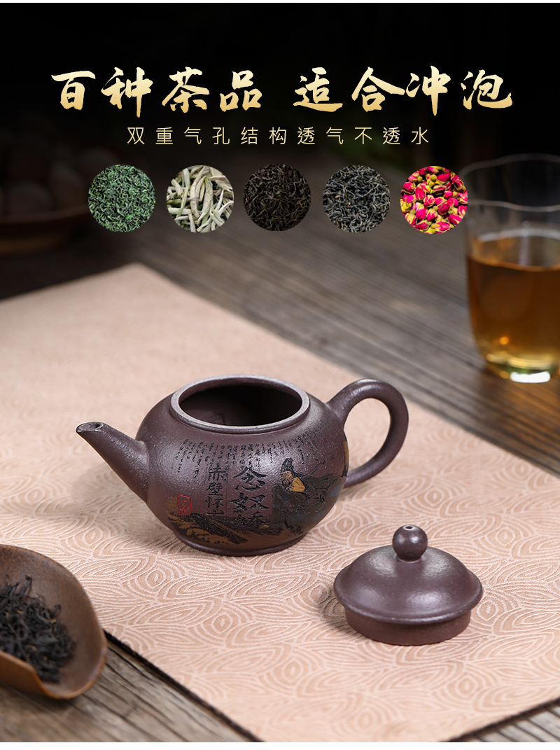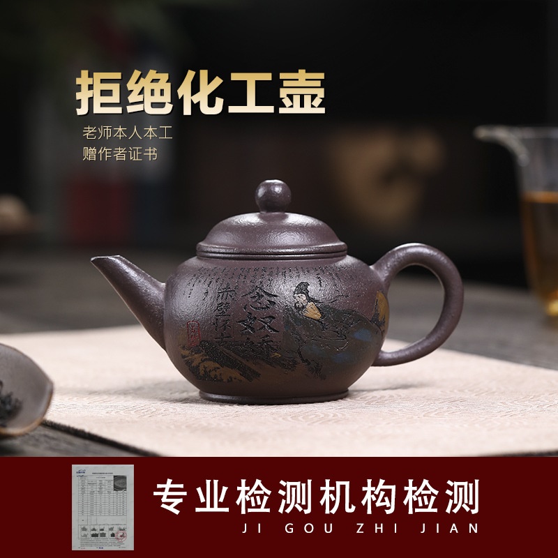 商品名称:宜兴原矿无添加手工紫砂壶水平仿古30目天青紫泥家用茶具茶壶泡茶