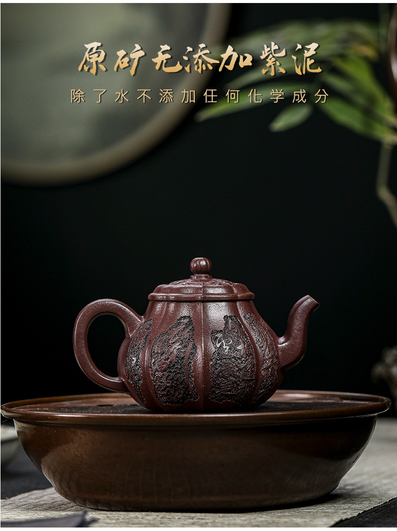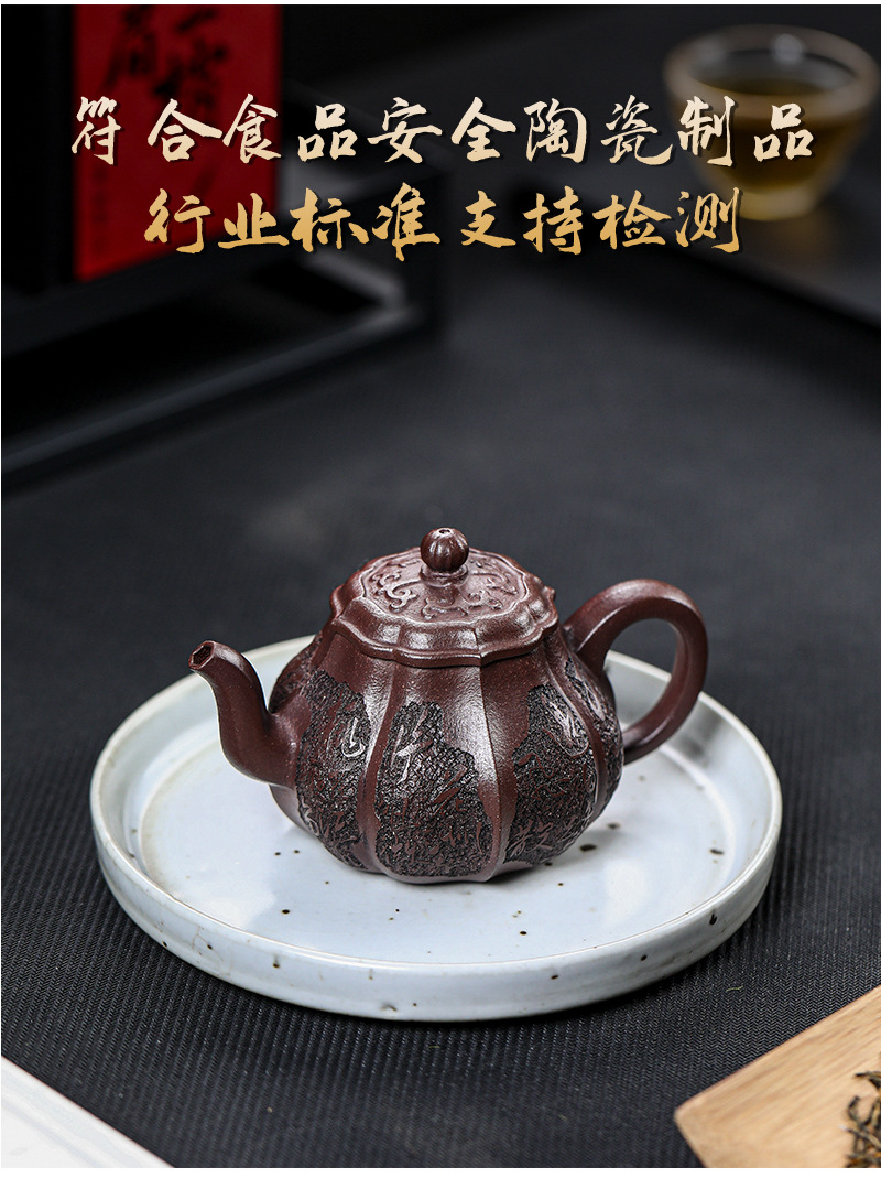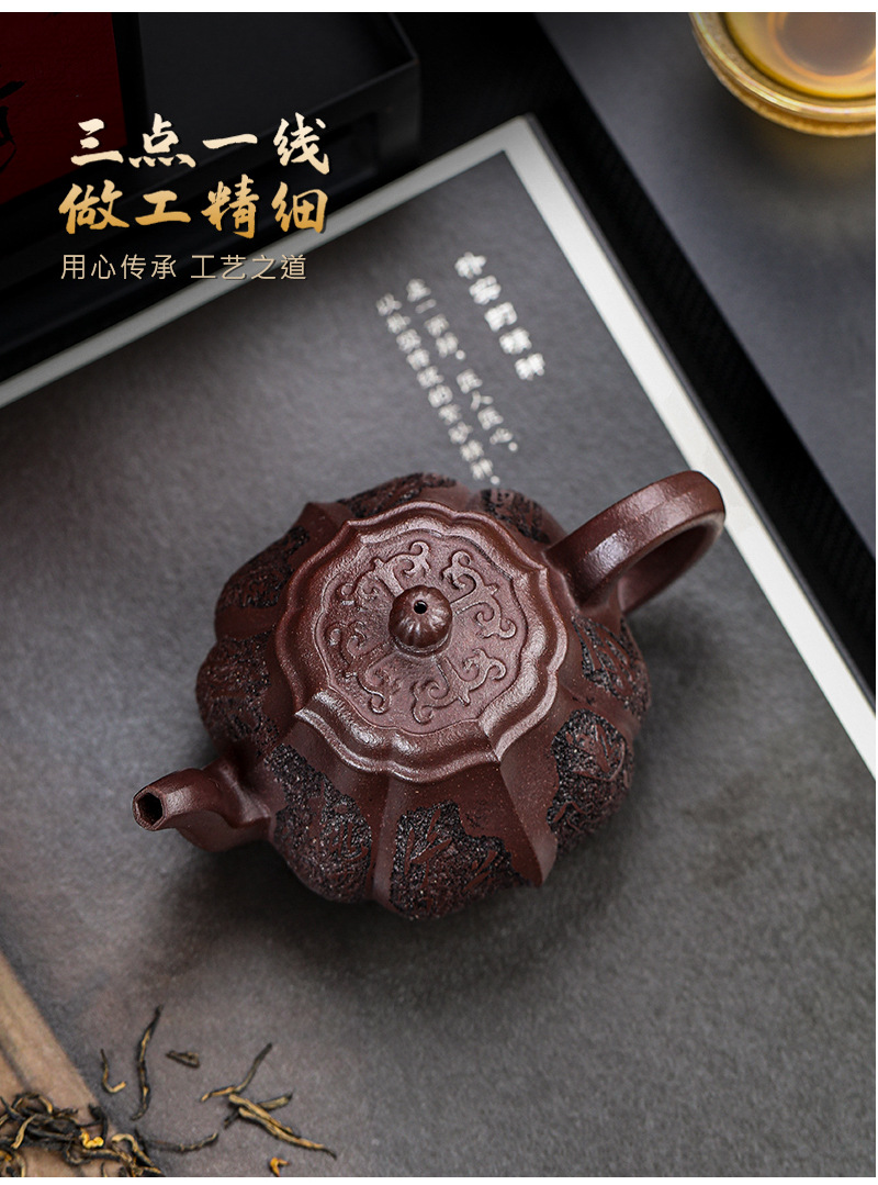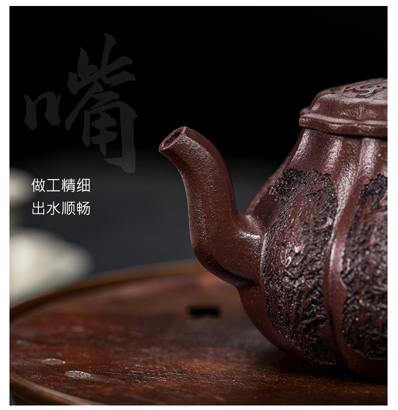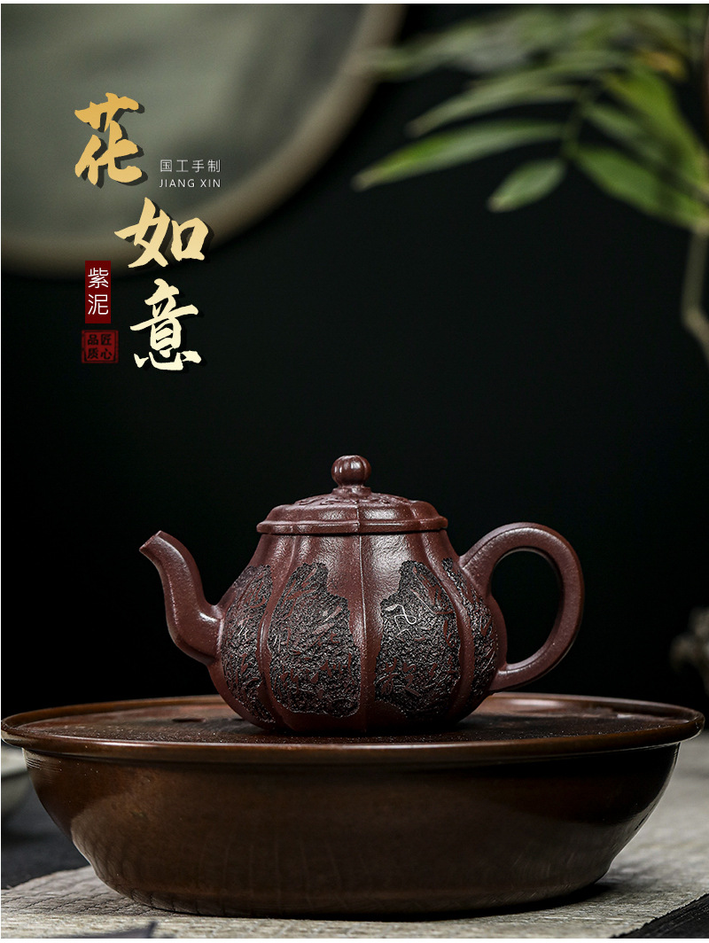 宜兴原矿无添加手工紫砂壶 紫泥 花如意 家用茶具茶壶泡茶壶