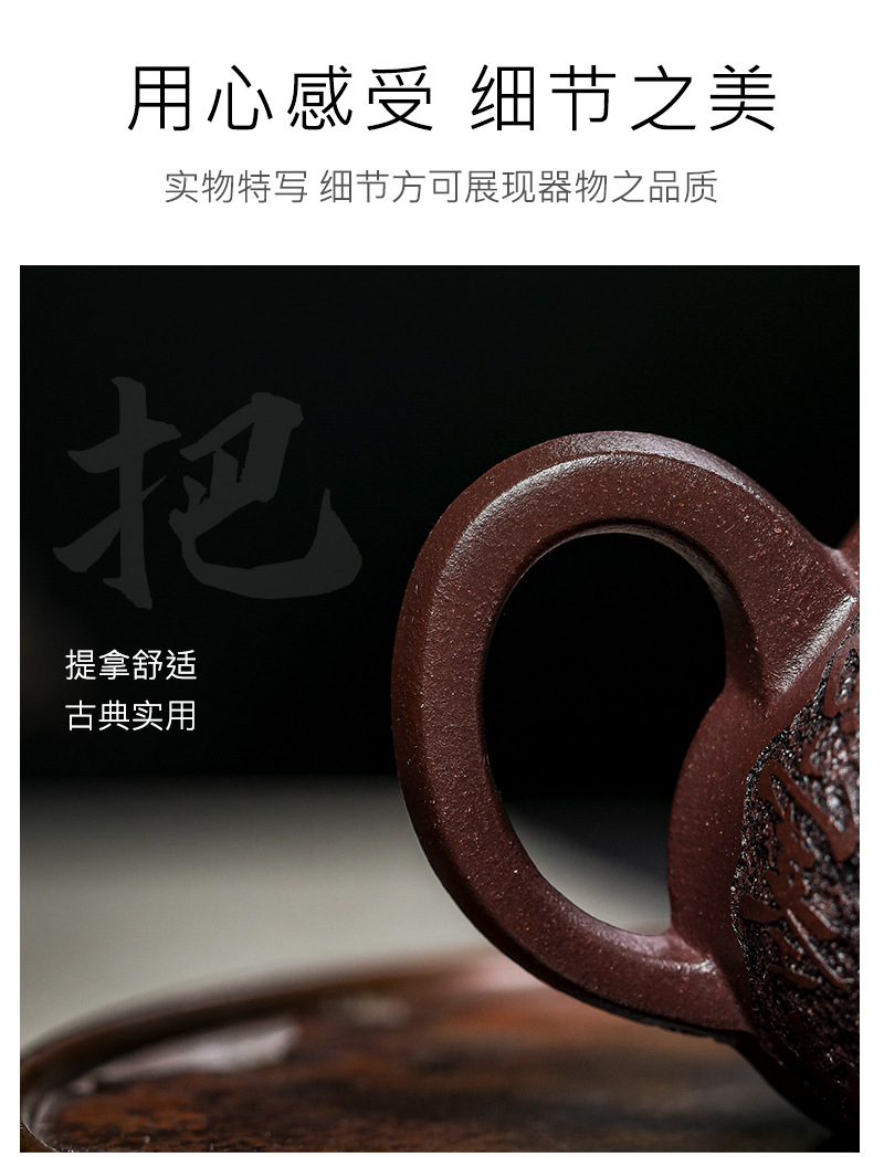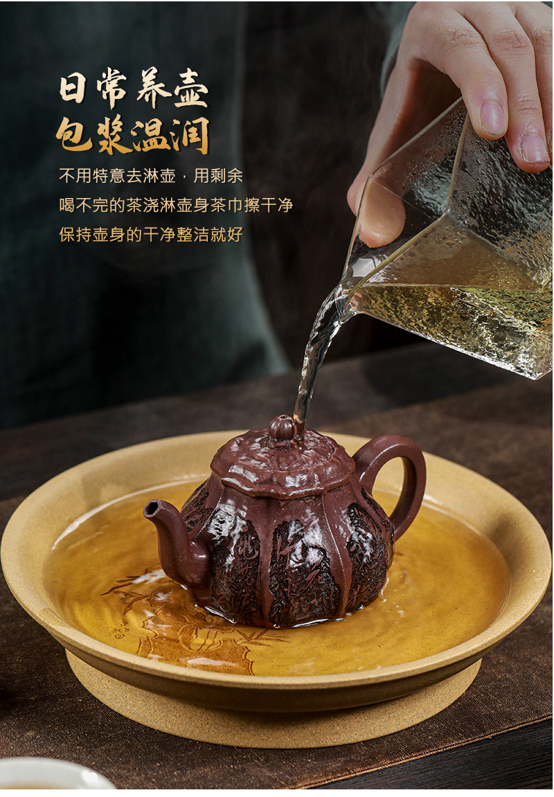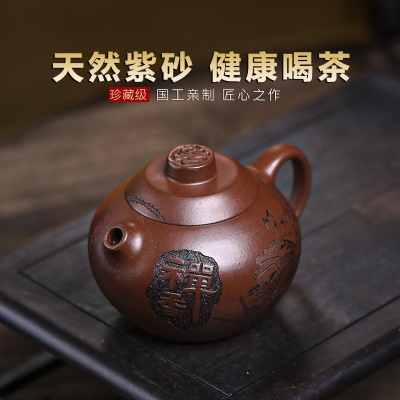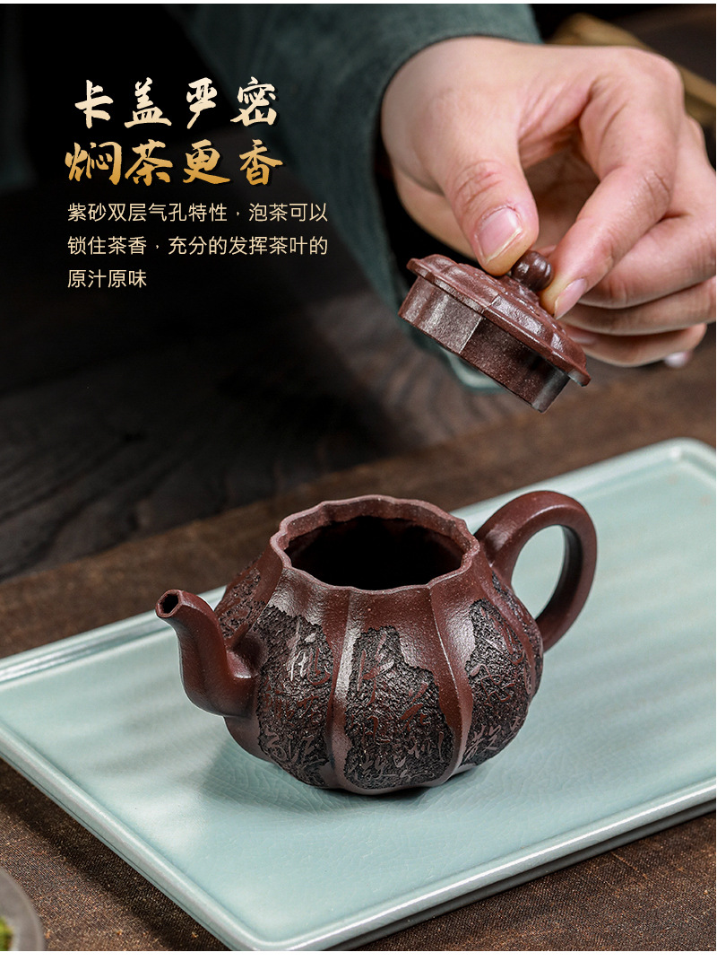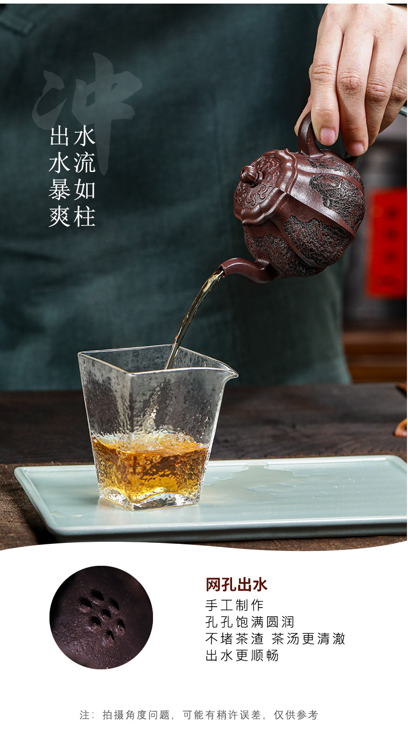 宜兴原矿无添加手工紫砂壶 紫泥 花如意 家用茶具茶壶泡茶壶