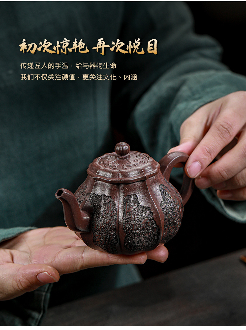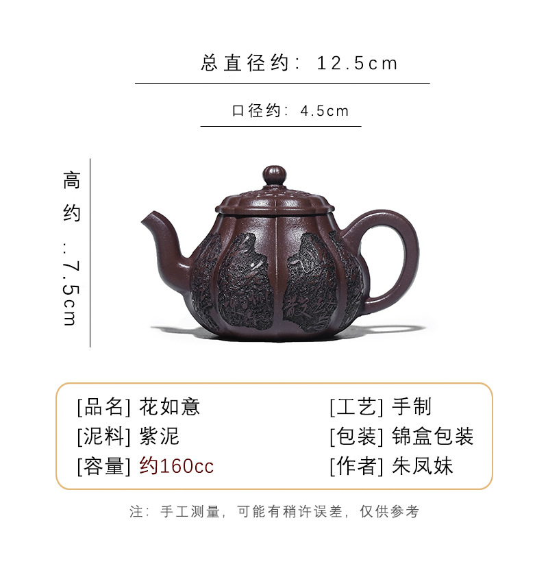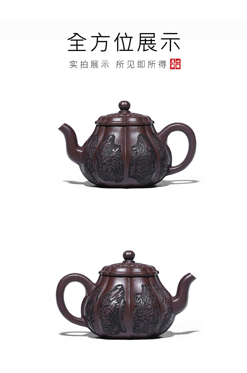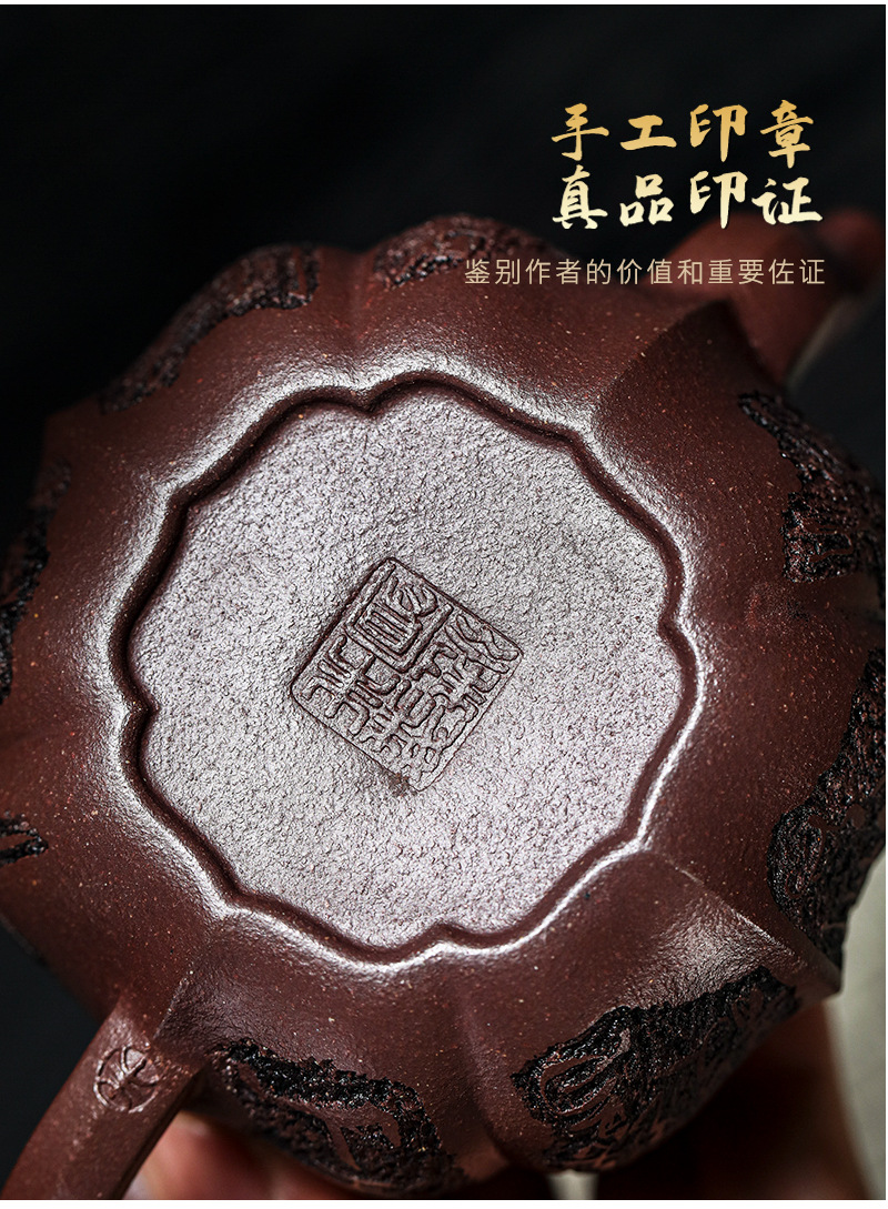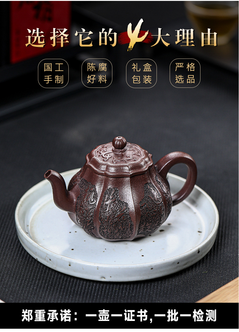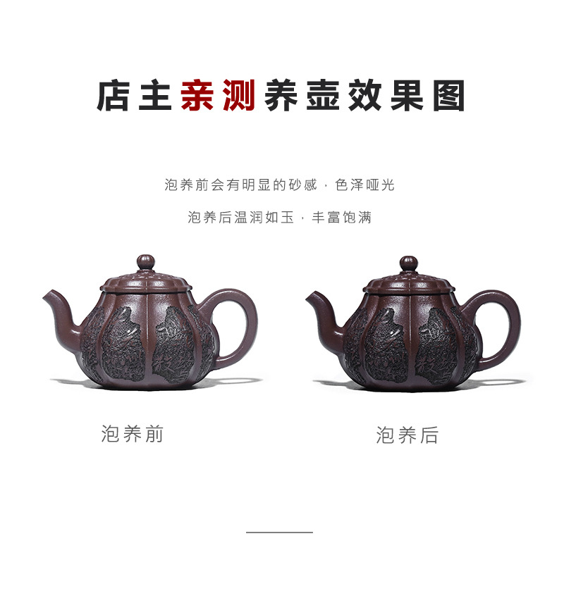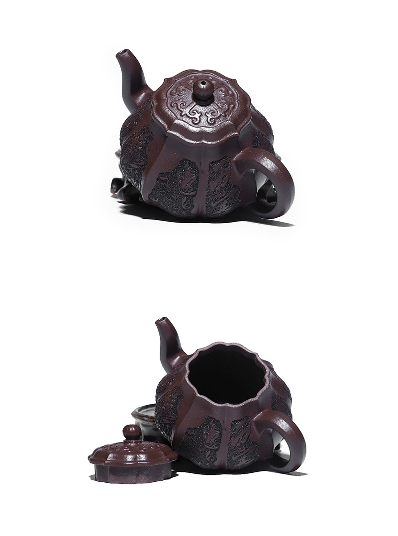 商品名称:宜兴原矿无添加手工紫砂壶 紫泥 花如意 家用茶具茶壶泡茶壶