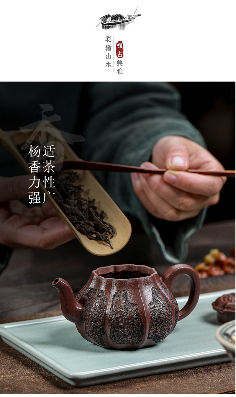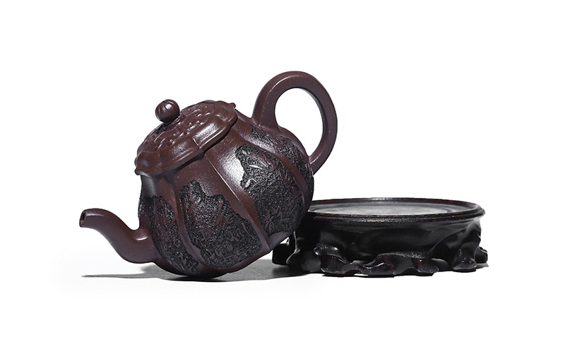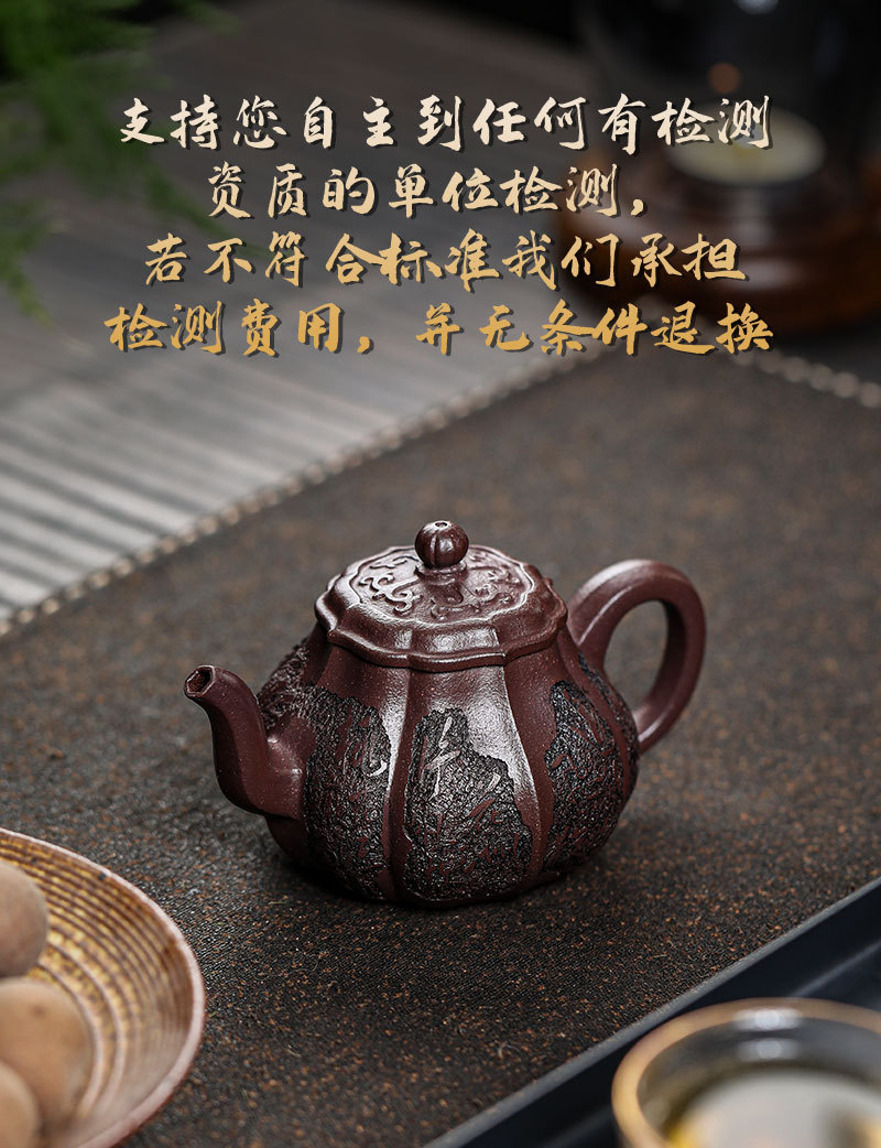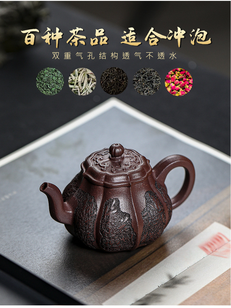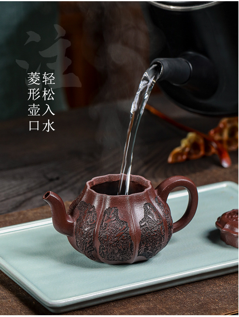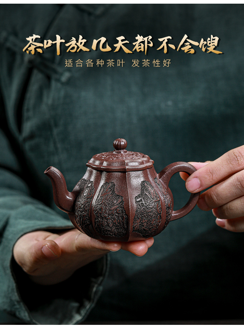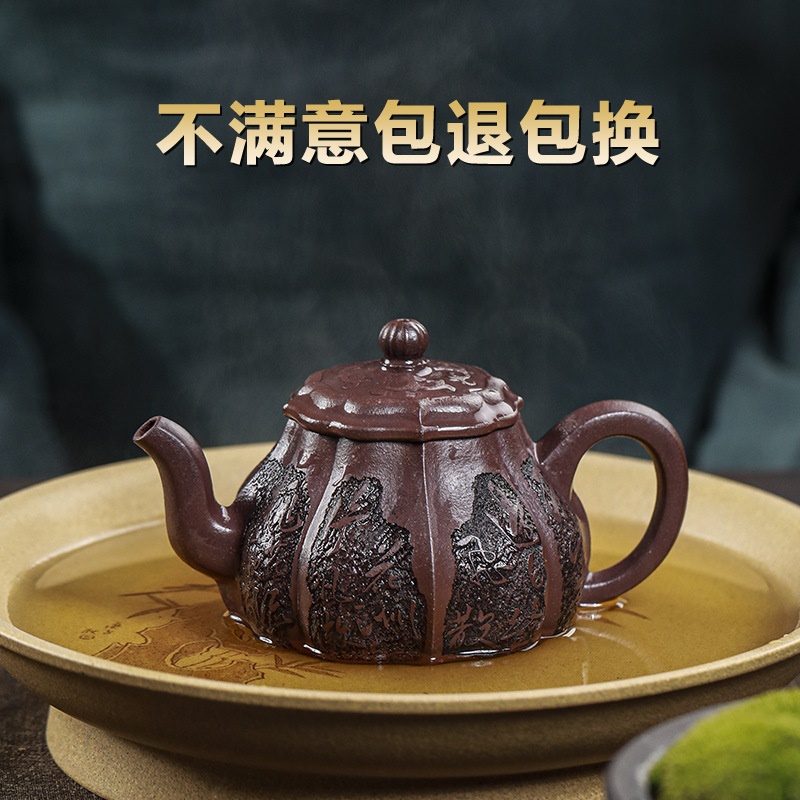 商品名称:宜兴原矿无添加手工紫砂壶 紫泥 花如意 家用茶具茶壶泡茶壶
