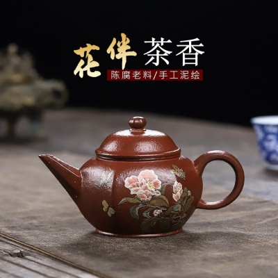 宜兴手工紫砂壶家藏红降坡花伴茶香家用茶具茶壶泡茶壶