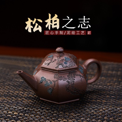 宜兴手工紫砂壶家藏紫玉金砂松柏之志出水爆爽滴水不漏国工手制