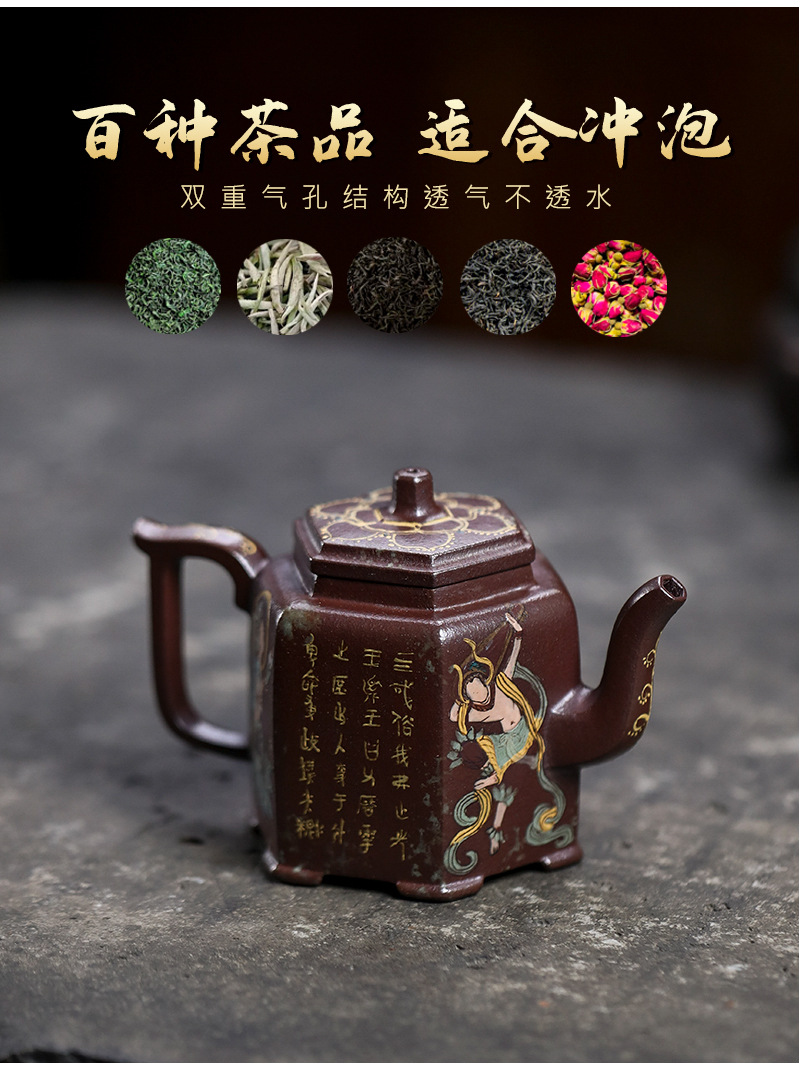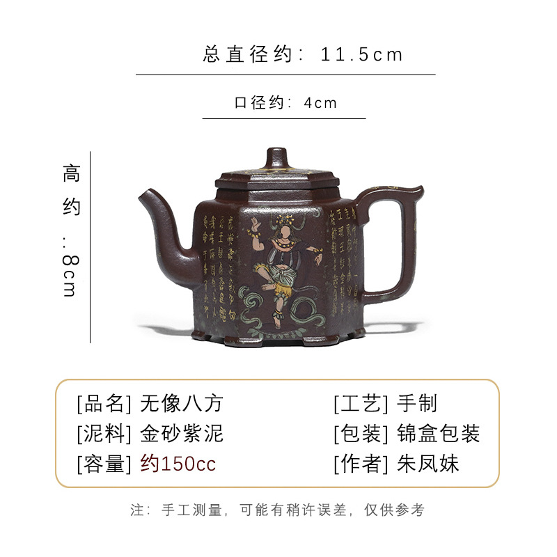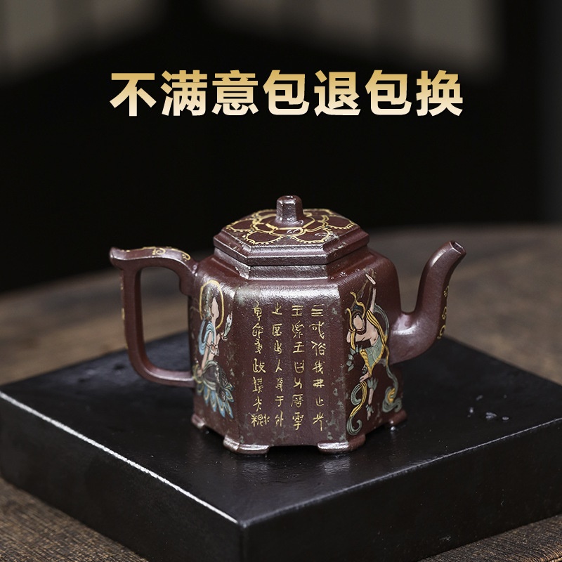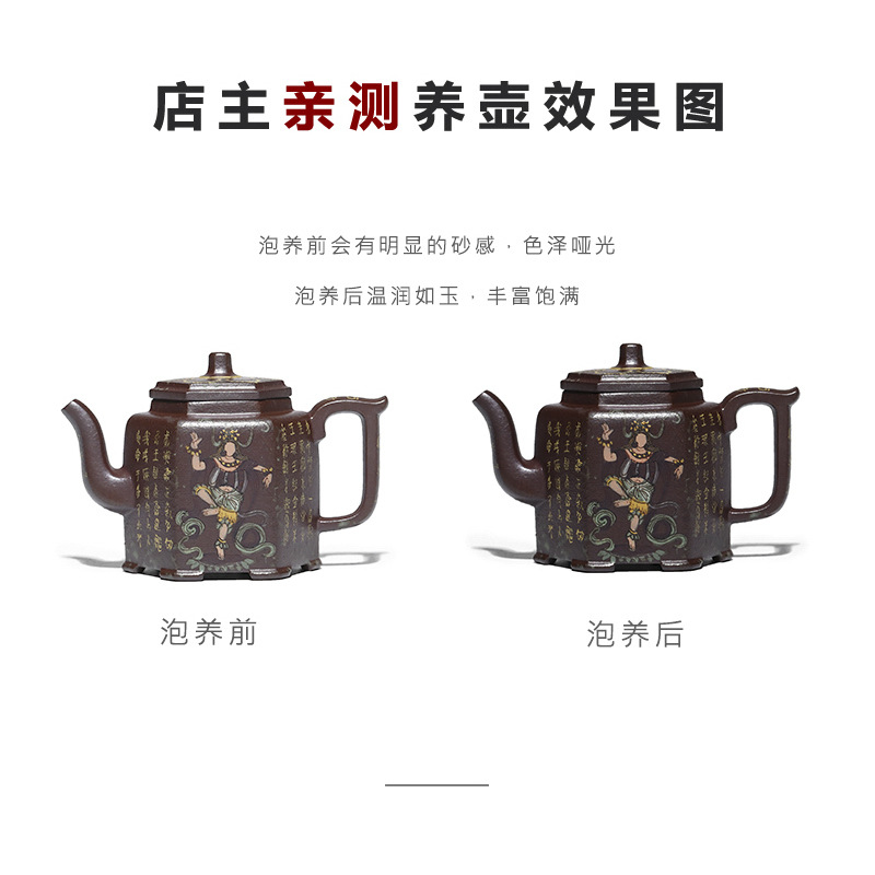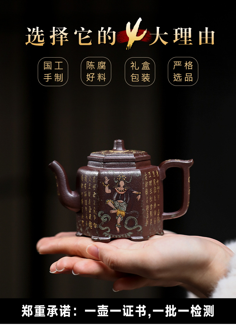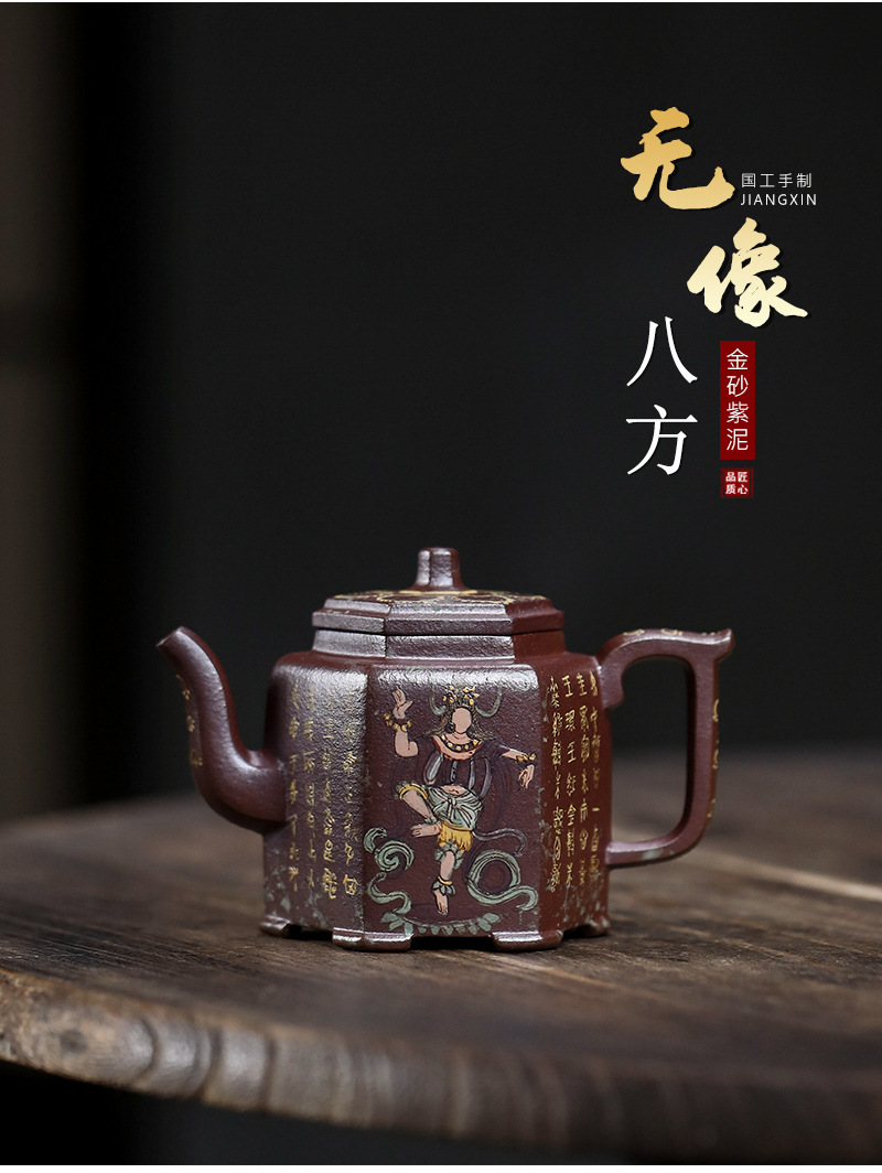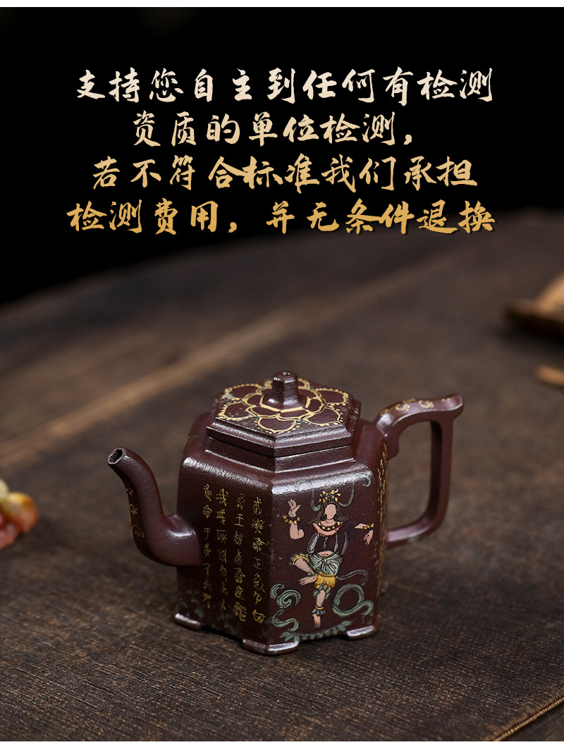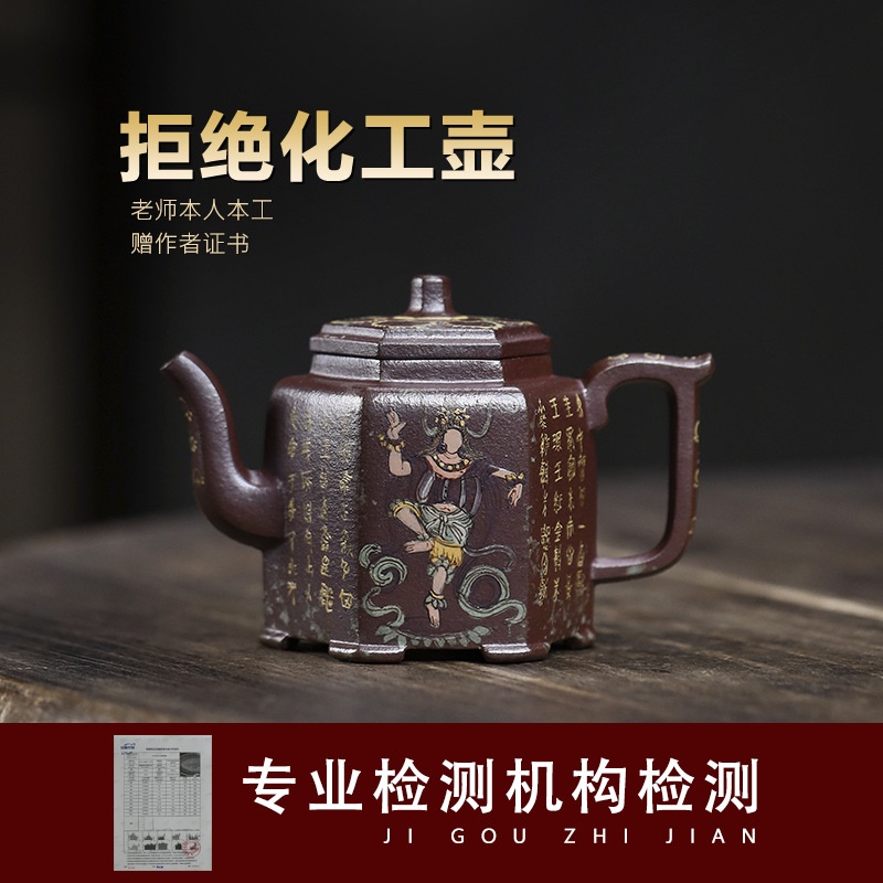 商品名称:宜兴原矿无添加手工紫砂壶金砂紫泥 无像八方 家用茶具茶壶附检测