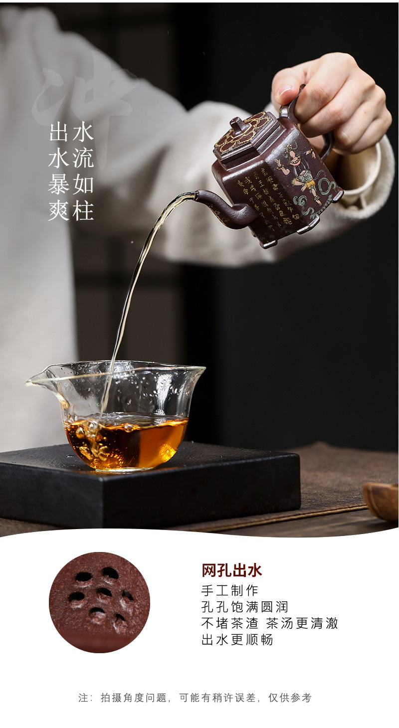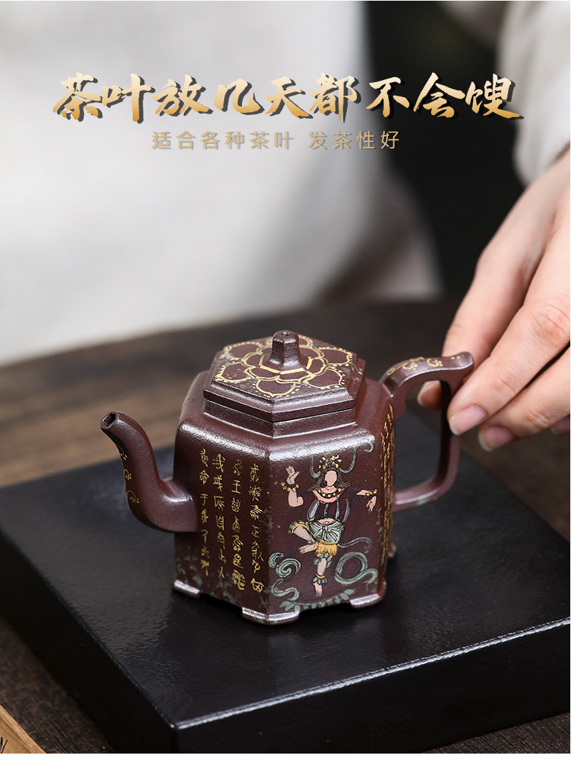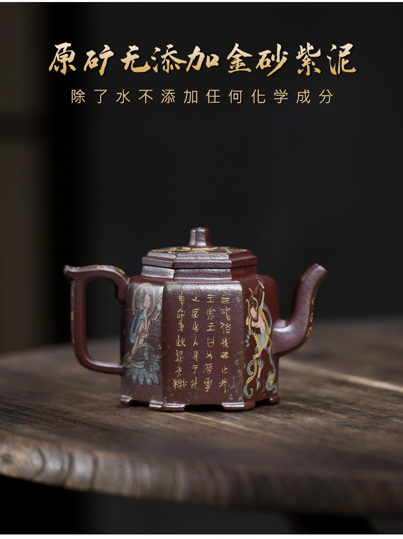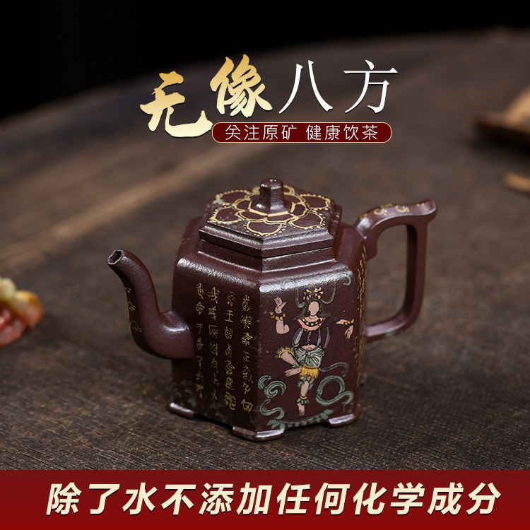 宜兴原矿无添加手工紫砂壶金砂紫泥 无像八方 家用茶具茶壶附检测
