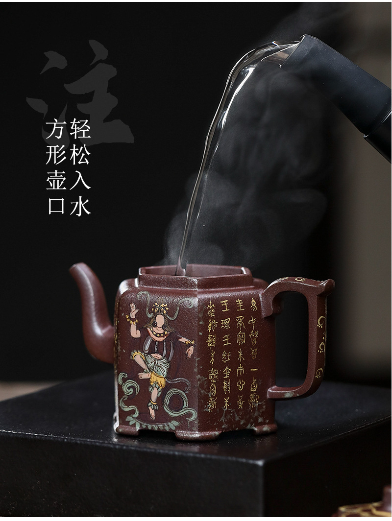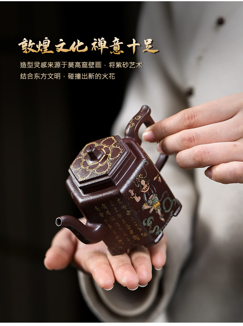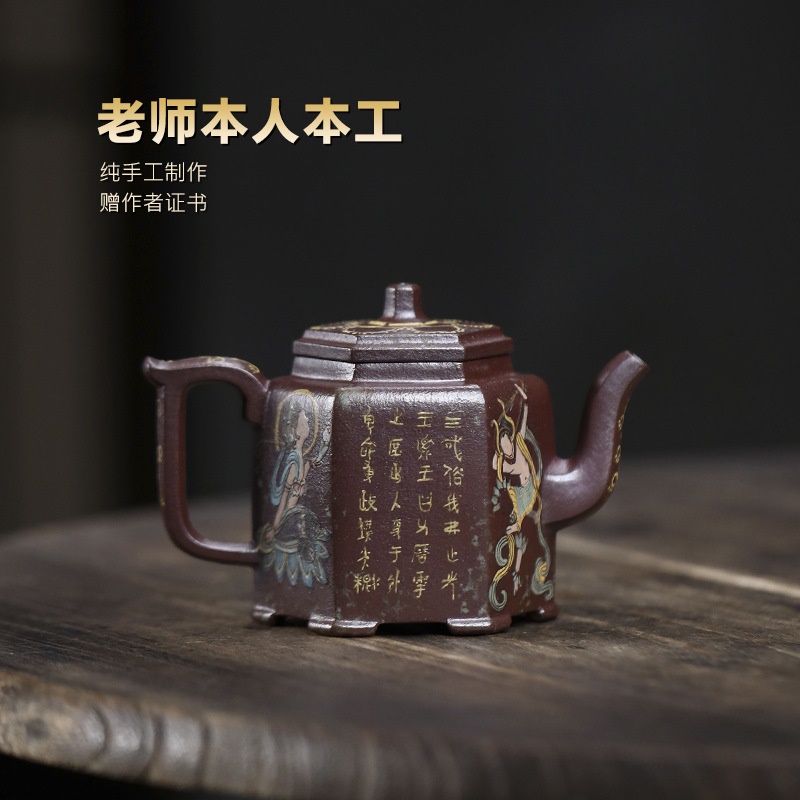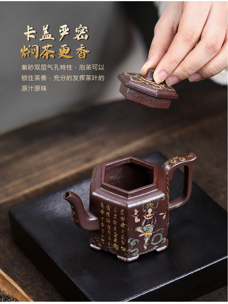 宜兴原矿无添加手工紫砂壶金砂紫泥 无像八方 家用茶具茶壶附检测