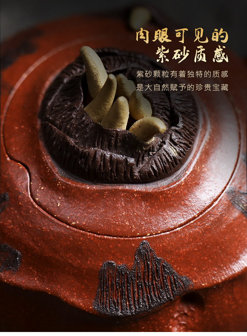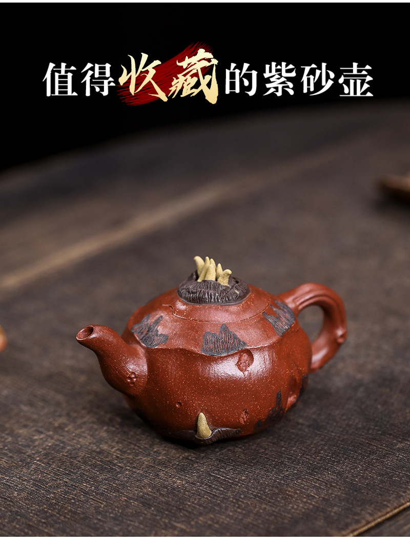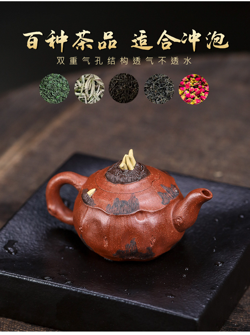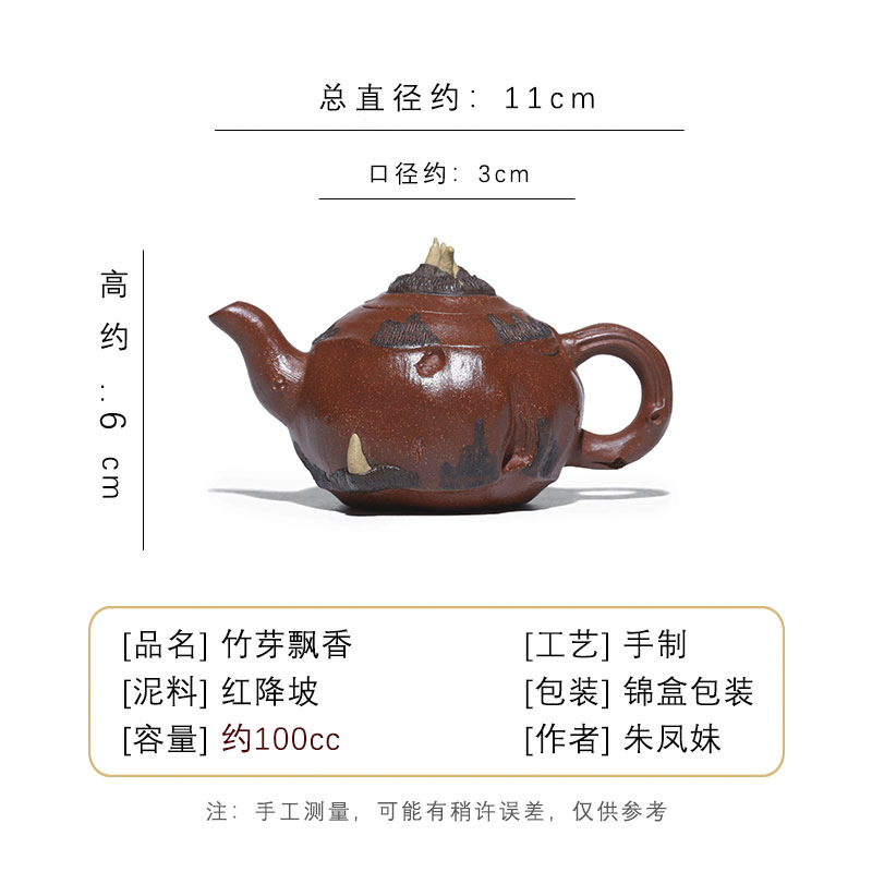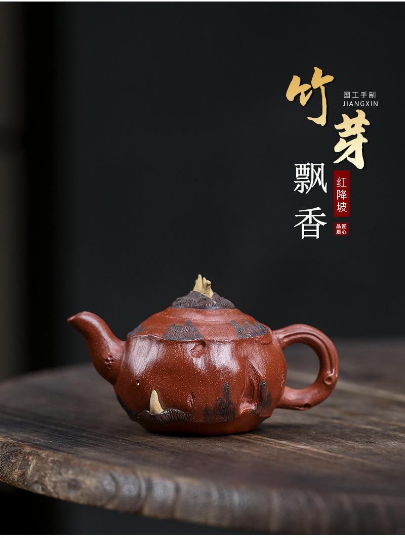 商品名称:宜兴手工紫砂壶 红降坡 竹芽飘香 家用茶具茶壶泡茶壶