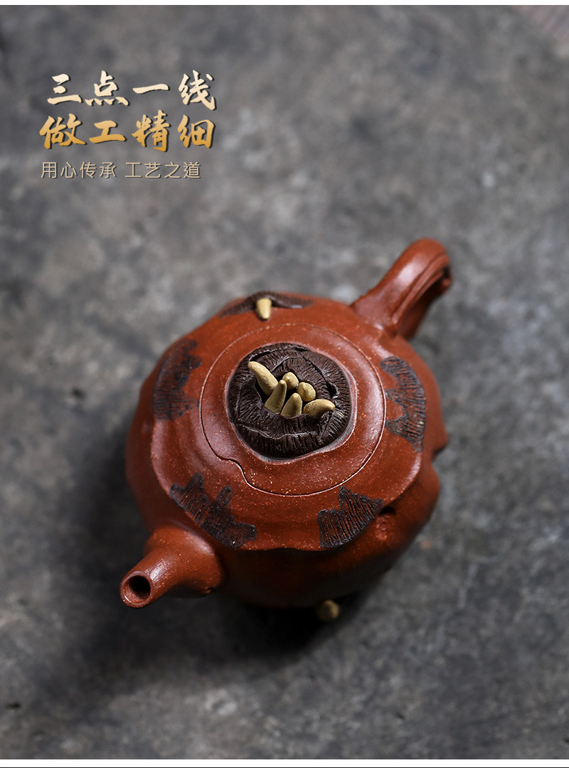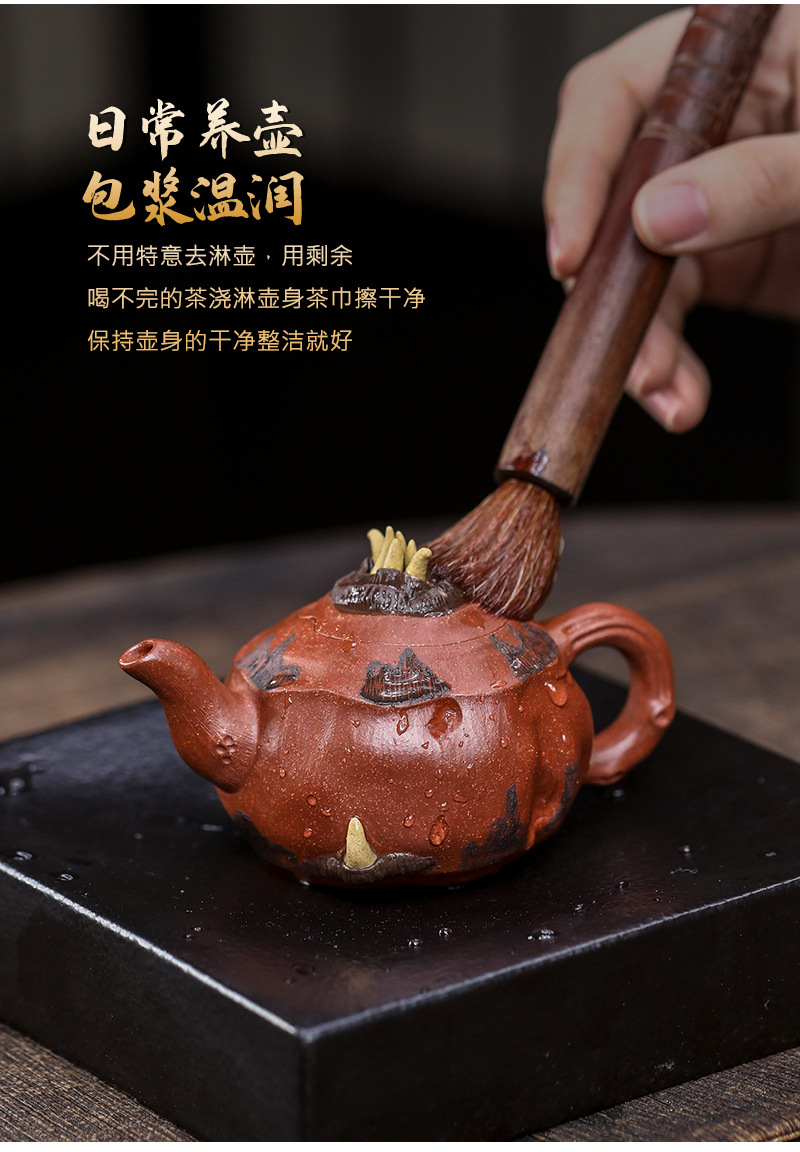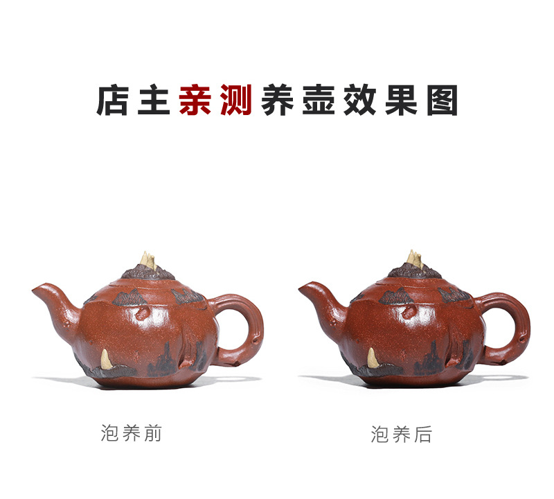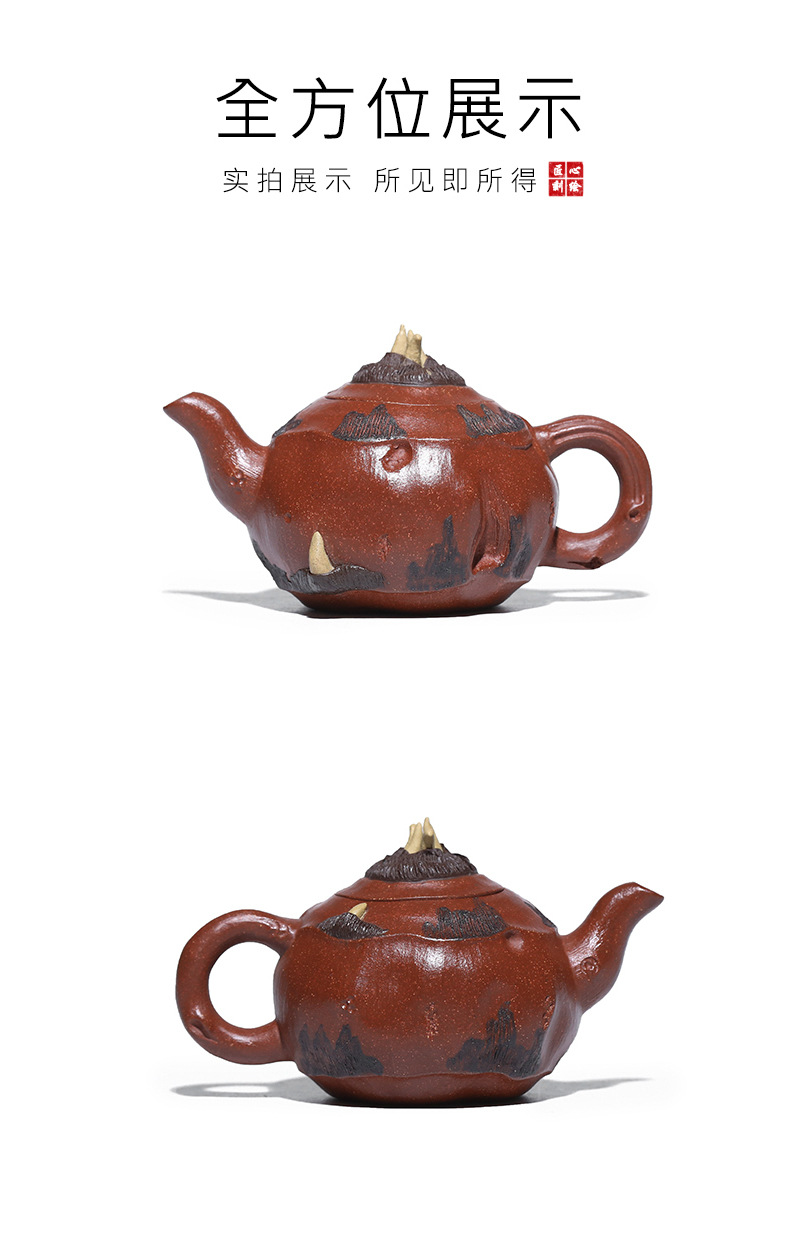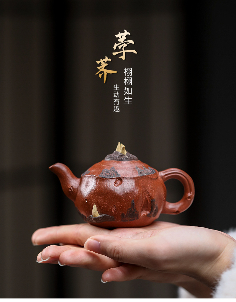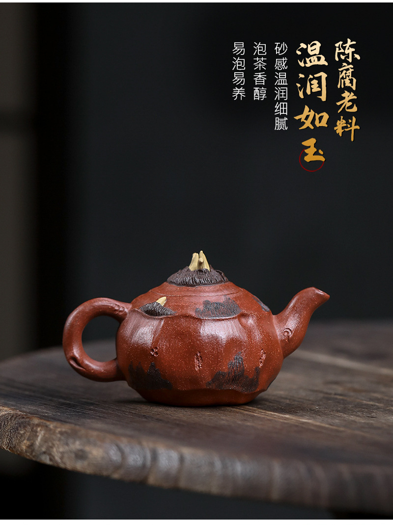 商品名称:宜兴手工紫砂壶 红降坡 竹芽飘香 家用茶具茶壶泡茶壶
