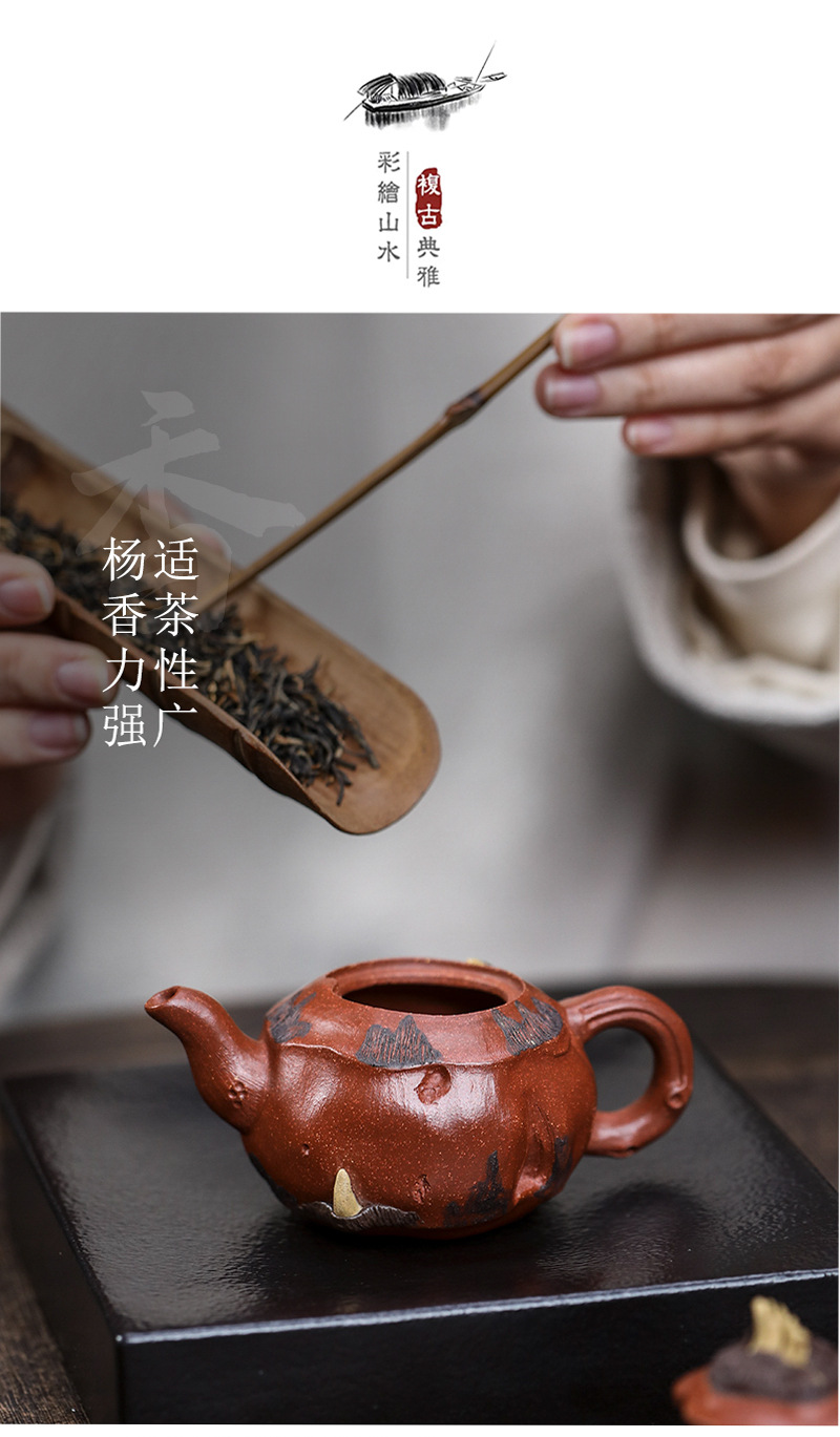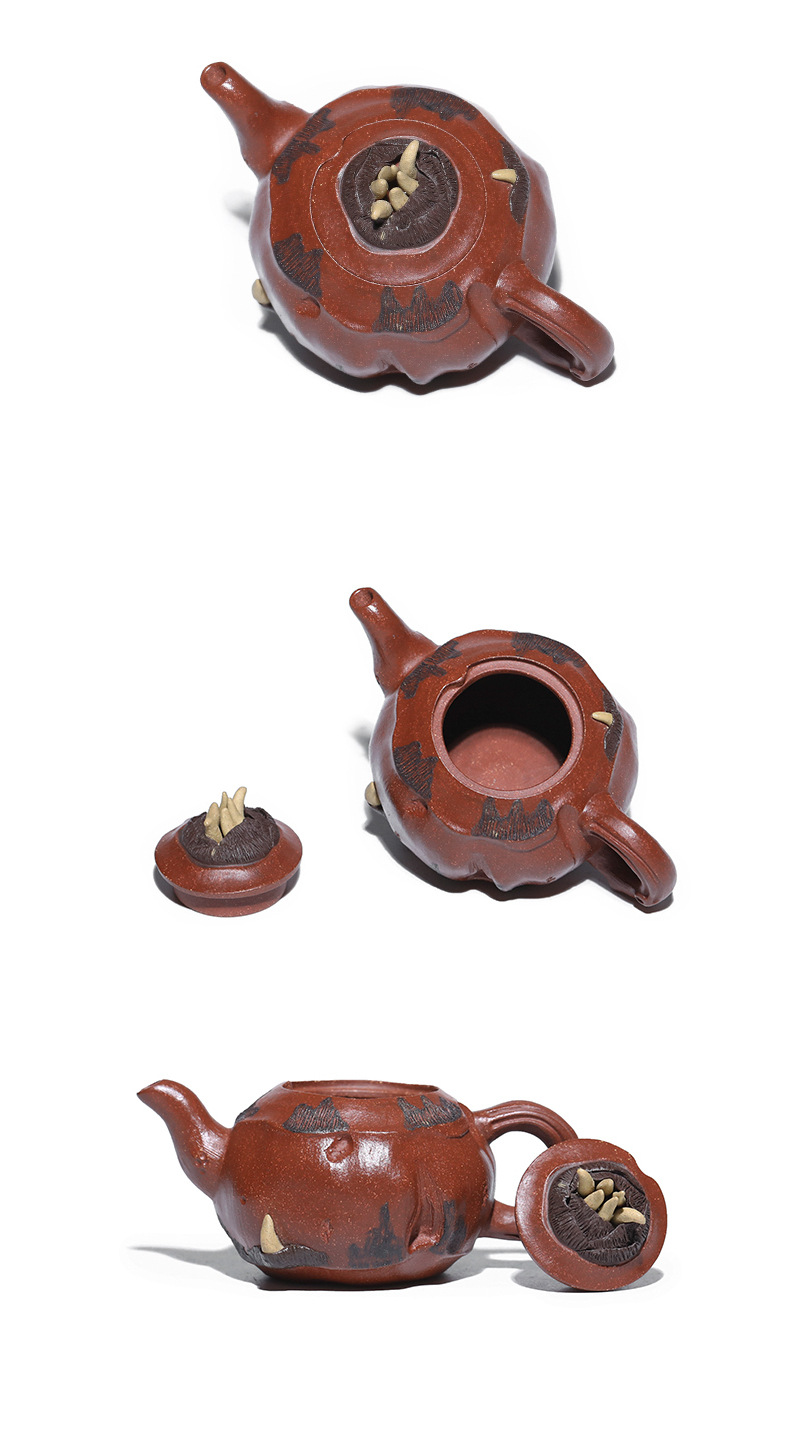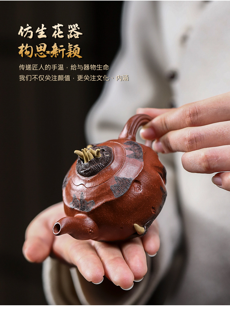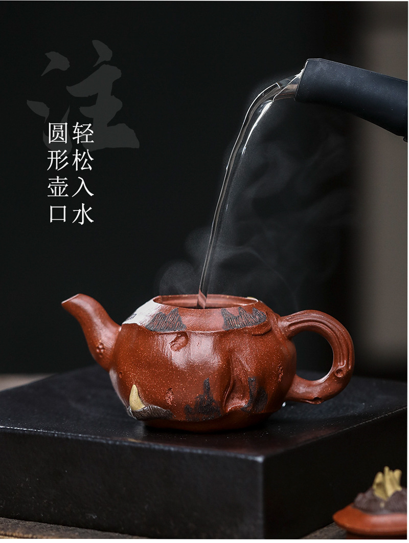 商品名称:宜兴手工紫砂壶 红降坡 竹芽飘香 家用茶具茶壶泡茶壶