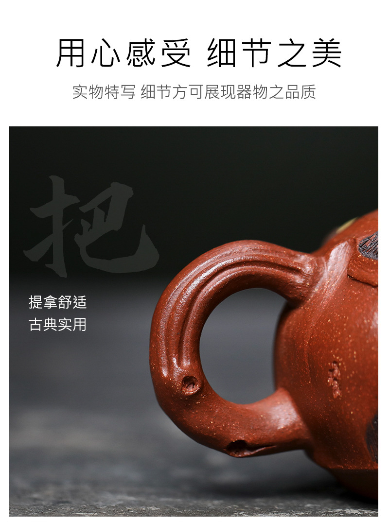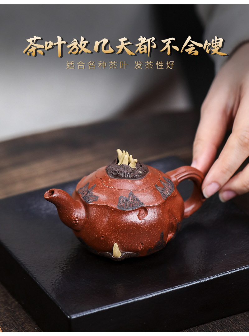 宜兴手工紫砂壶 红降坡 竹芽飘香 家用茶具茶壶泡茶壶