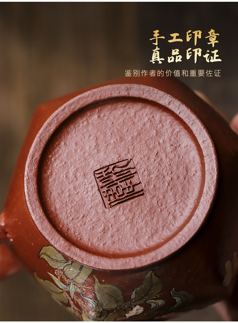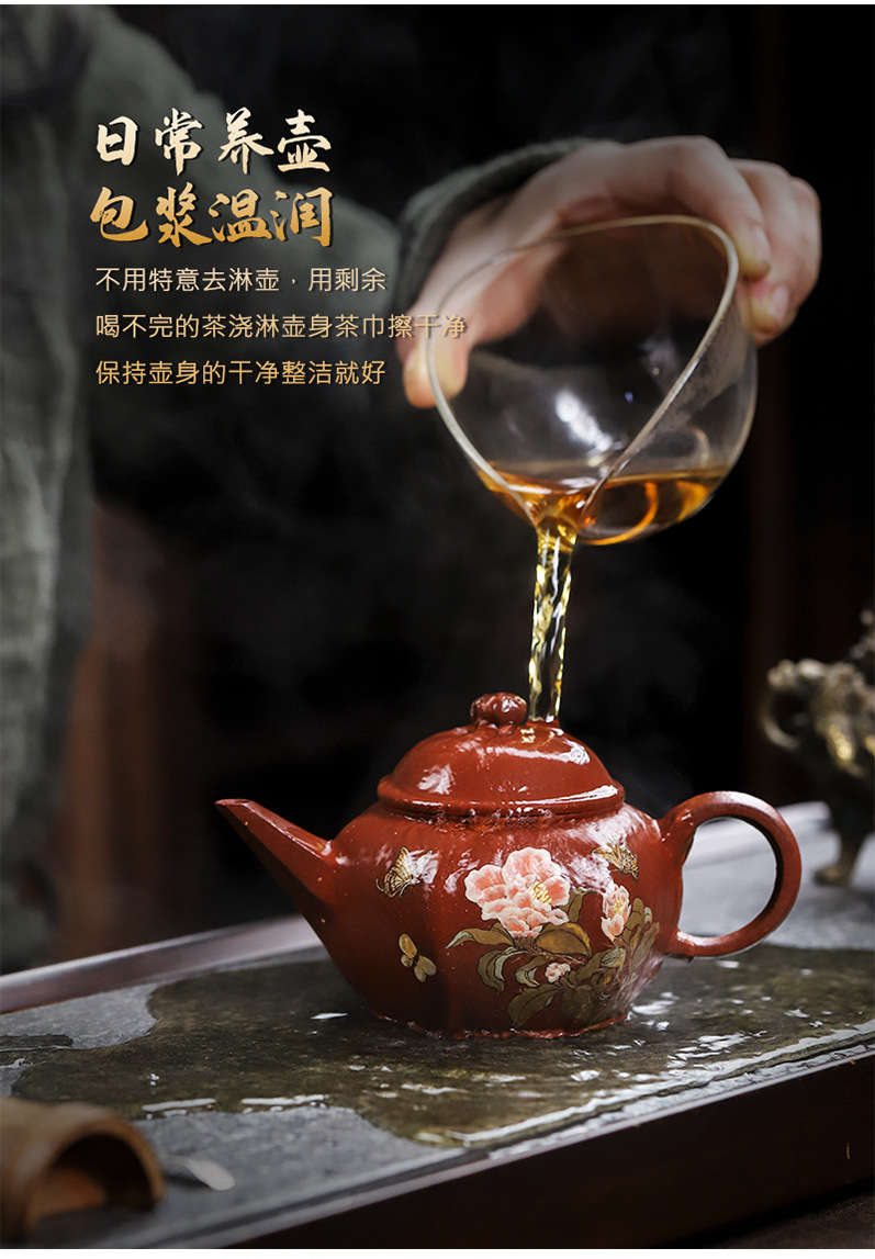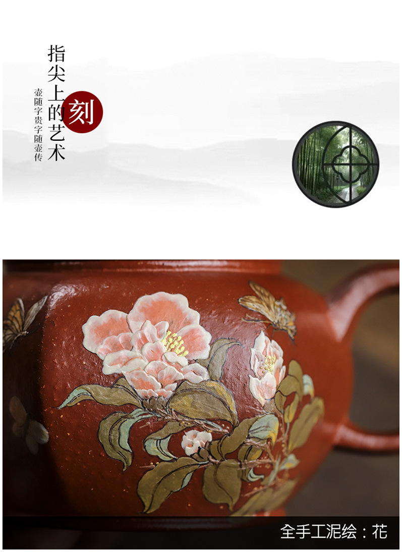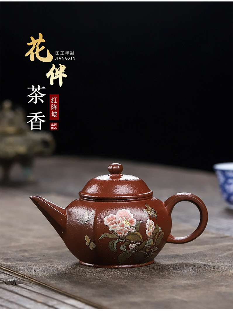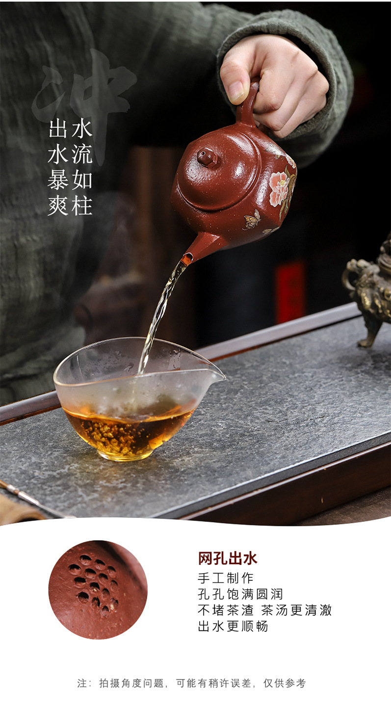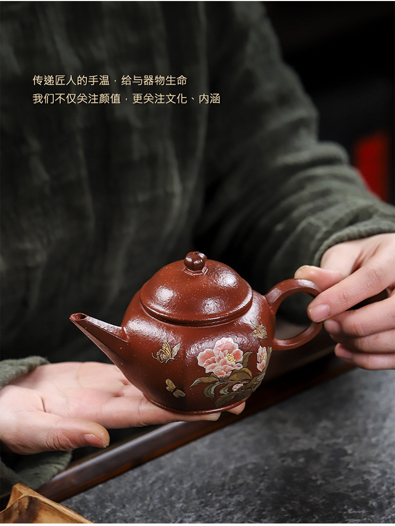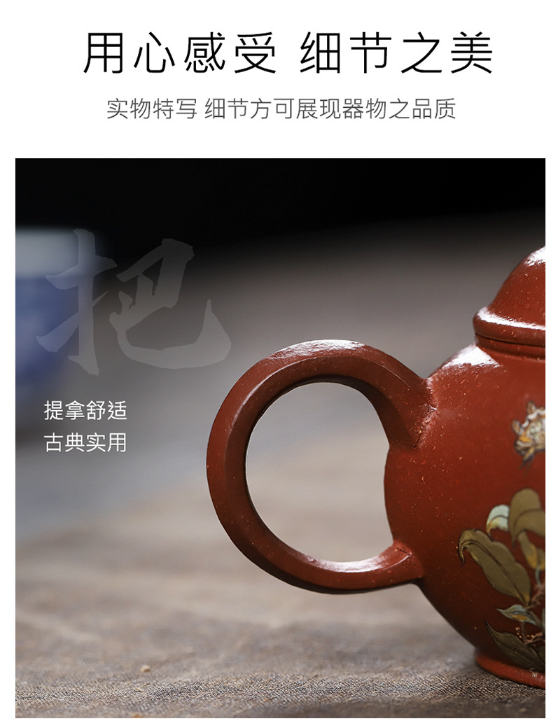 商品名称:宜兴手工紫砂壶家藏红降坡花伴茶香家用茶具茶壶泡茶壶