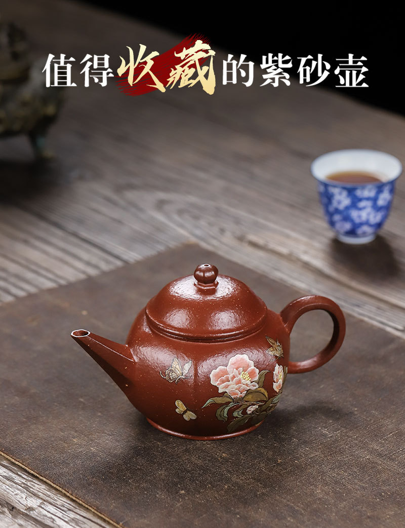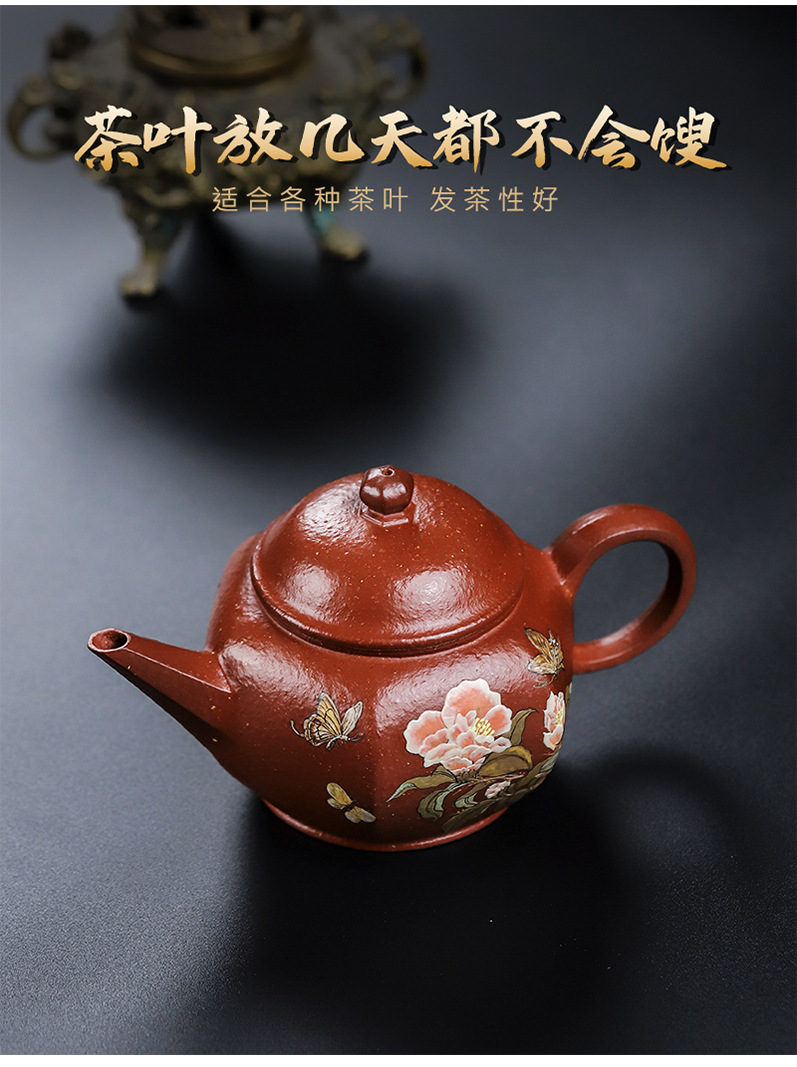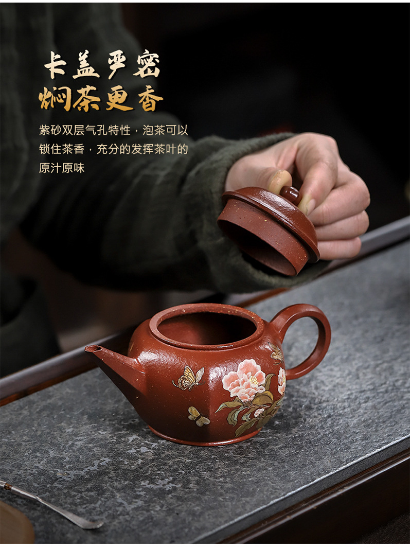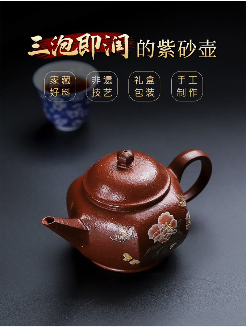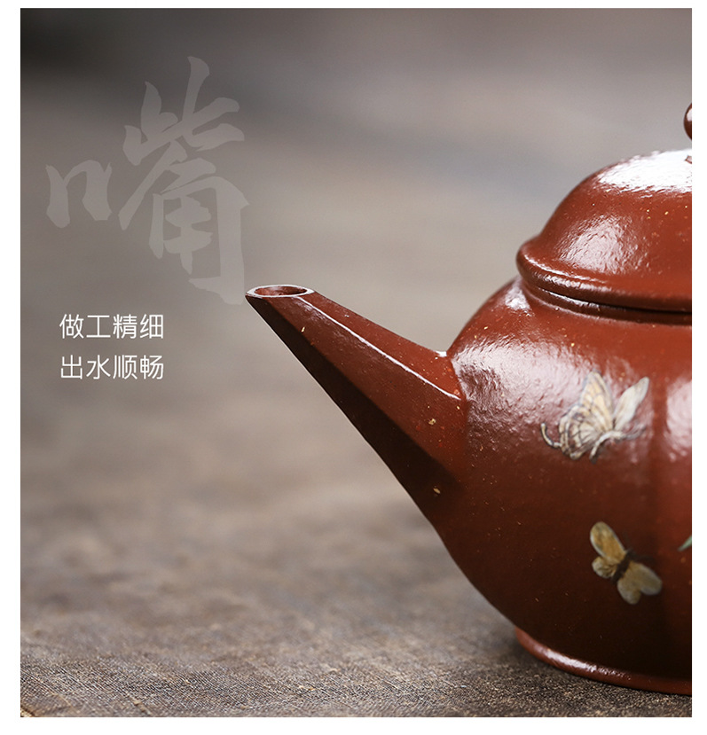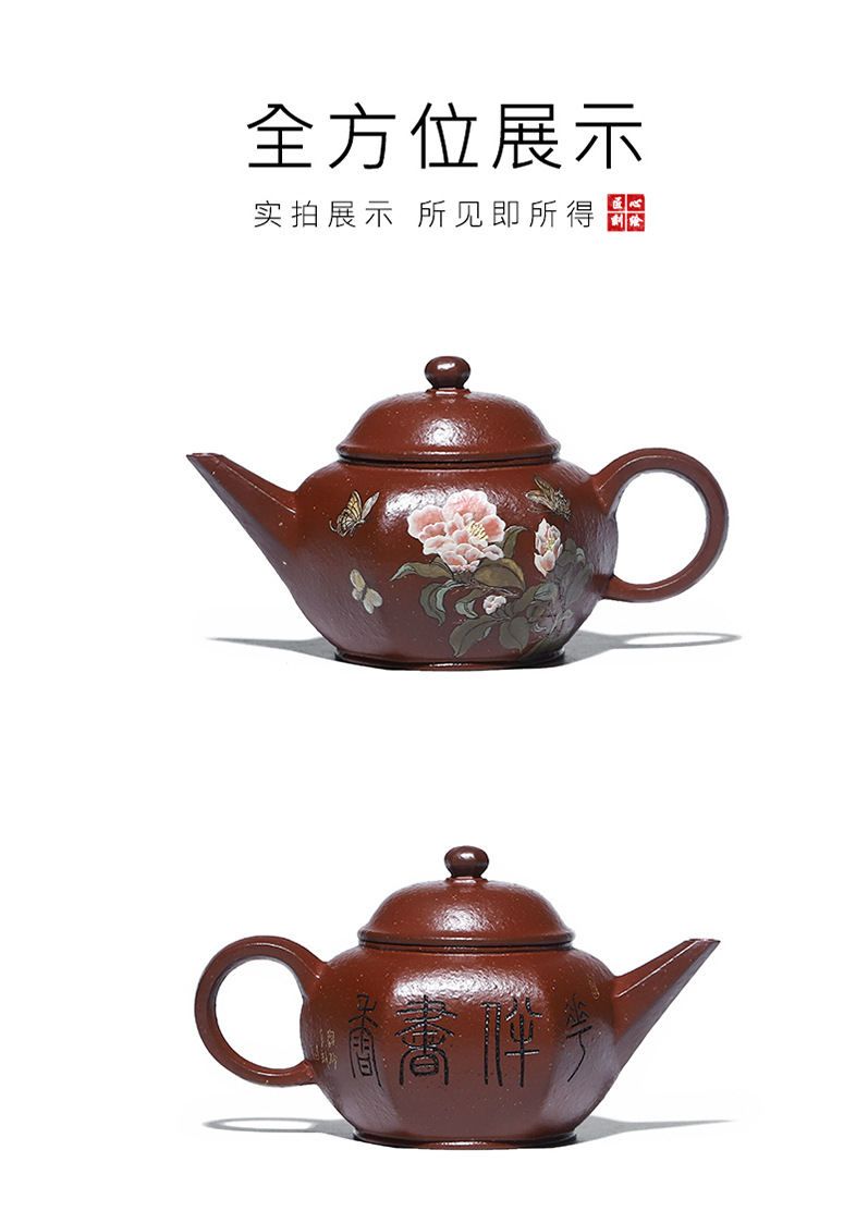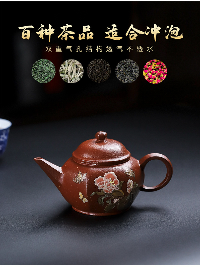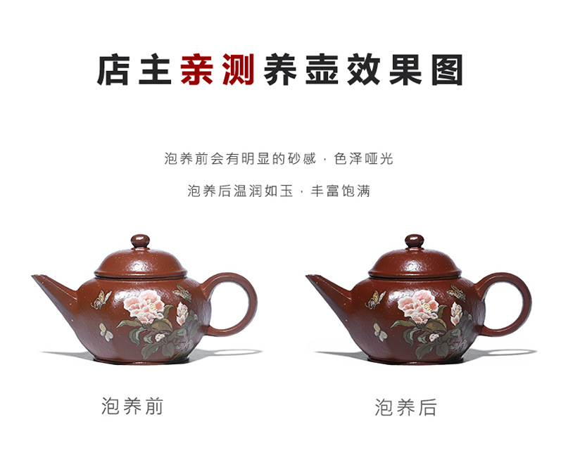 商品名称:宜兴手工紫砂壶家藏红降坡花伴茶香家用茶具茶壶泡茶壶