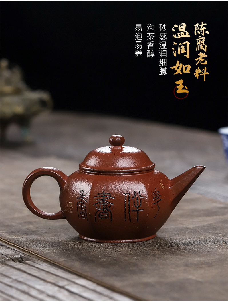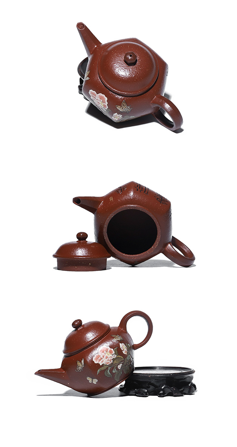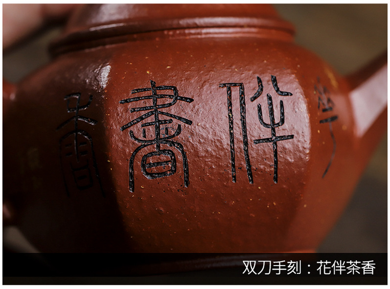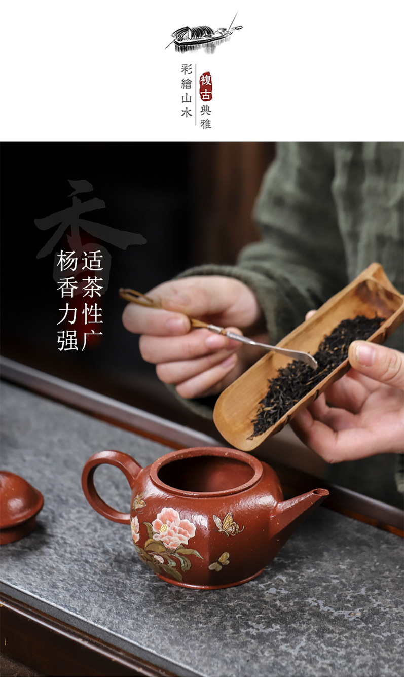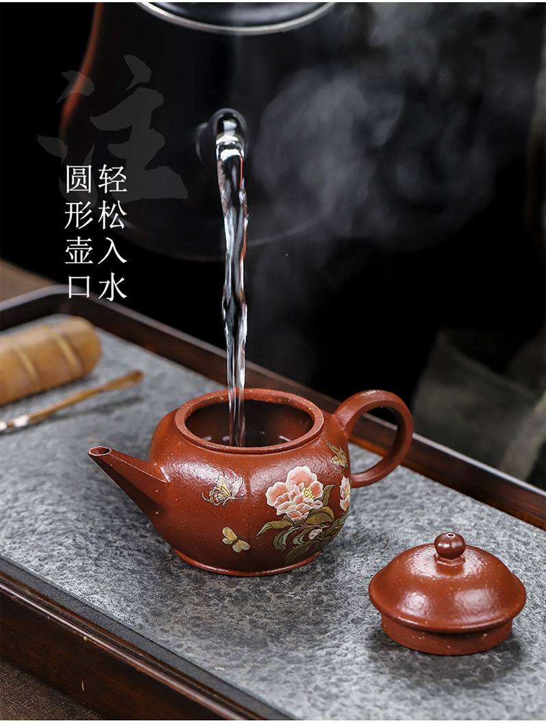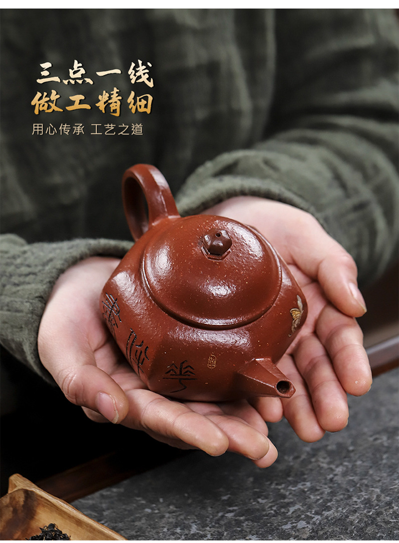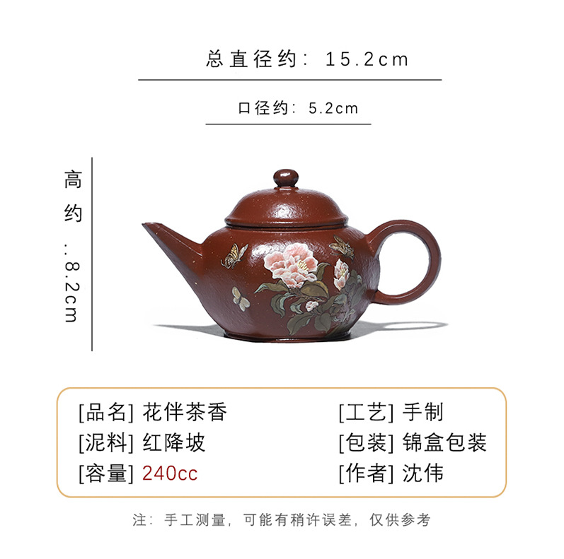 商品名称:宜兴手工紫砂壶家藏红降坡花伴茶香家用茶具茶壶泡茶壶
