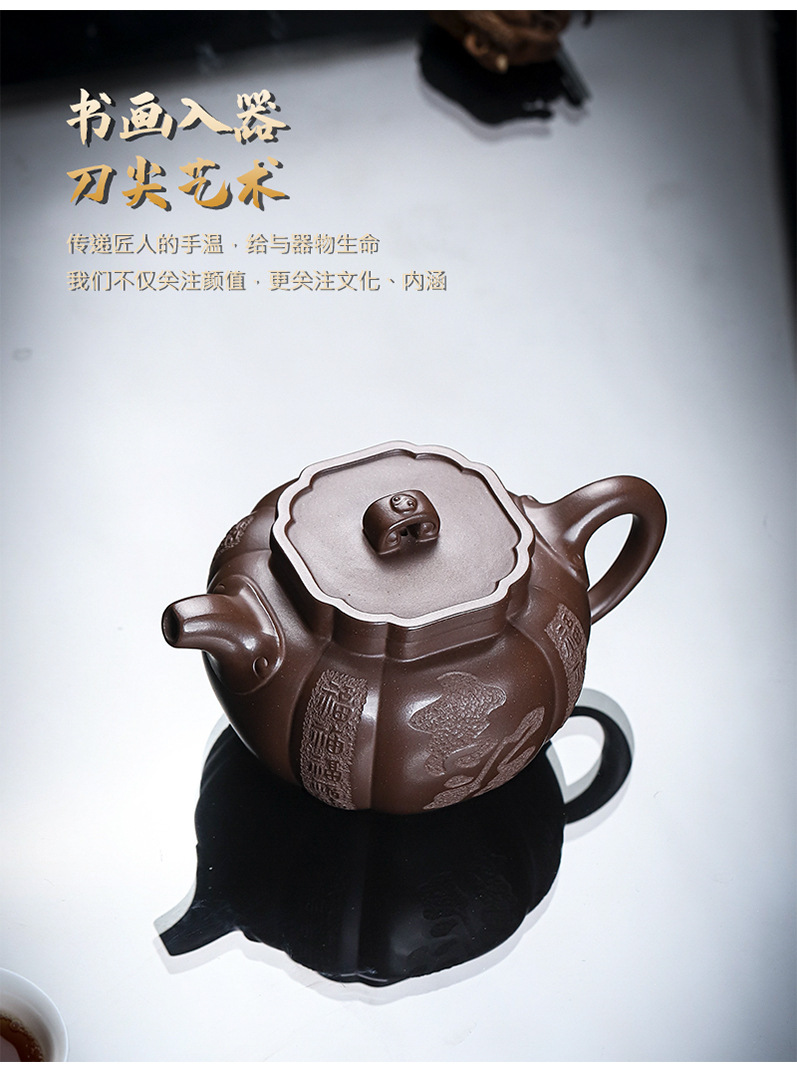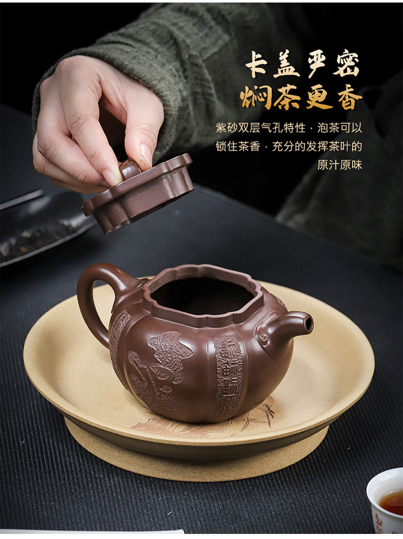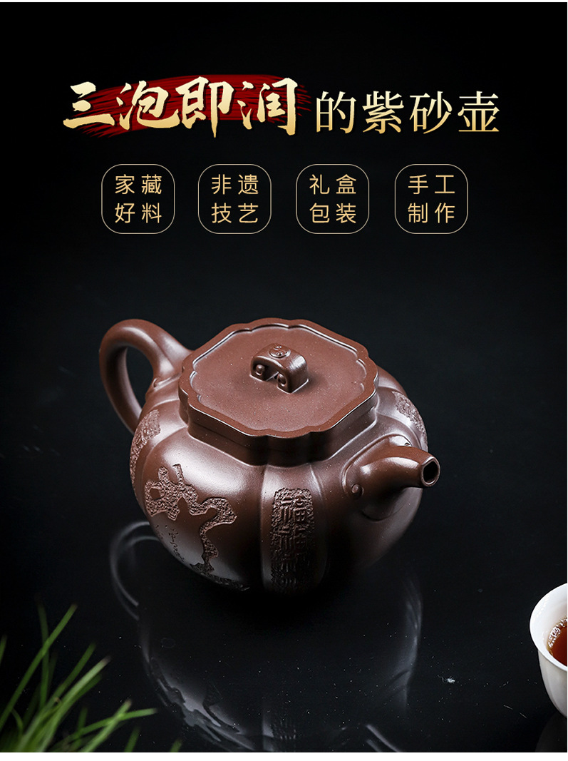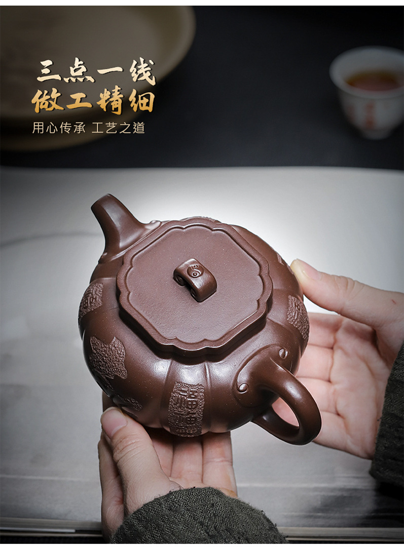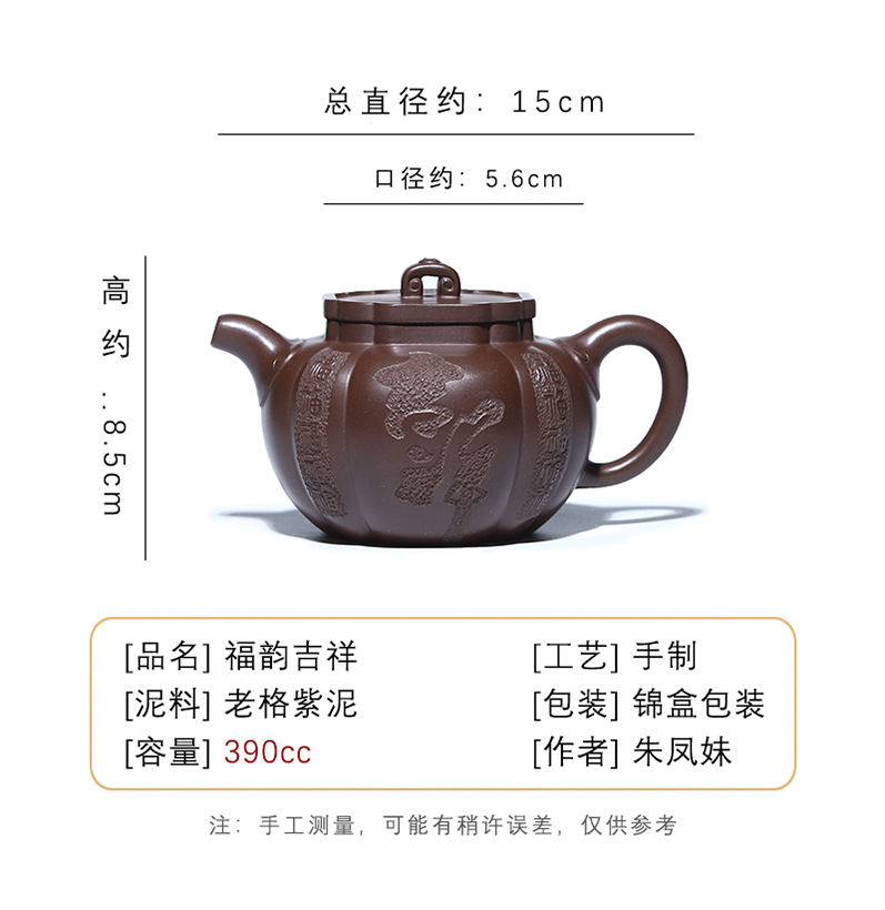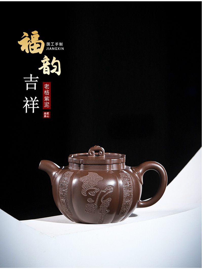 商品名称:宜兴手工紫砂壶老格紫泥福韵吉祥家用茶具茶壶