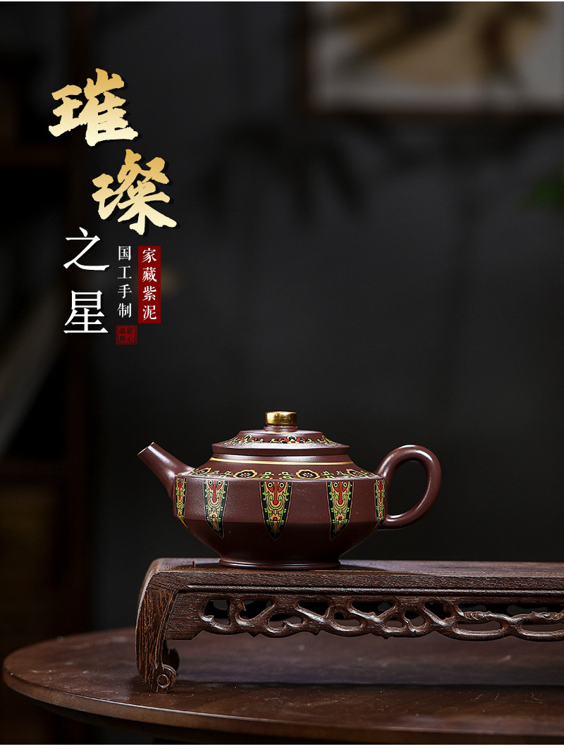 商品名称:宜兴手工紫砂壶家藏紫泥璀璨之星证书齐全国工手制家用茶具茶壶
