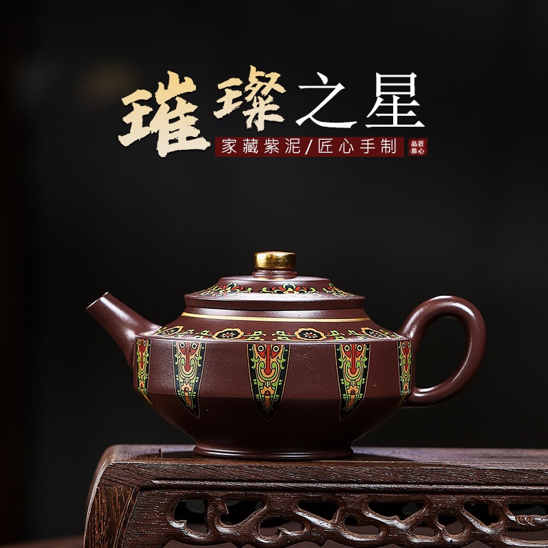 宜兴手工紫砂壶家藏紫泥璀璨之星证书齐全国工手制家用茶具茶壶