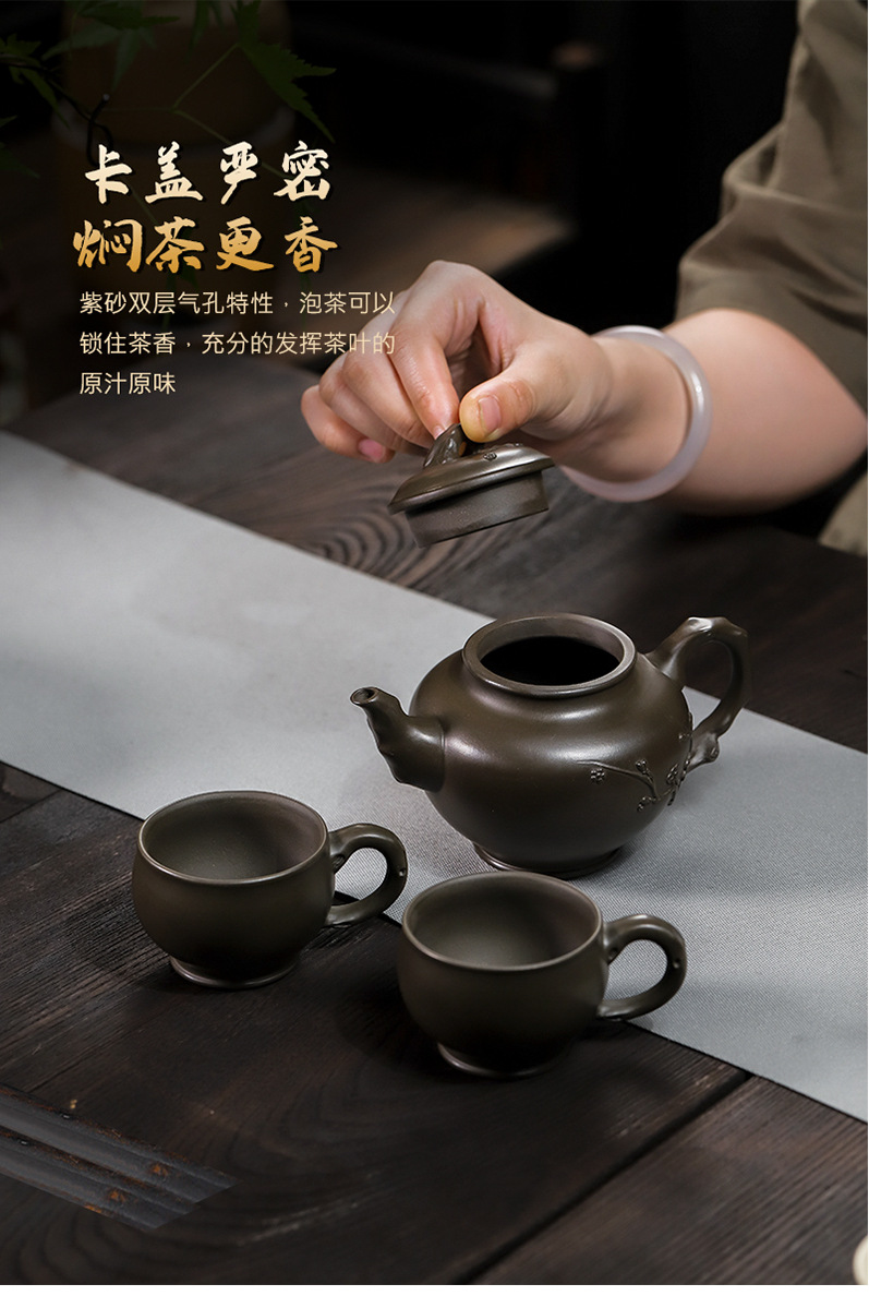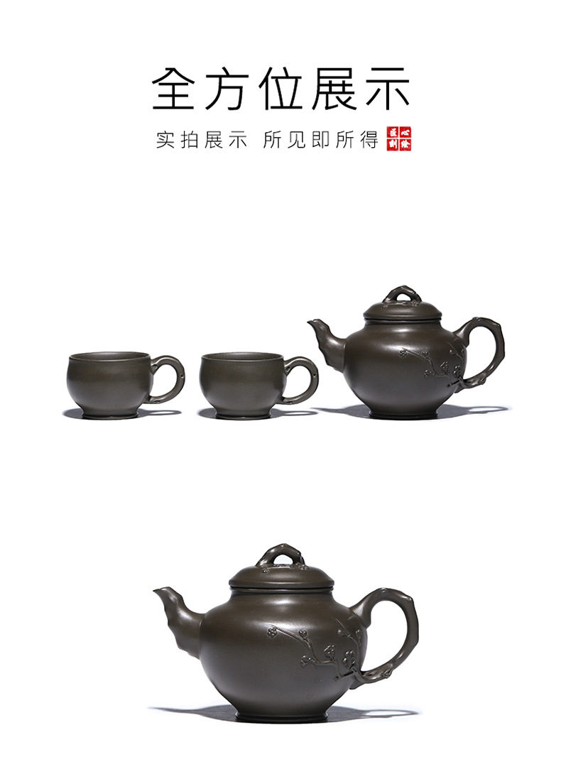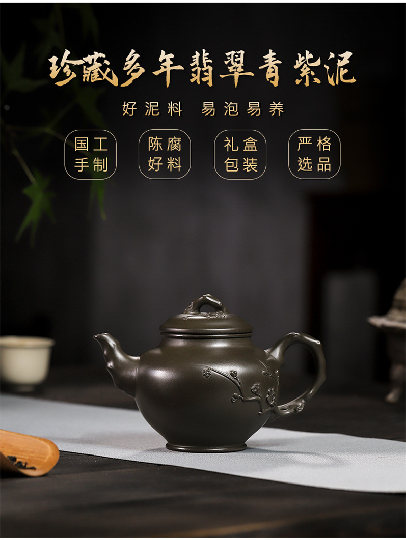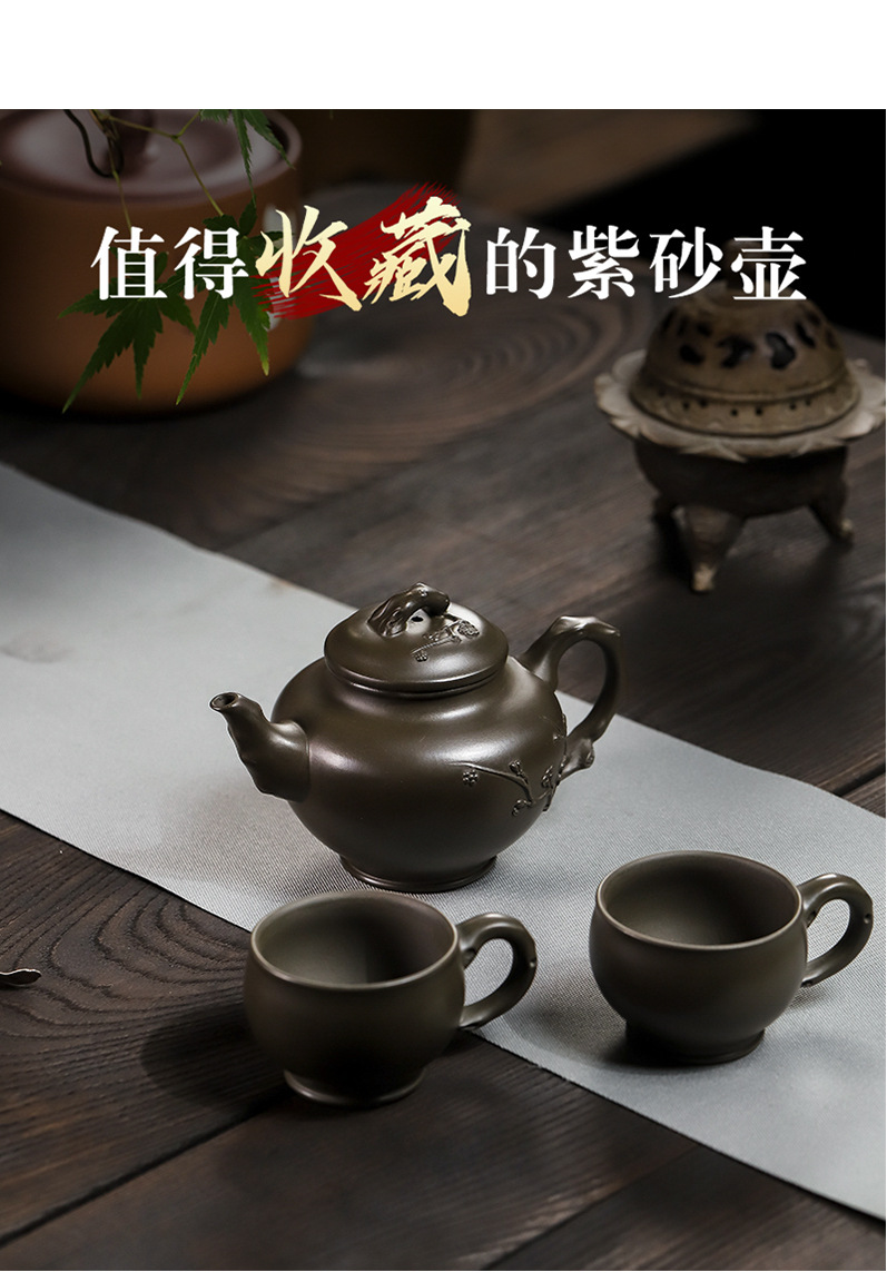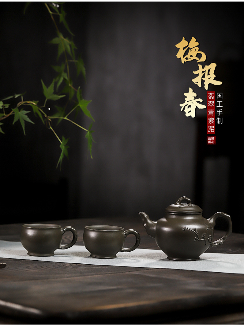 商品名称:宜兴手工紫砂壶翡翠青紫泥梅报春一壶两杯家用茶具茶壶国工手制