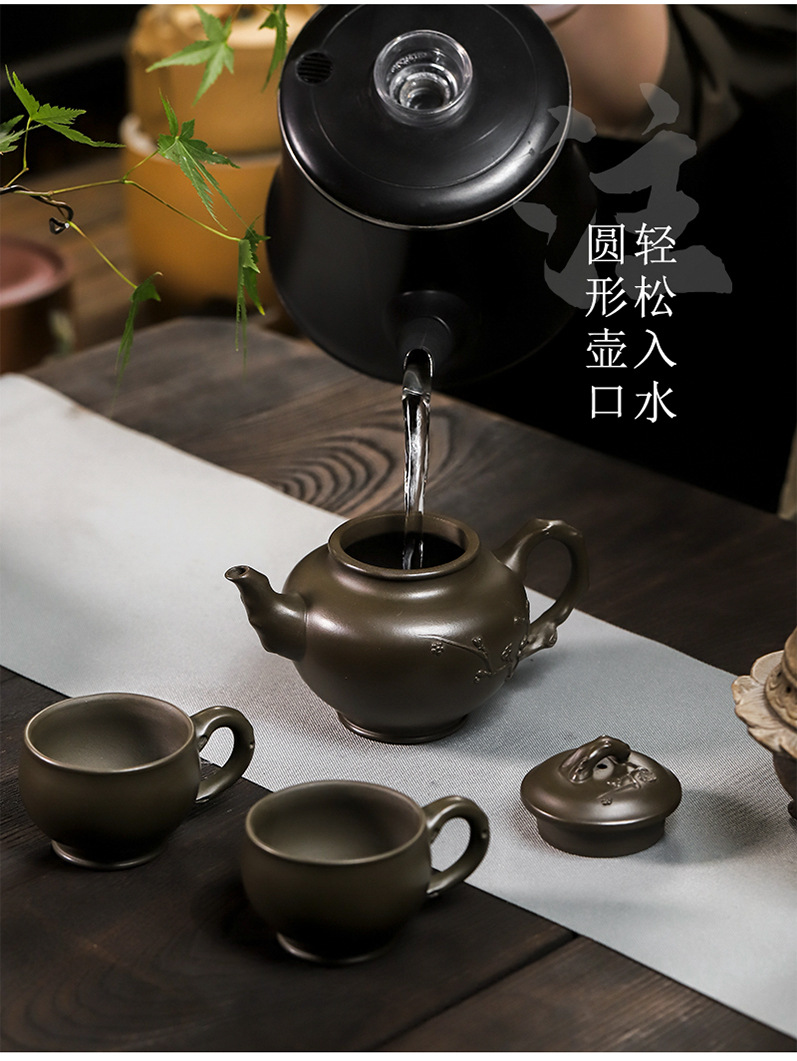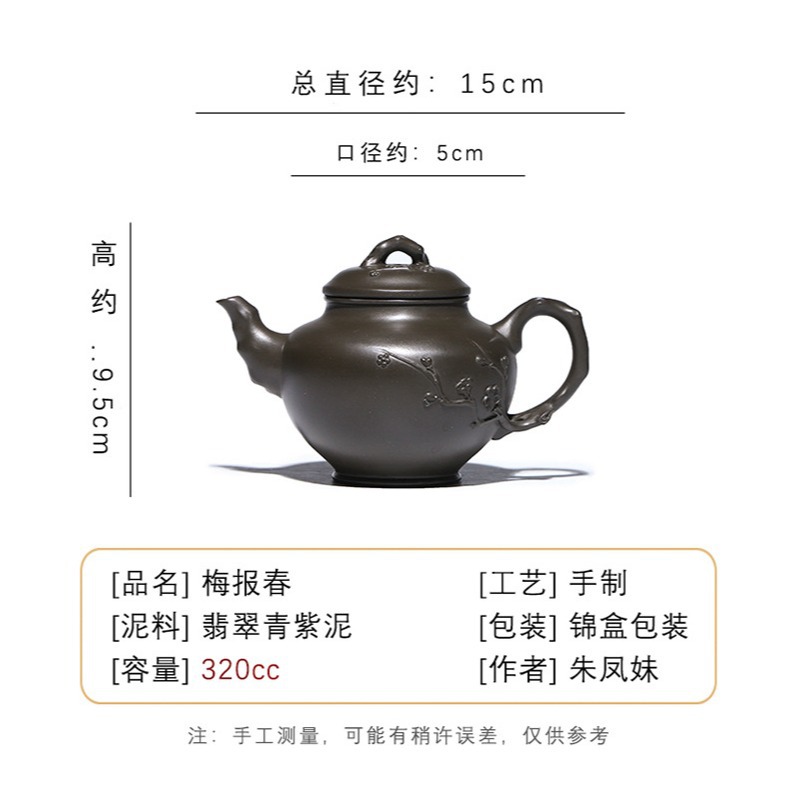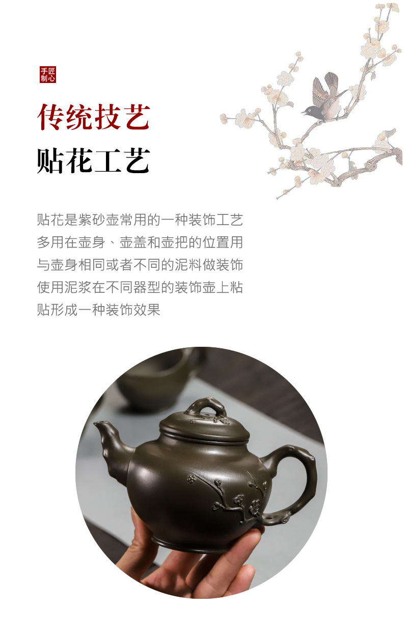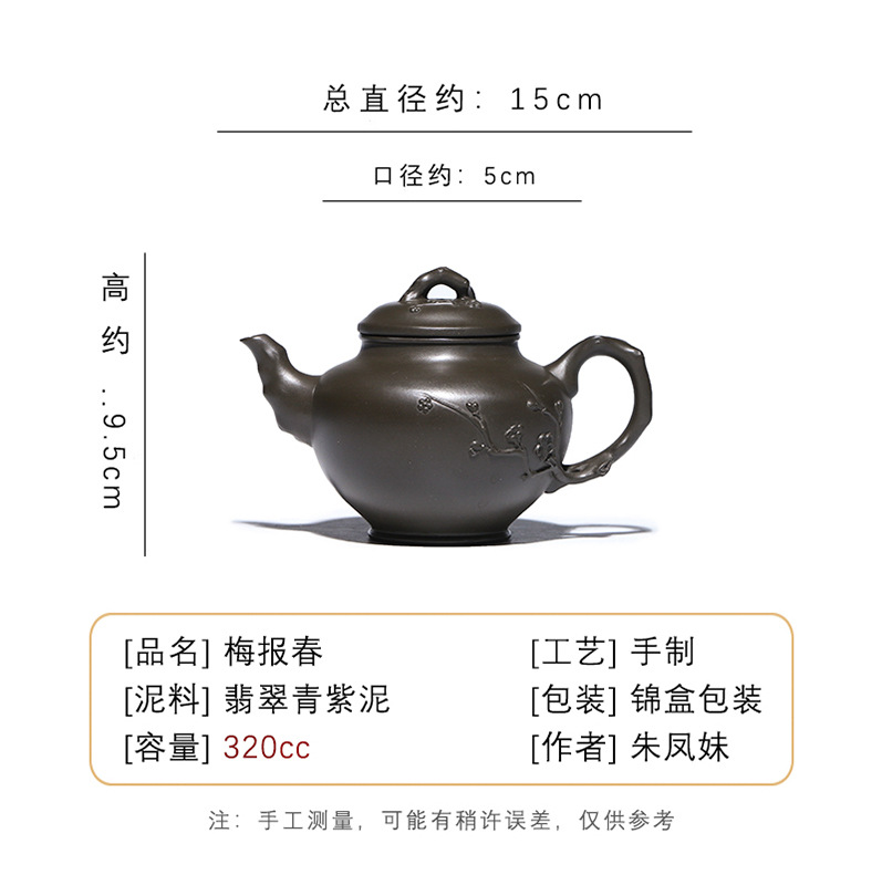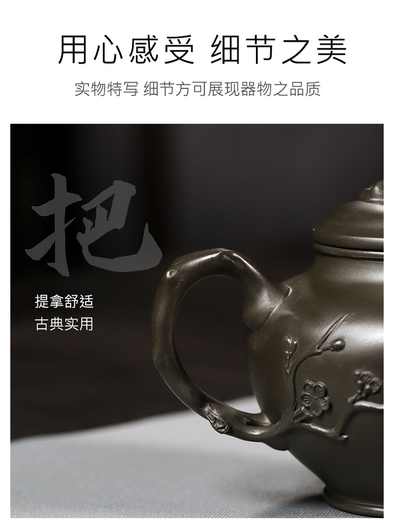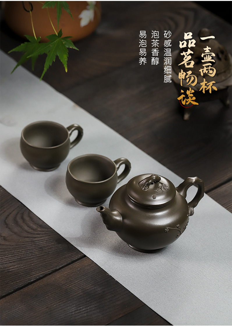 商品名称:宜兴手工紫砂壶翡翠青紫泥梅报春一壶两杯家用茶具茶壶国工手制