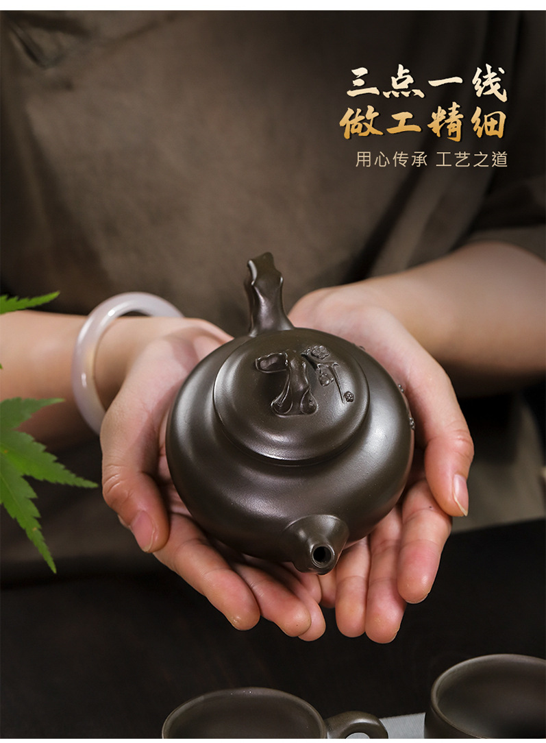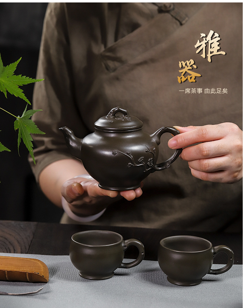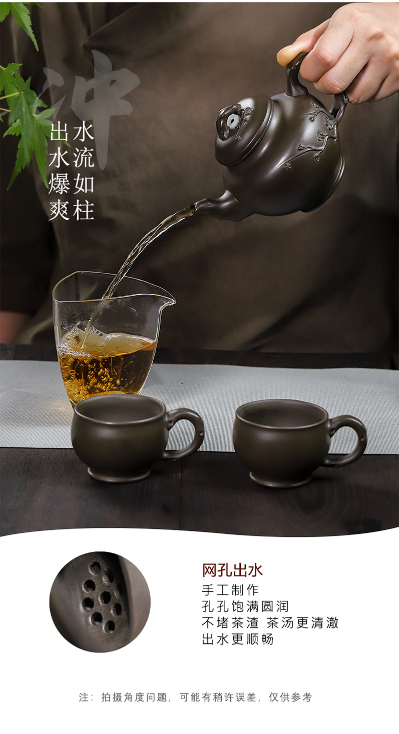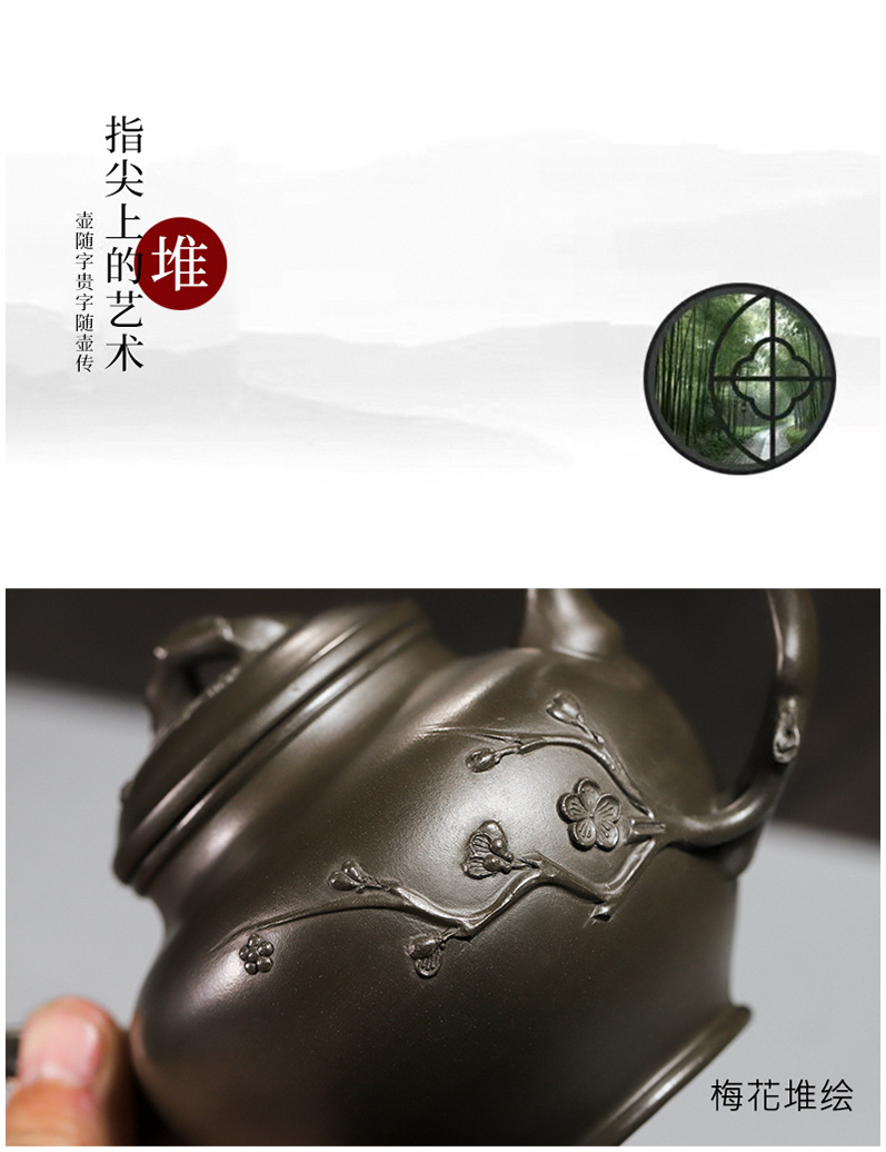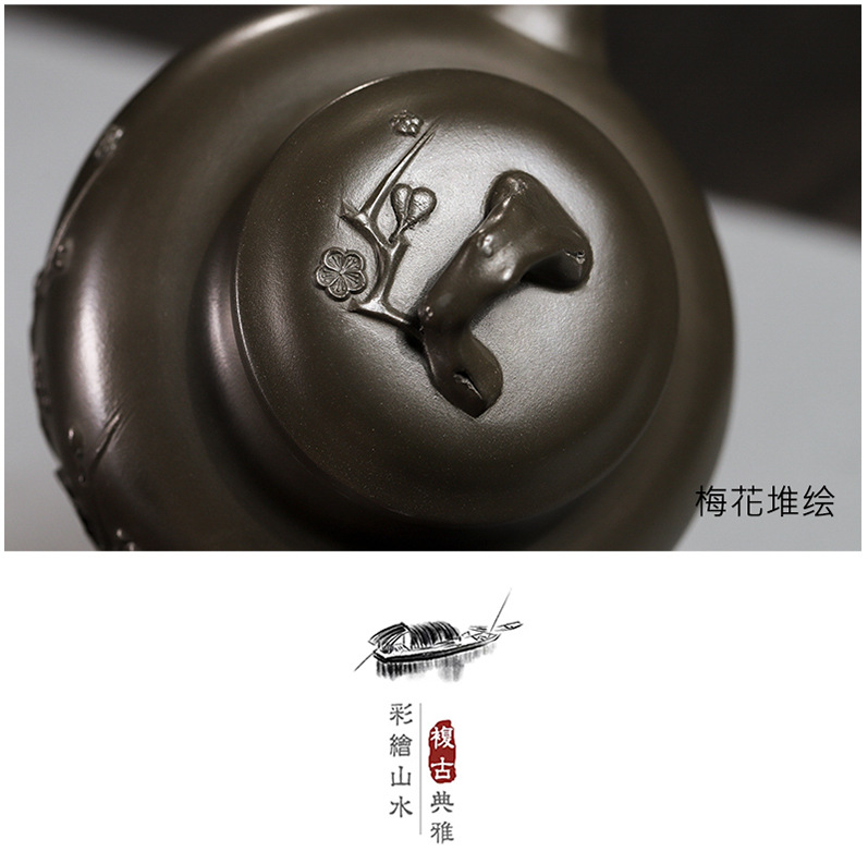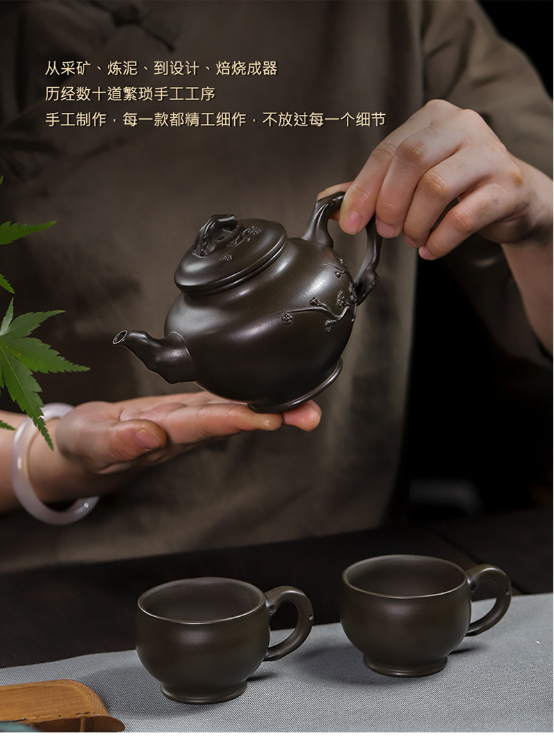 商品名称:宜兴手工紫砂壶翡翠青紫泥梅报春一壶两杯家用茶具茶壶国工手制