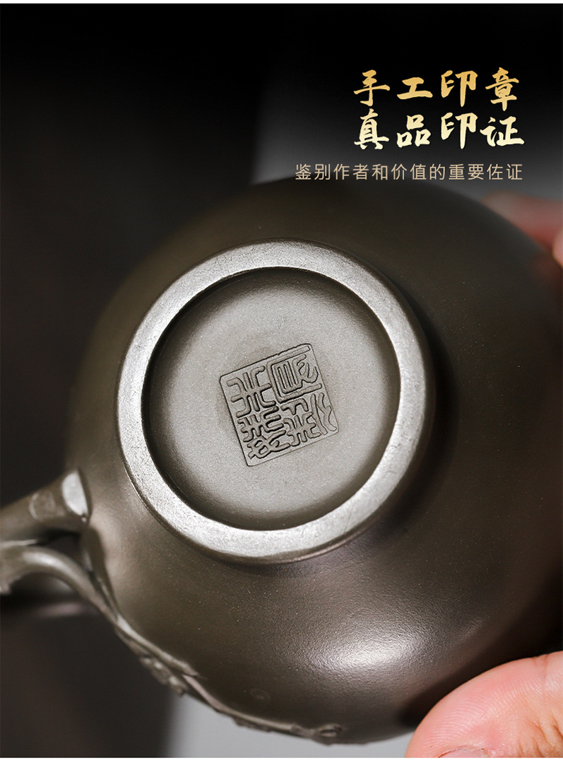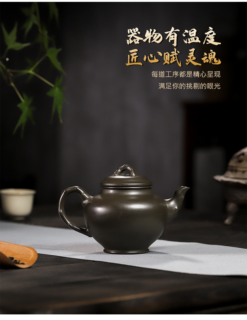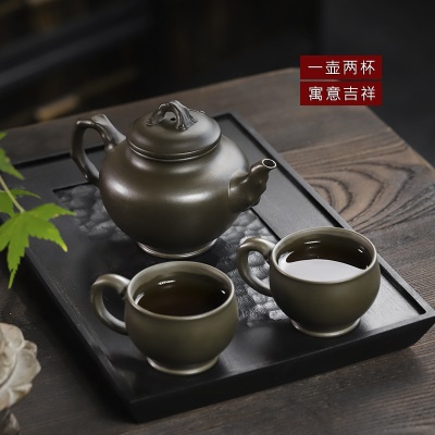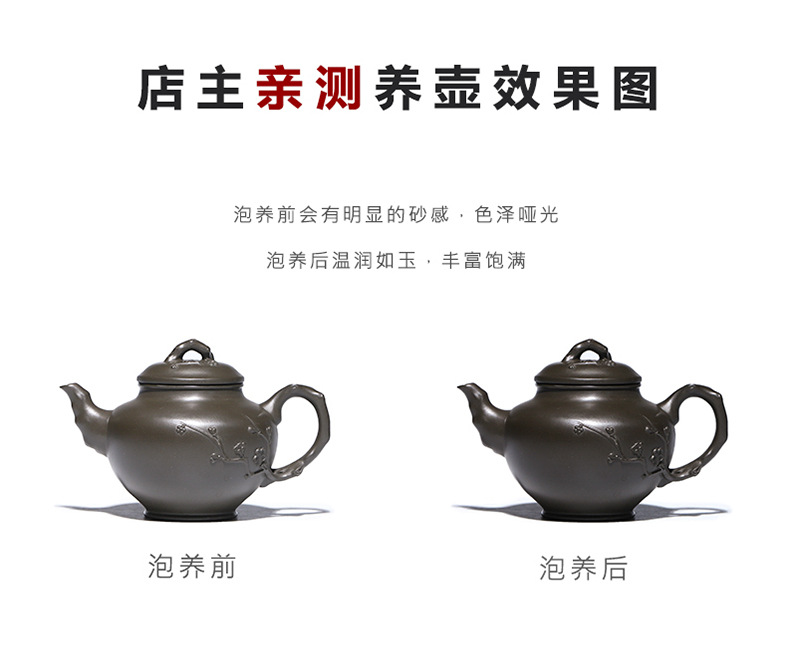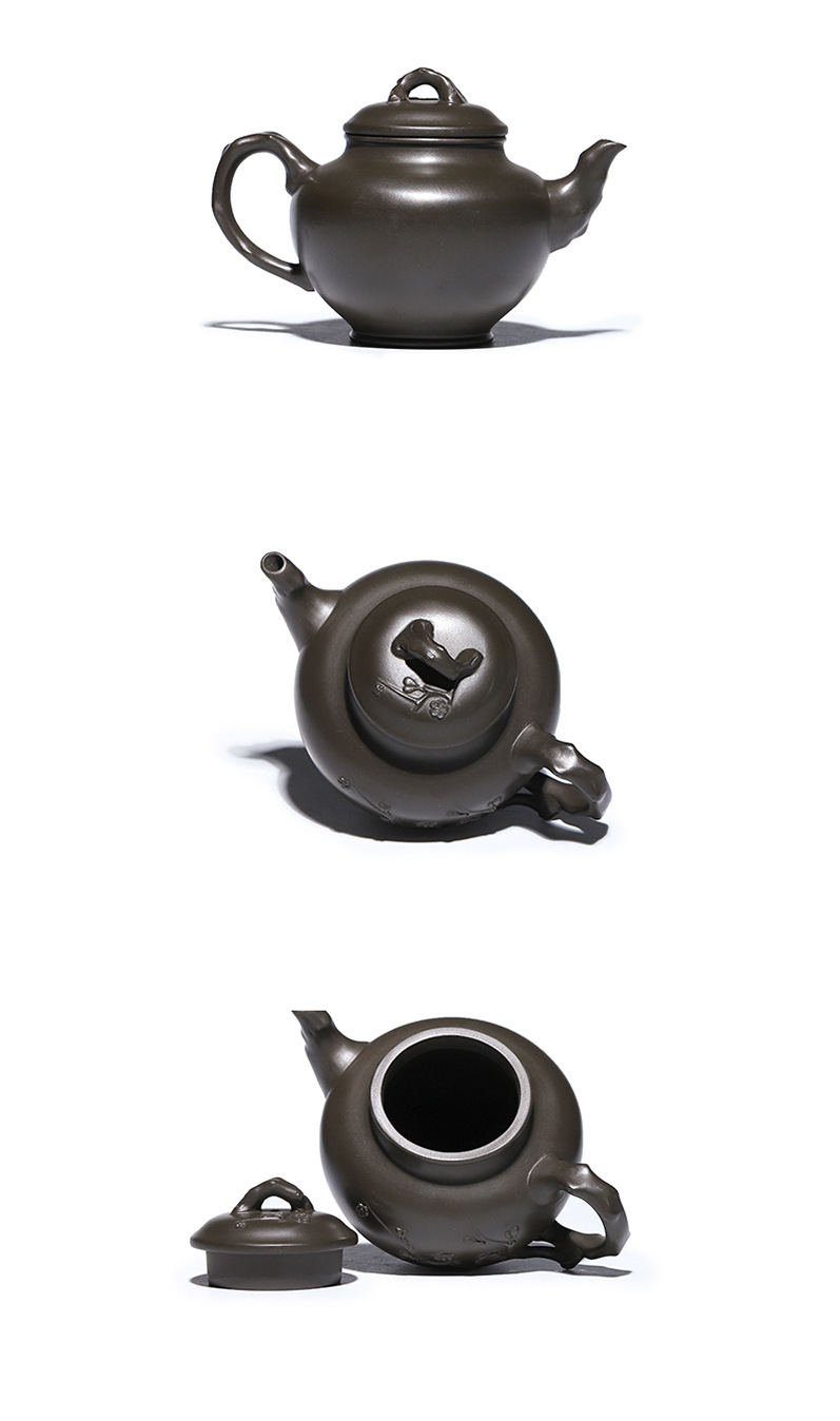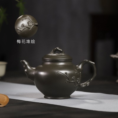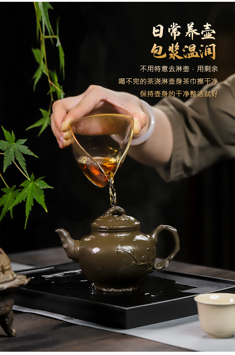 商品名称:宜兴手工紫砂壶翡翠青紫泥梅报春一壶两杯家用茶具茶壶国工手制