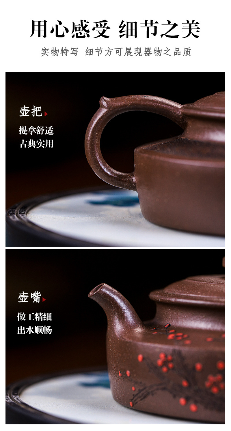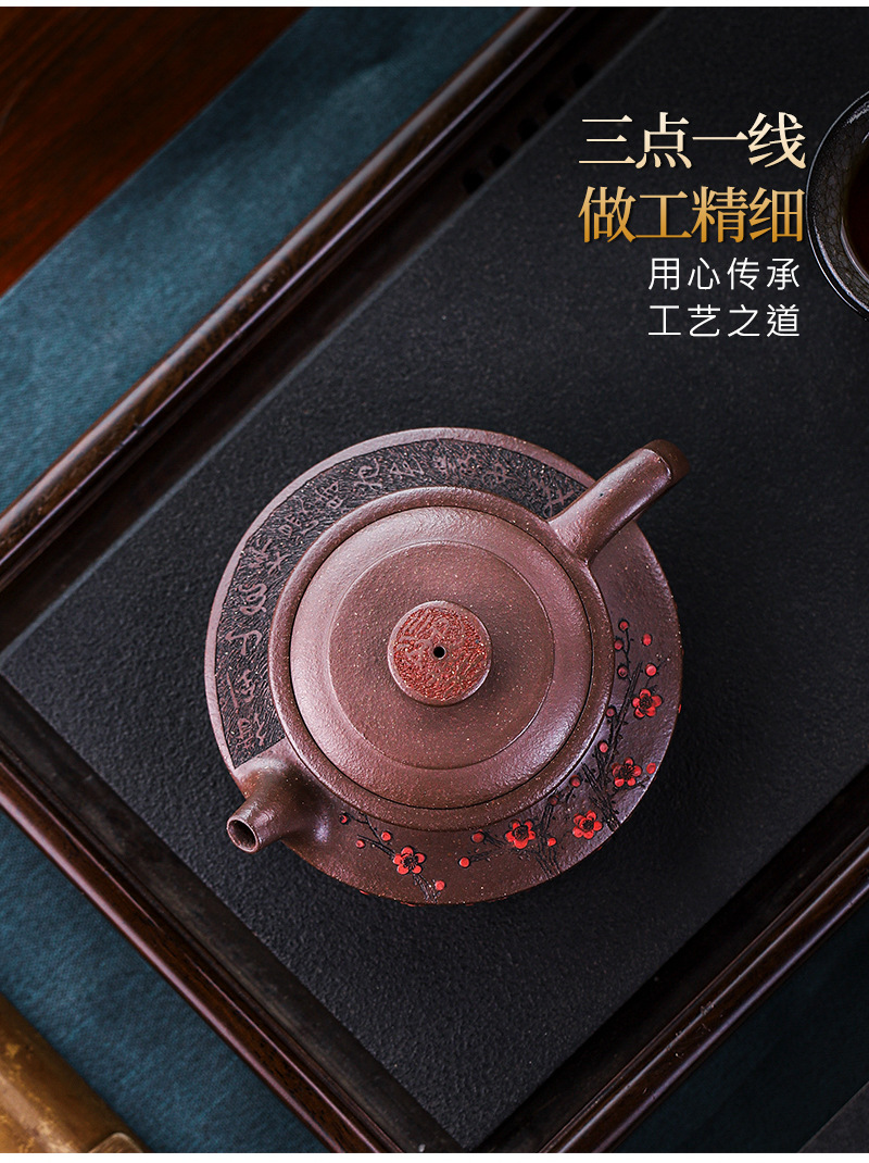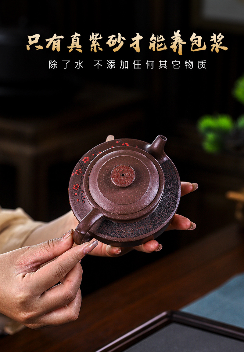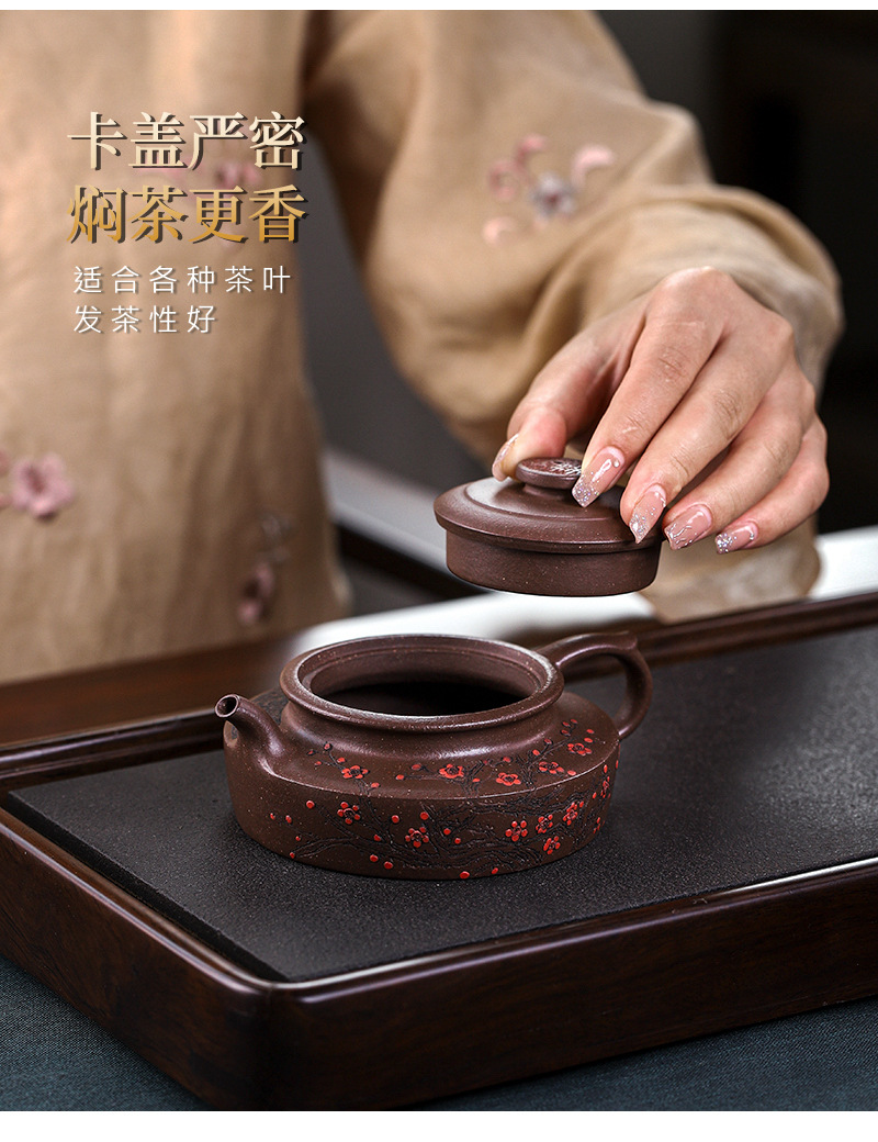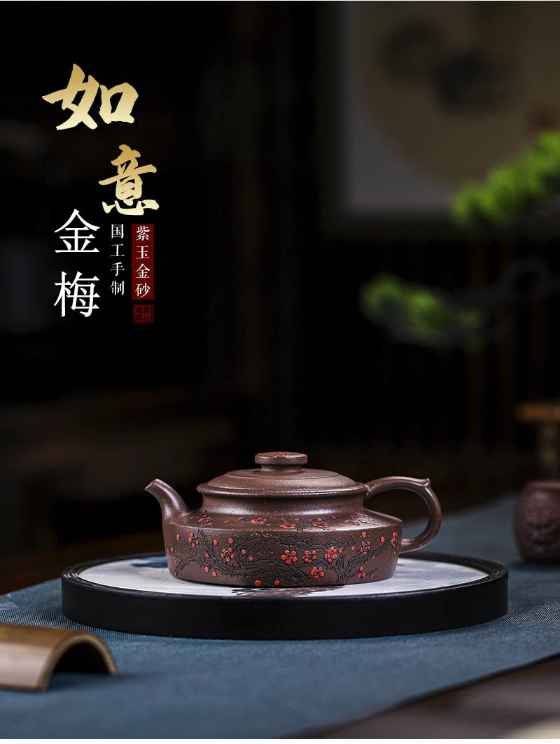 商品名称:宜兴手工紫砂壶家藏紫玉金砂如意金梅家用茶具茶壶