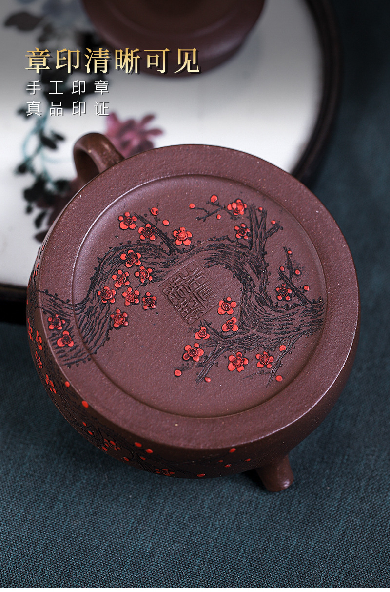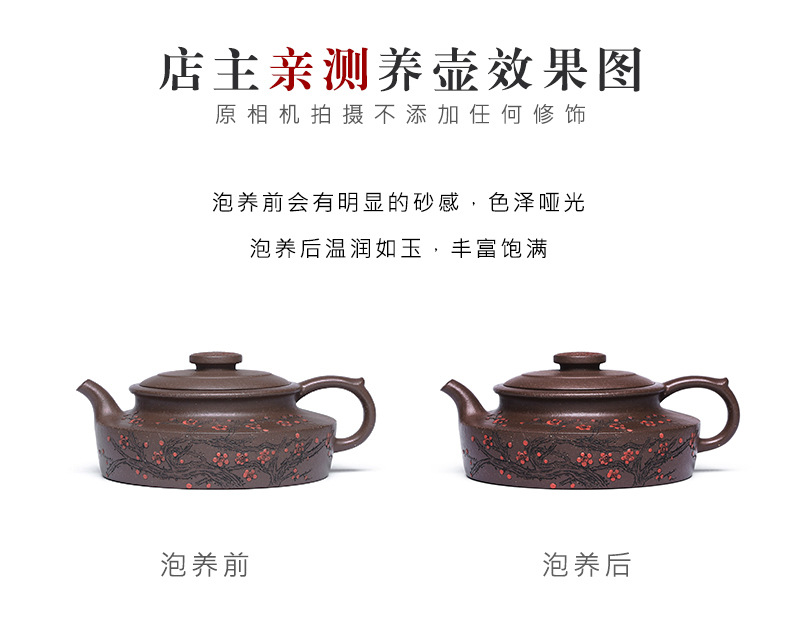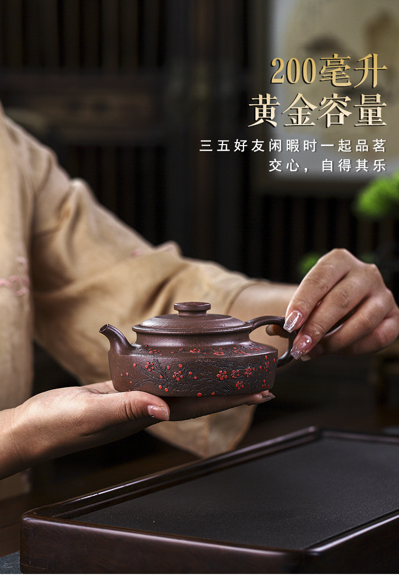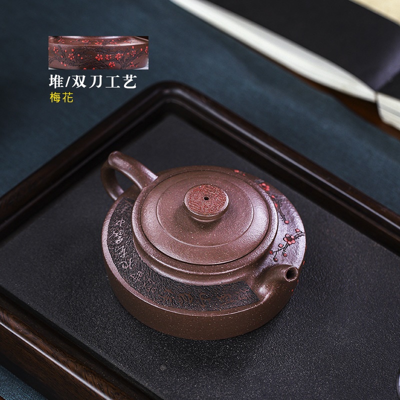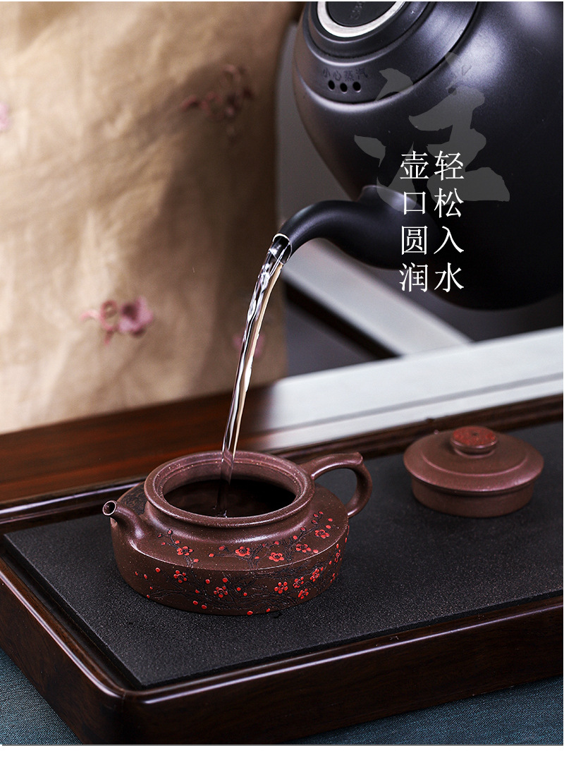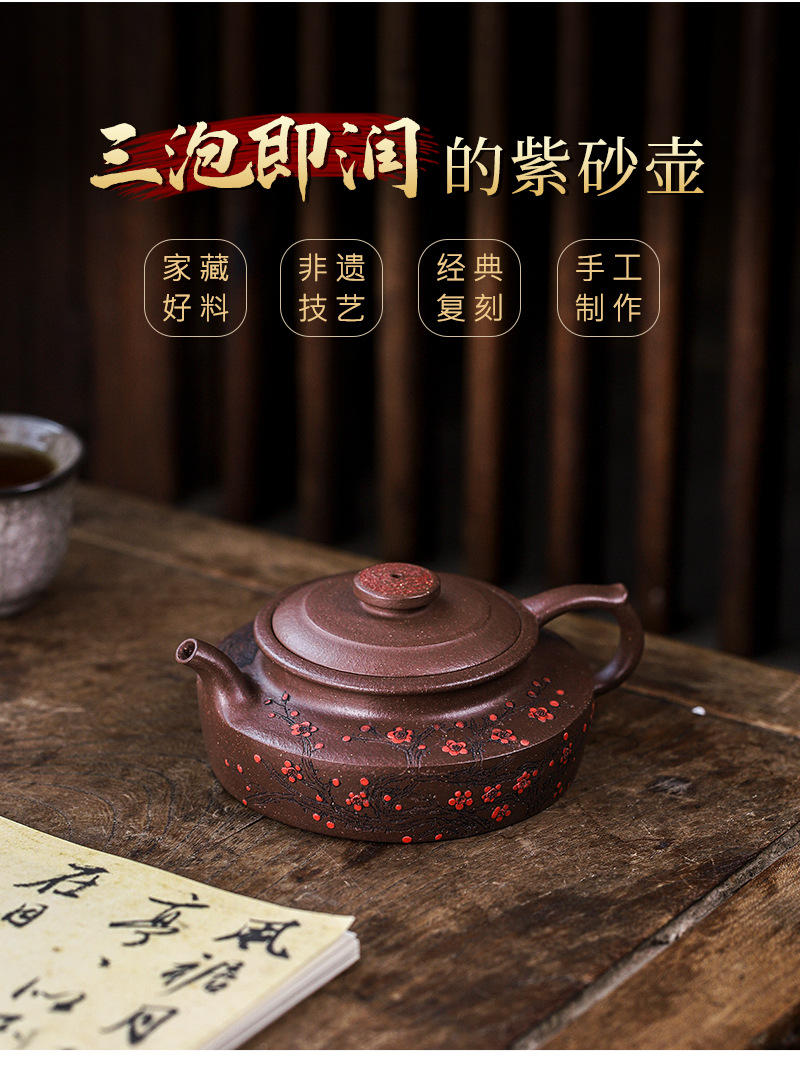 商品名称:宜兴手工紫砂壶家藏紫玉金砂如意金梅家用茶具茶壶
