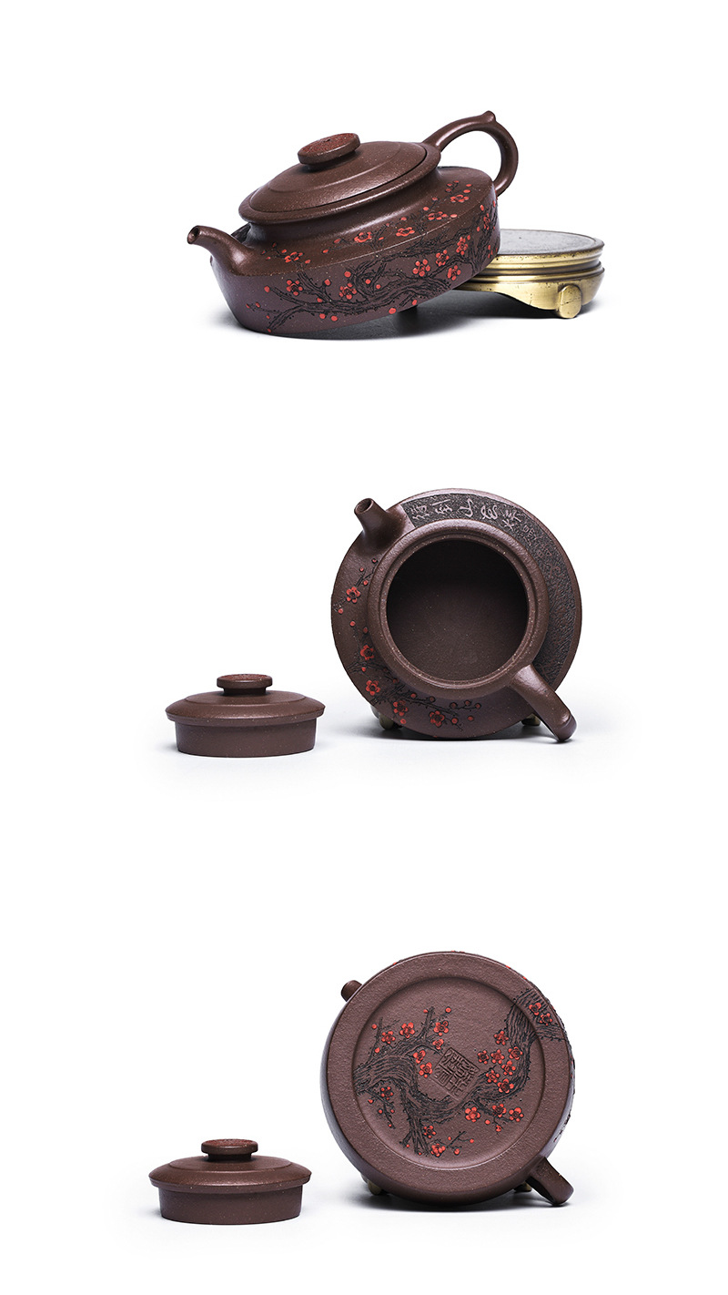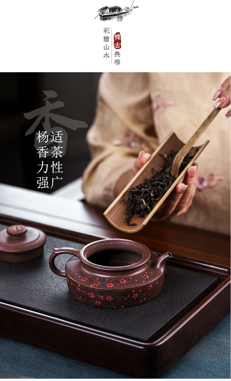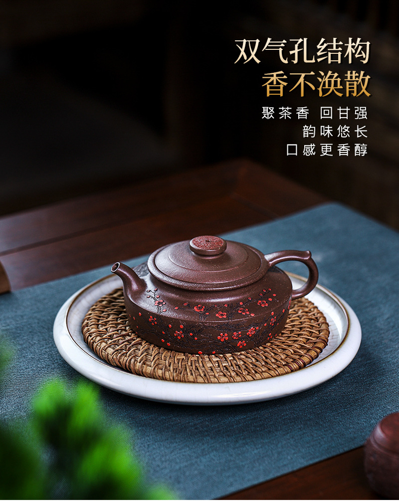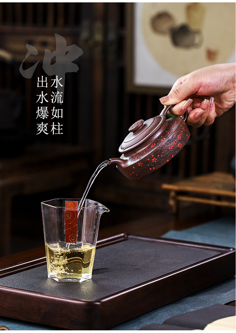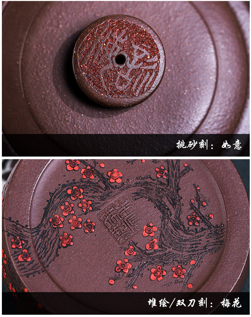 商品名称:宜兴手工紫砂壶家藏紫玉金砂如意金梅家用茶具茶壶