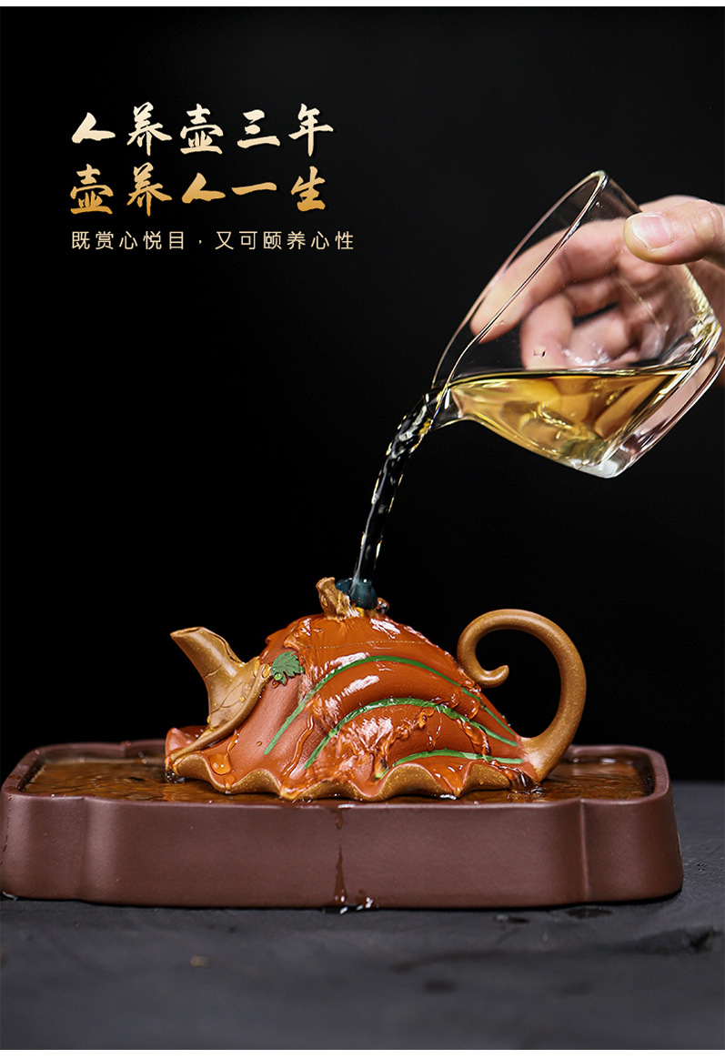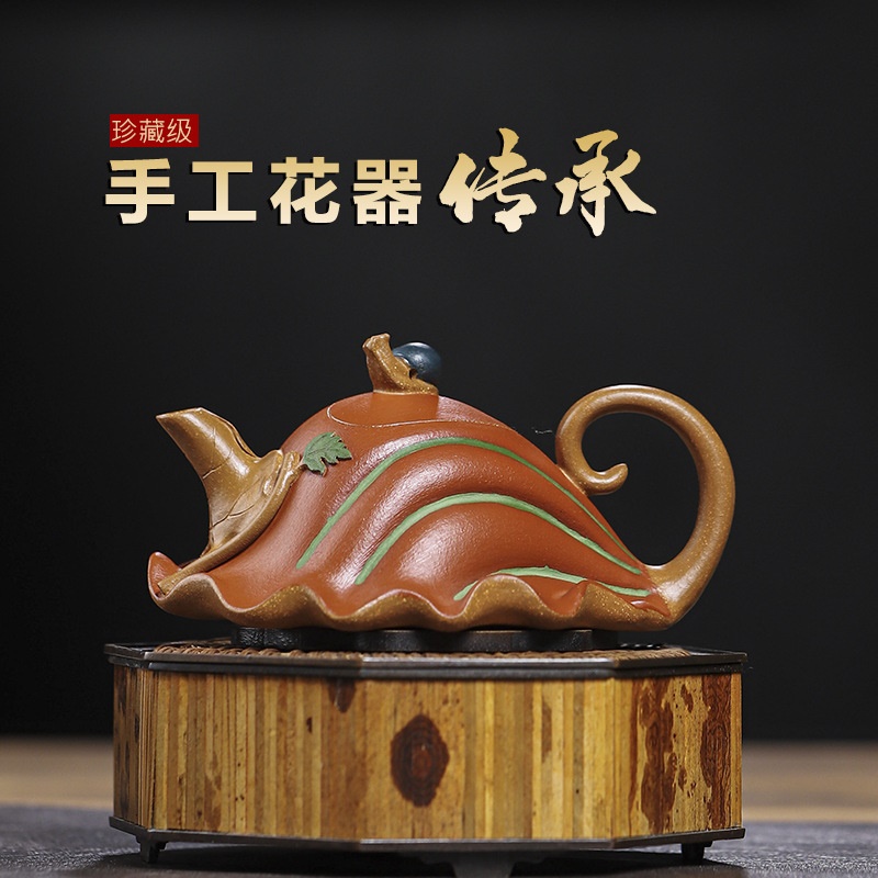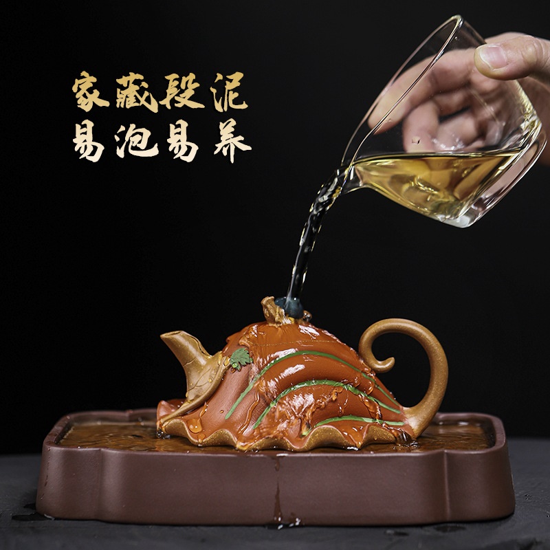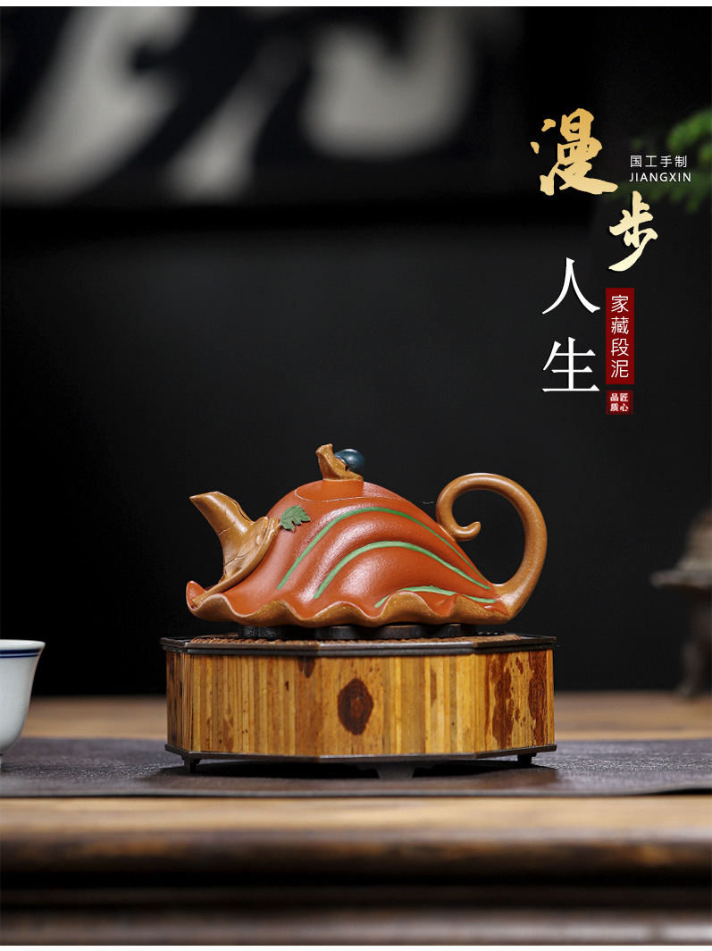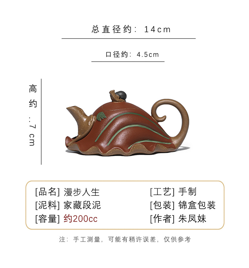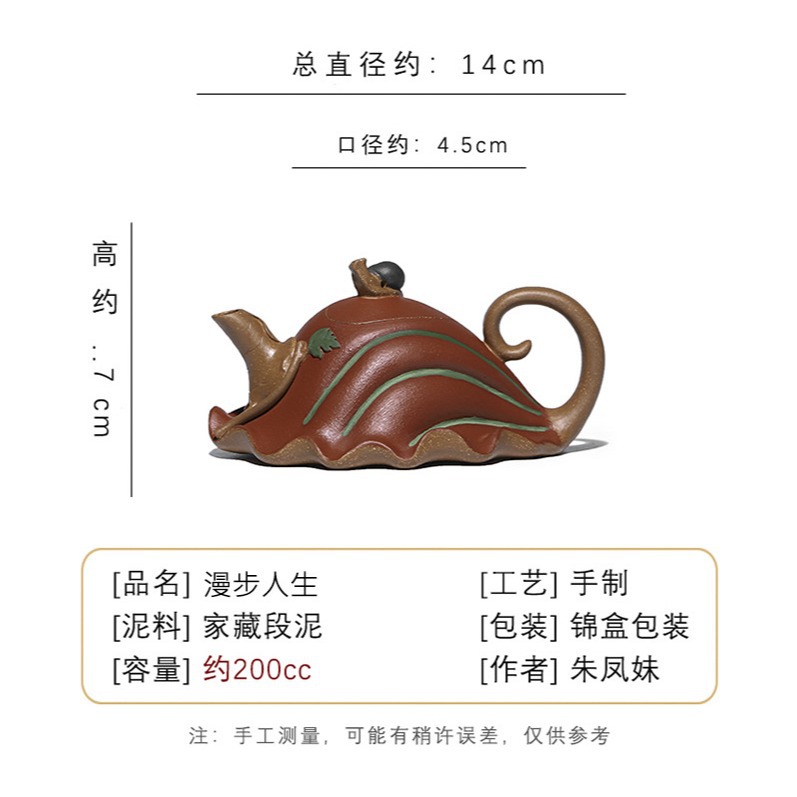 商品名称:宜兴手工紫砂壶家藏段泥漫步人生花器壶出水爆爽证书全国工手制
