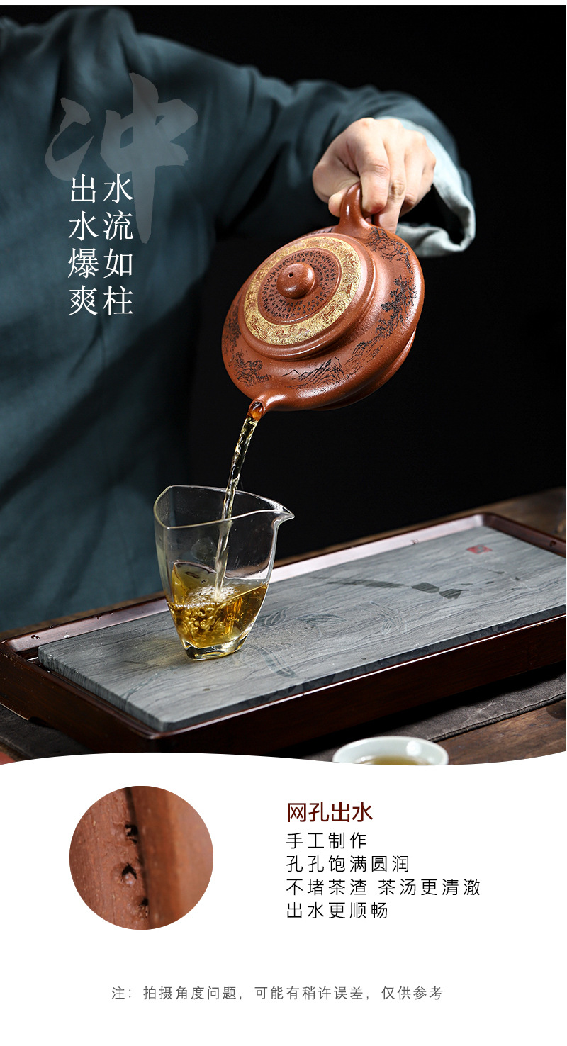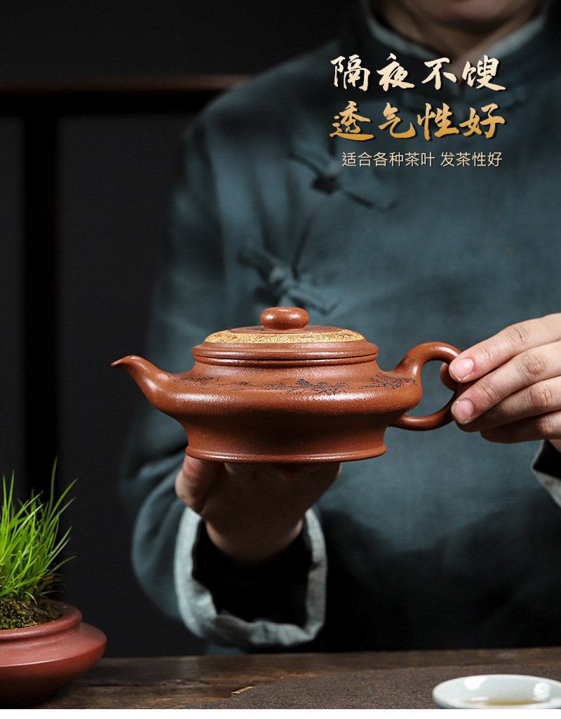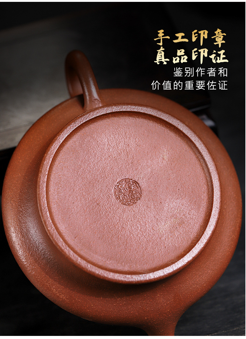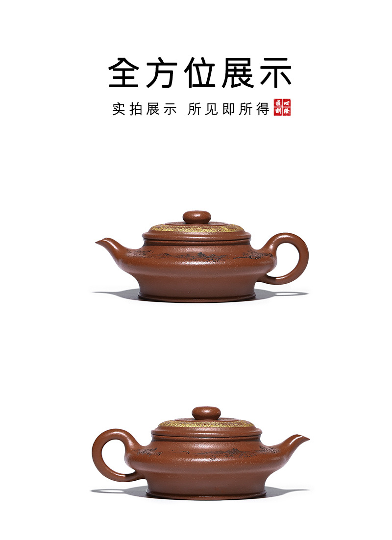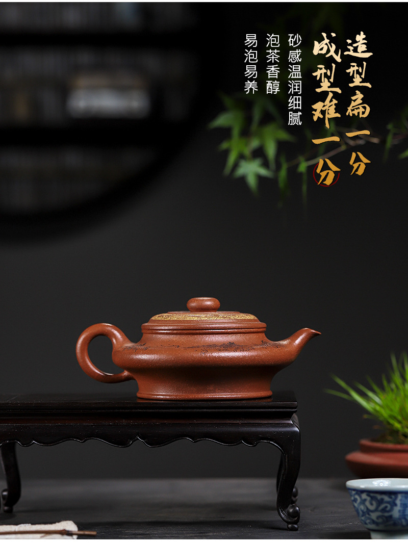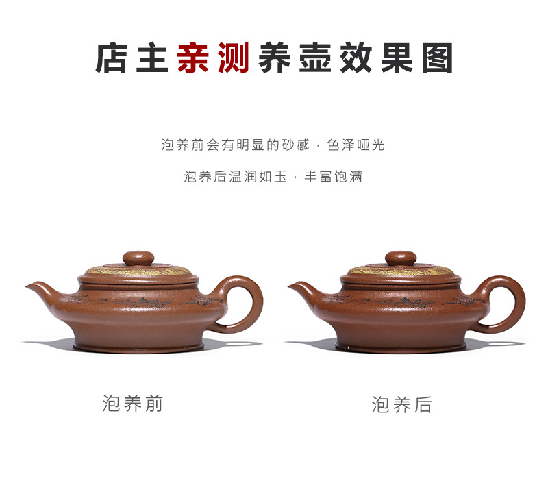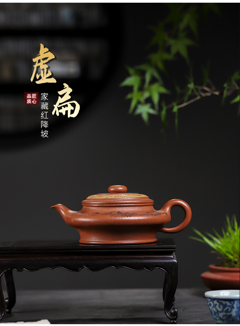 商品名称:宜兴手工紫砂壶家藏红降坡虚扁证书齐全家用泡茶壶出水爆爽大容量
