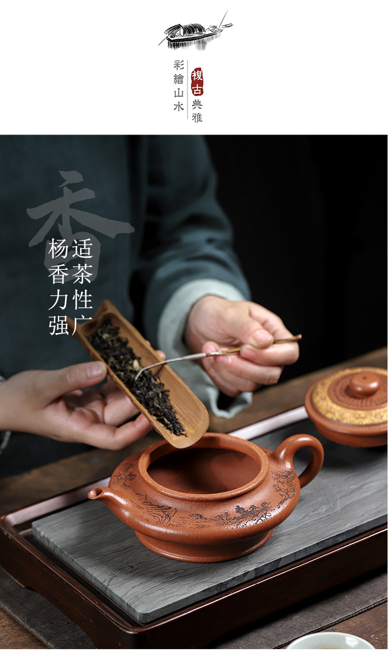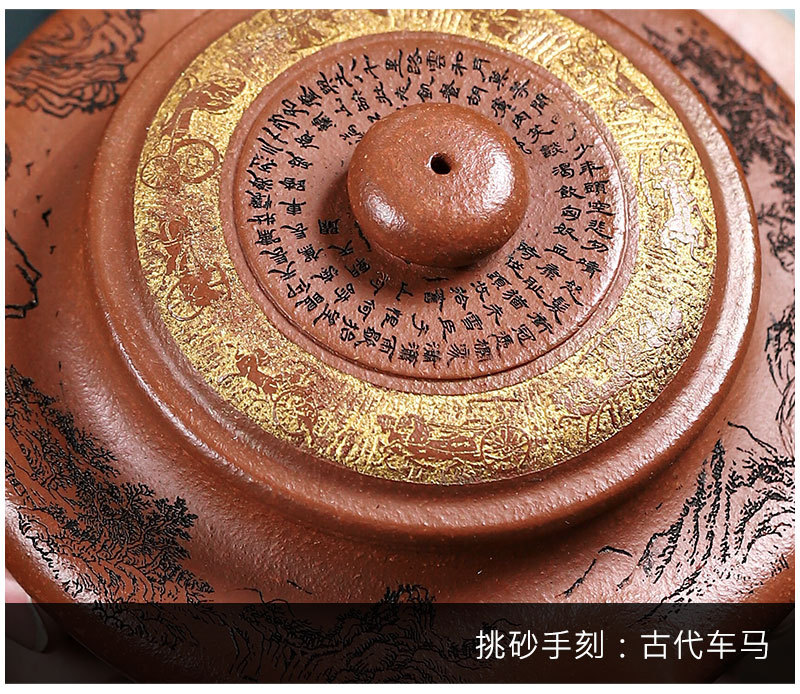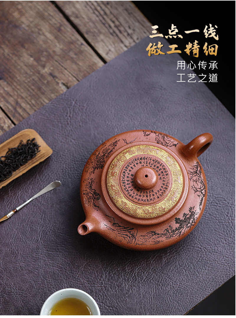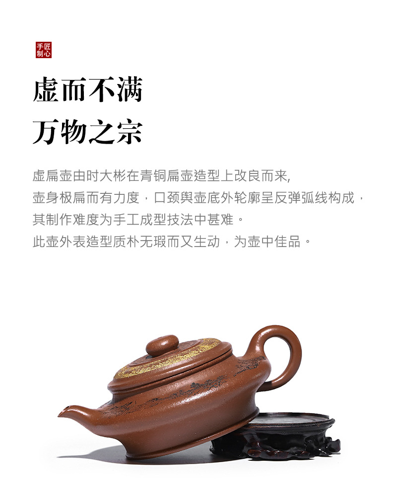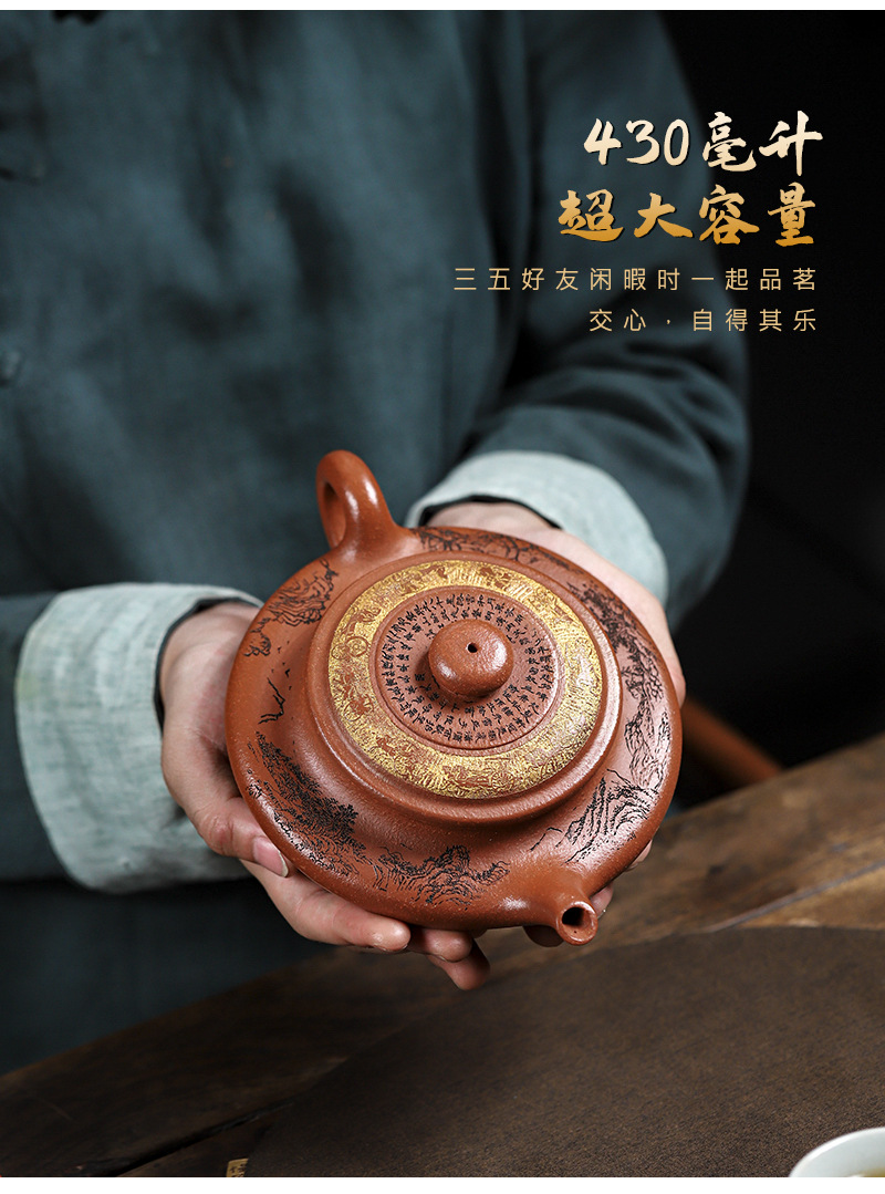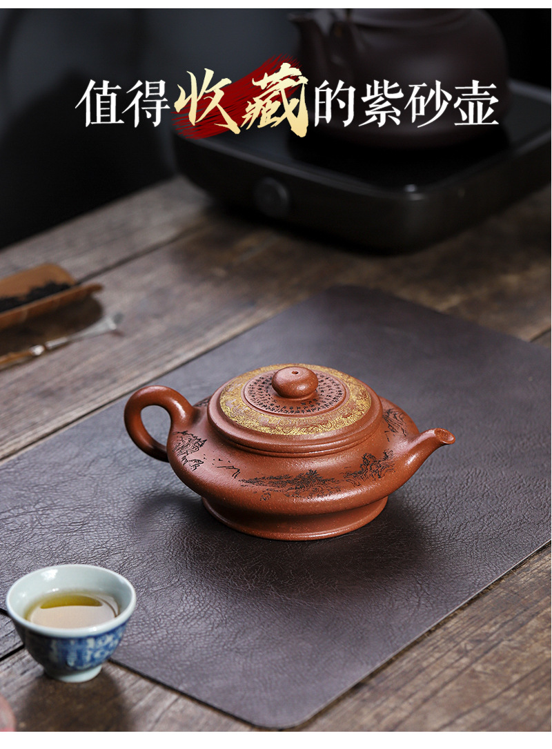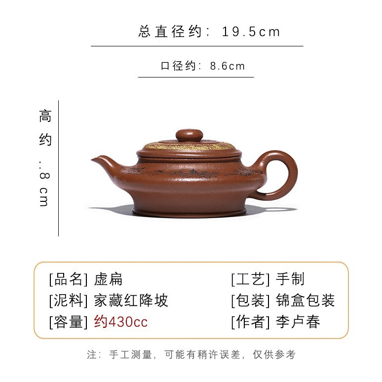 商品名称:宜兴手工紫砂壶家藏红降坡虚扁证书齐全家用泡茶壶出水爆爽大容量