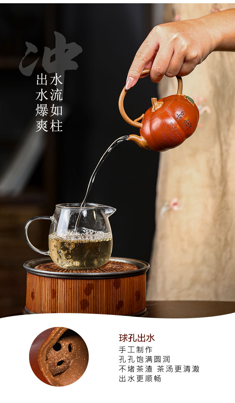 宜兴原矿无添加手工紫砂壶金降坡竹影家用茶具茶壶出水爆爽