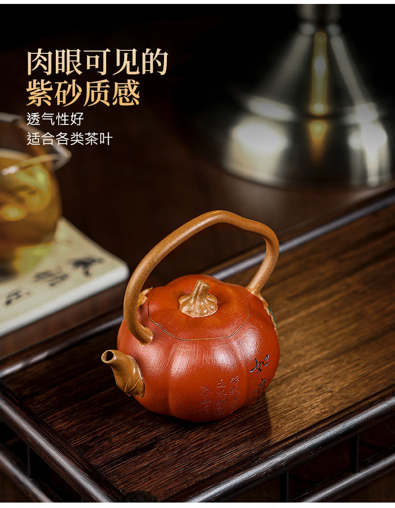 商品名称:宜兴手工紫砂壶家藏段泥南瓜提梁泡茶壶