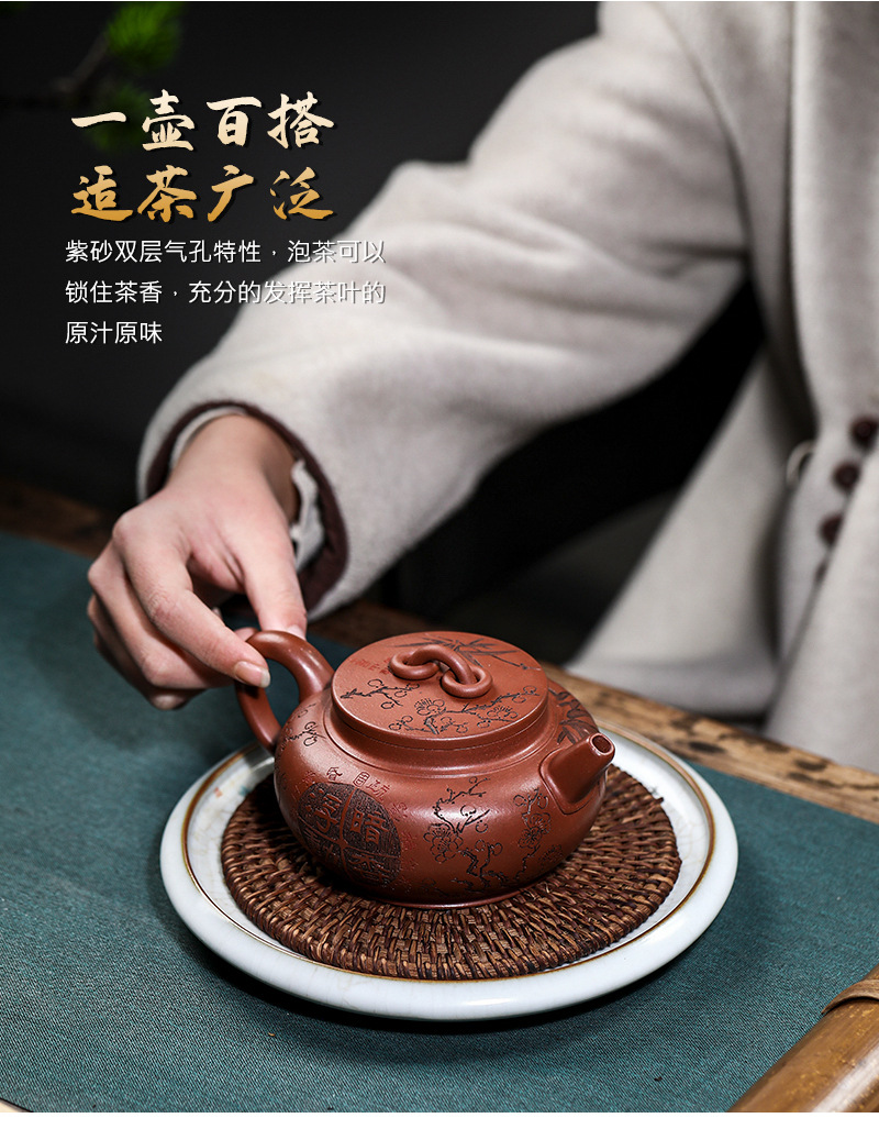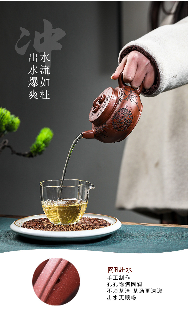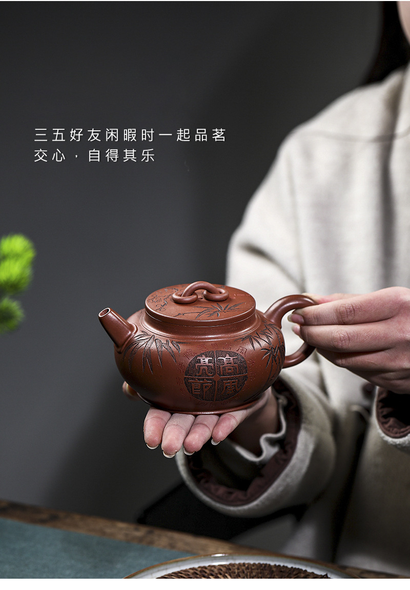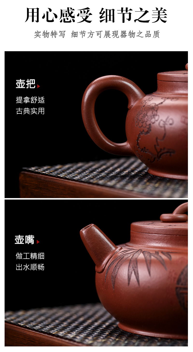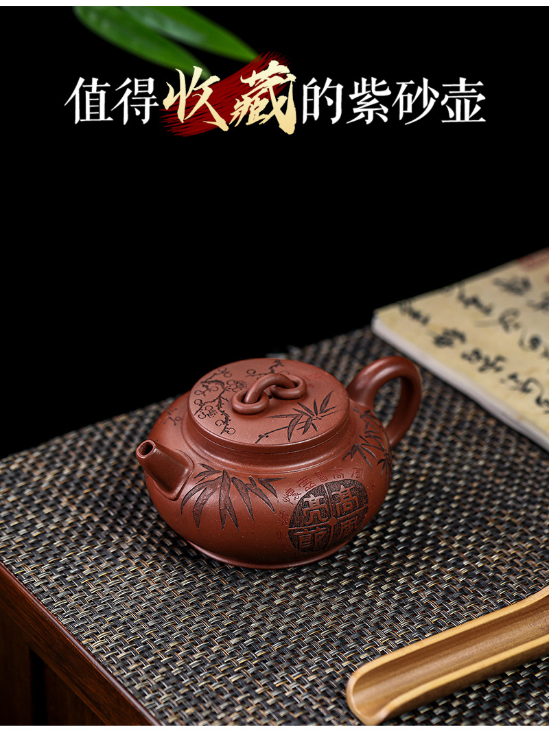 宜兴手工紫砂壶家藏龙血砂福禄相伴家用泡茶壶茶具出水爆爽
