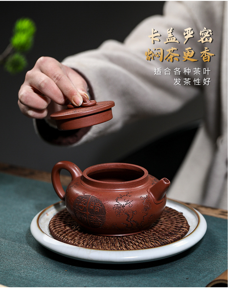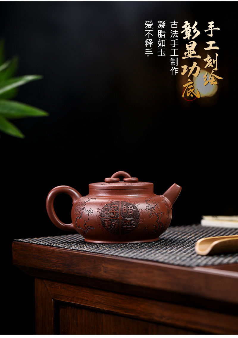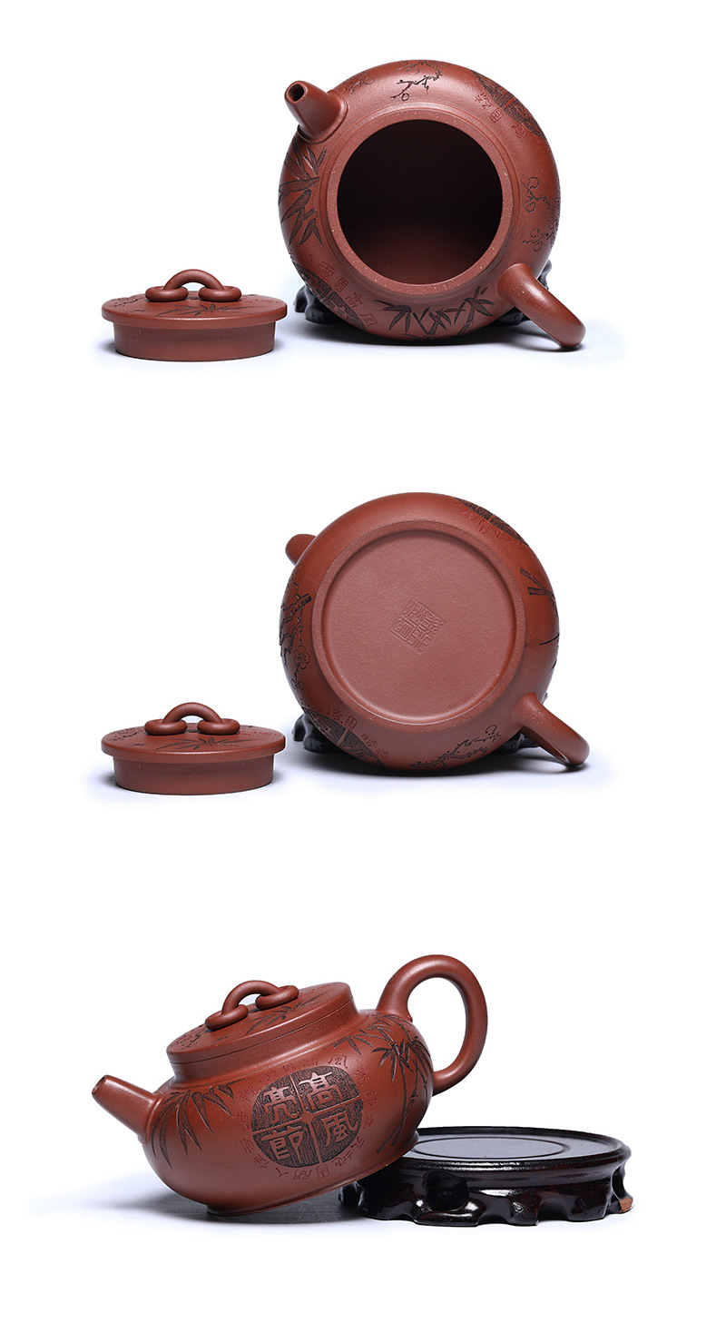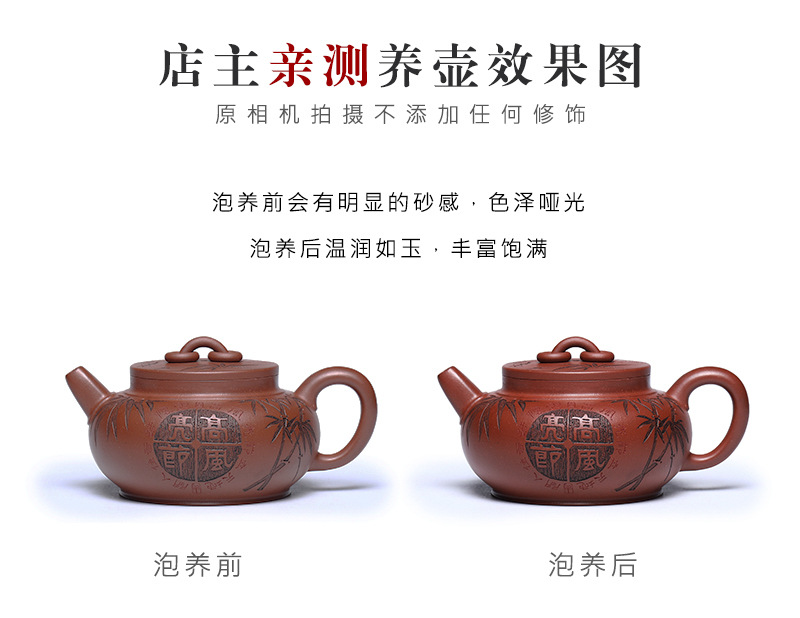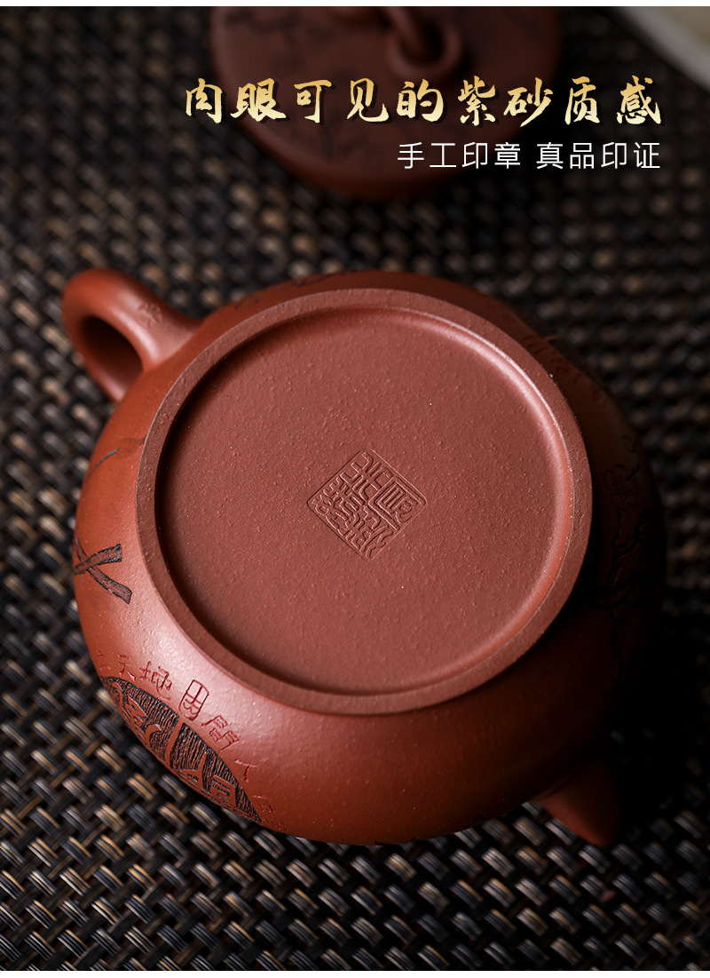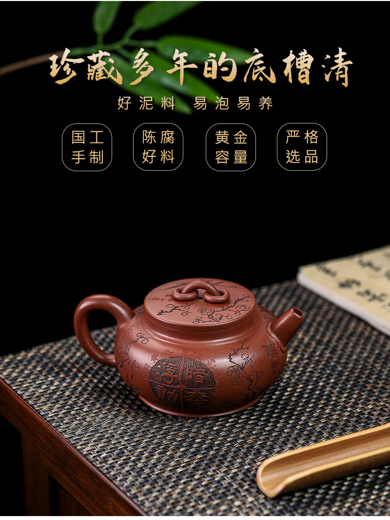 宜兴手工紫砂壶家藏龙血砂福禄相伴家用泡茶壶茶具出水爆爽