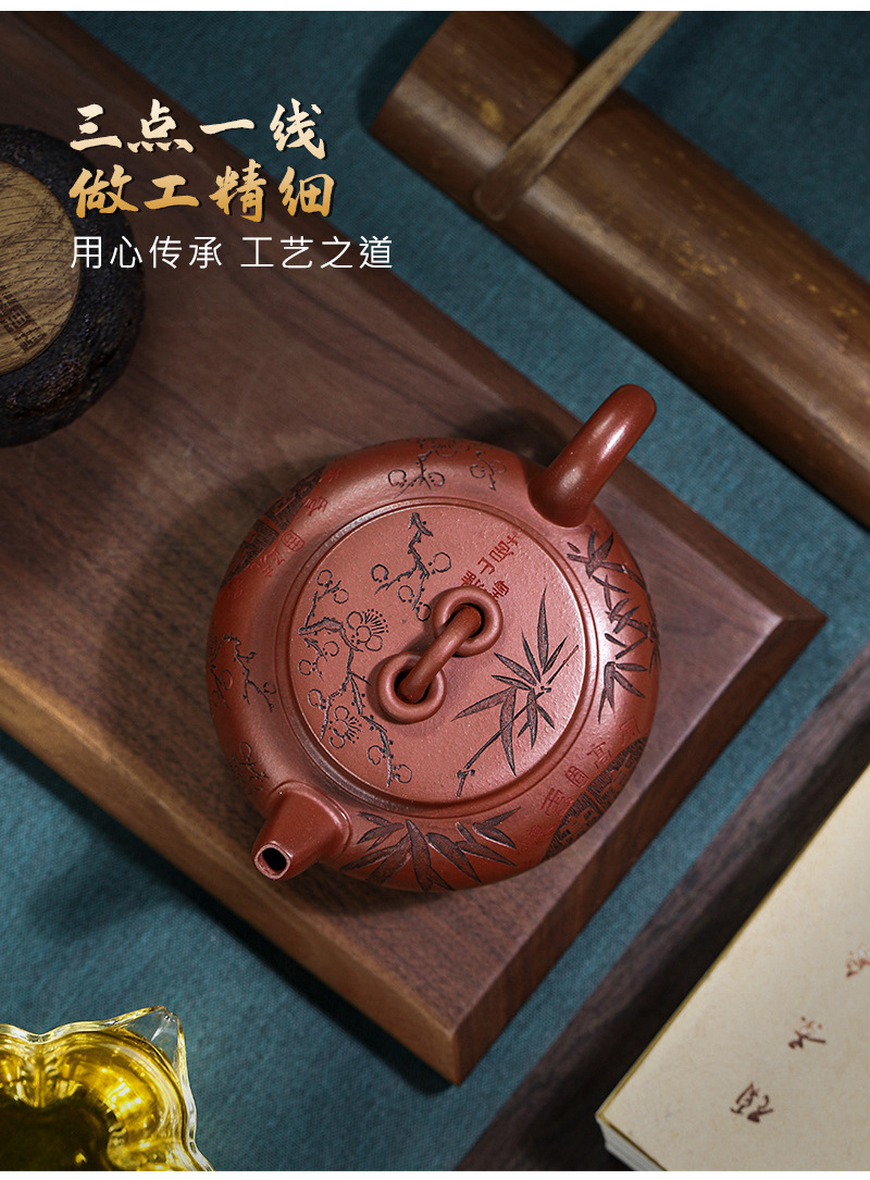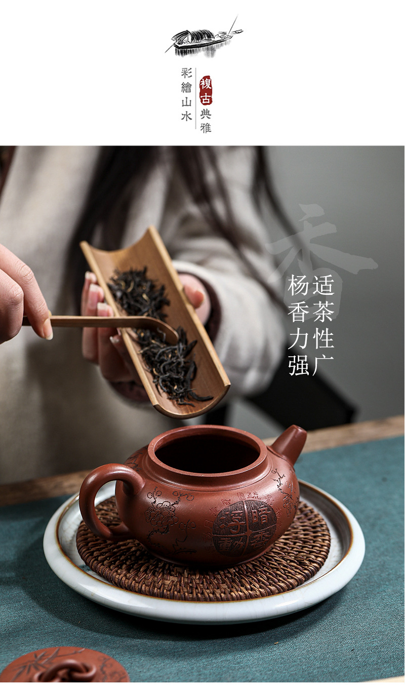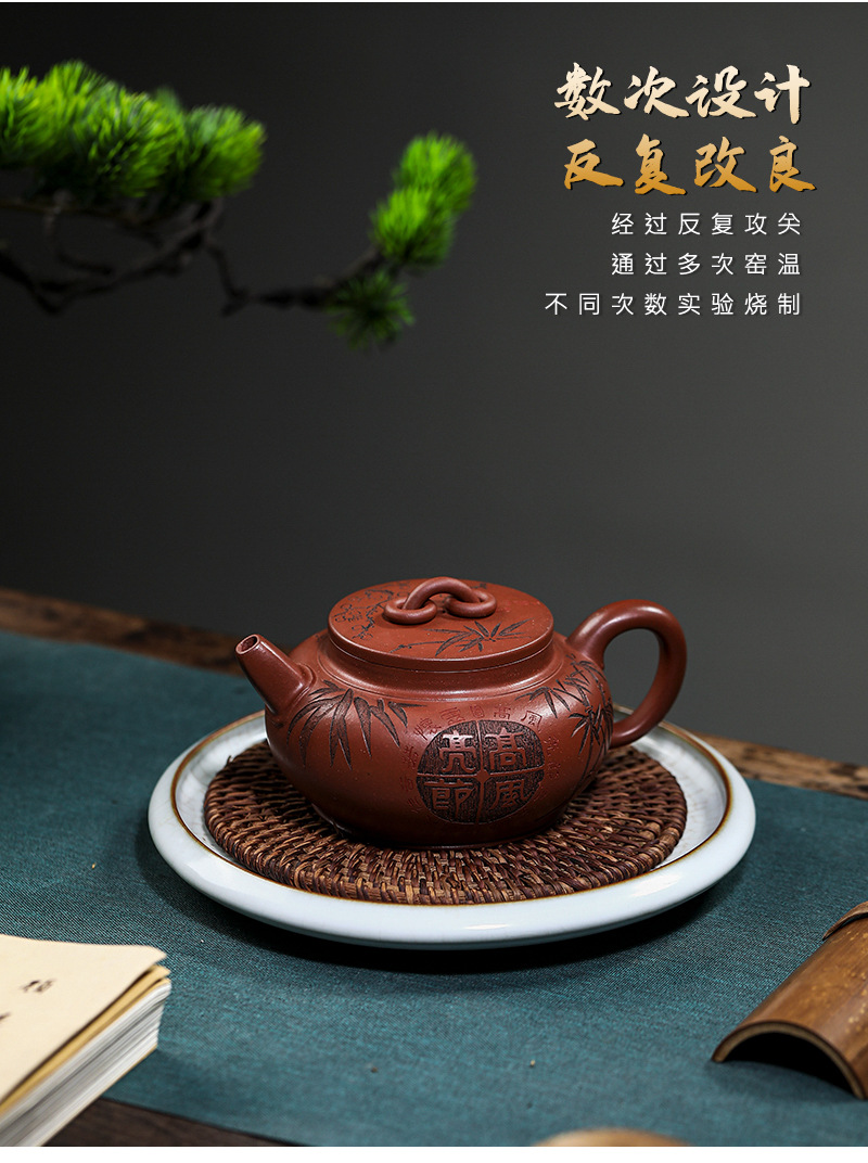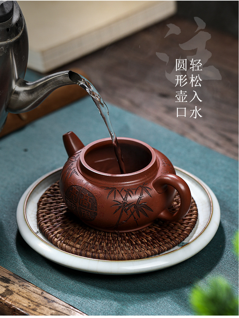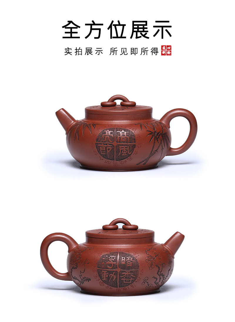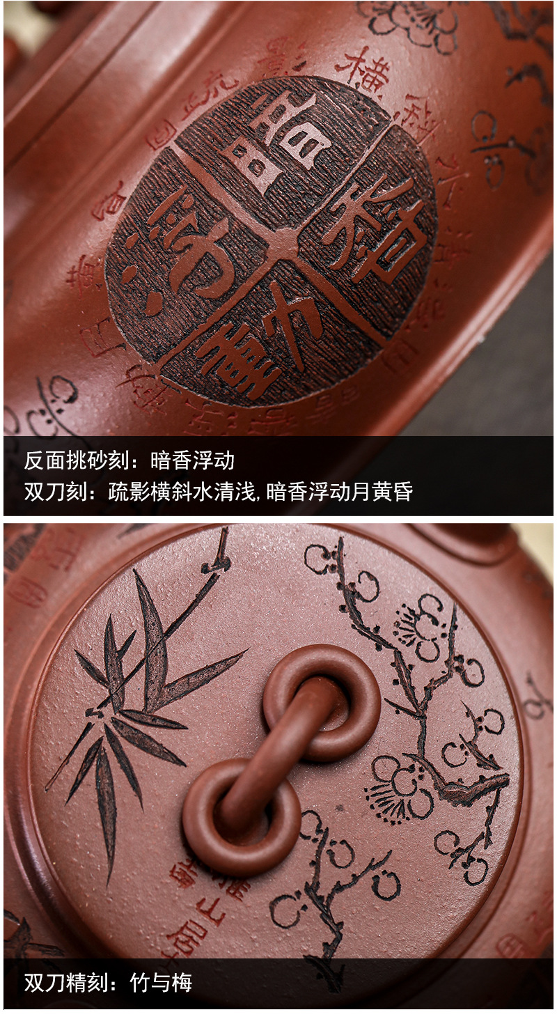 宜兴手工紫砂壶家藏龙血砂福禄相伴家用泡茶壶茶具出水爆爽
