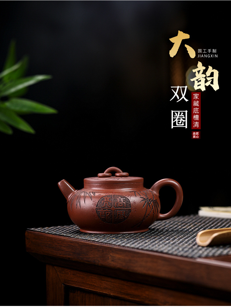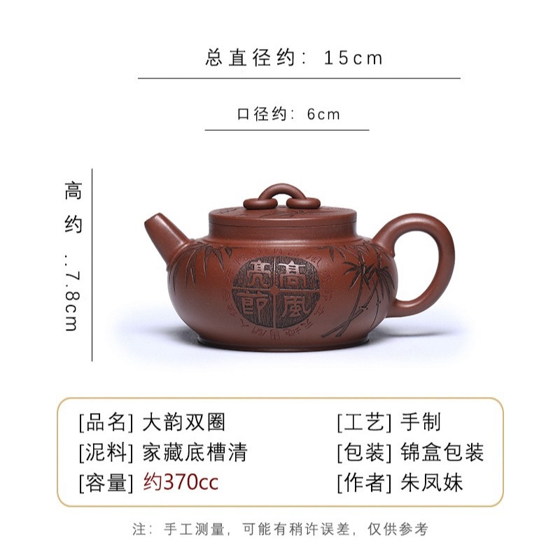 商品名称:宜兴手工紫砂壶 大韵双圈 家藏底槽清茶壶证书齐全出水爆爽