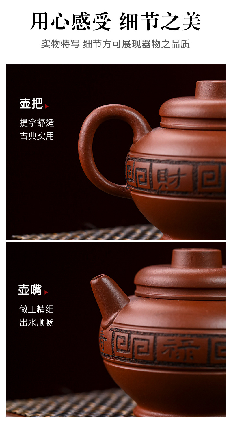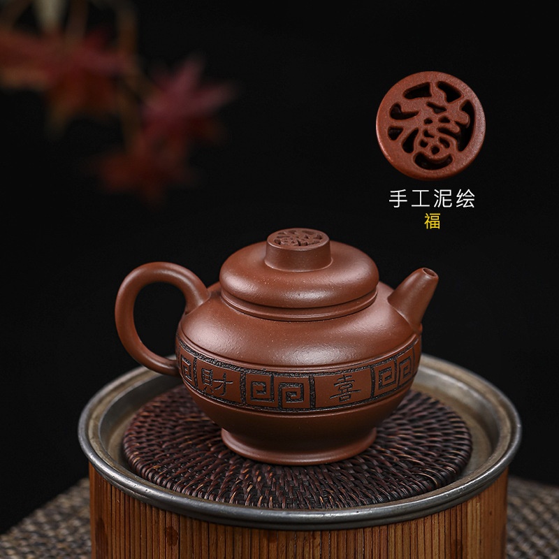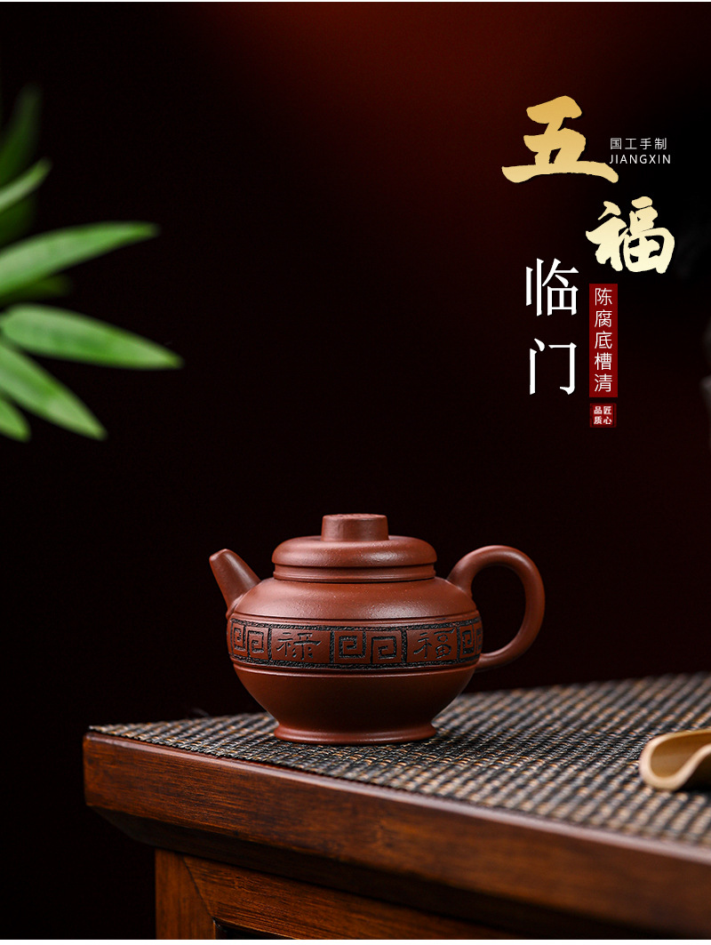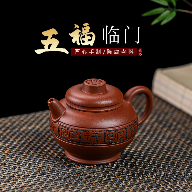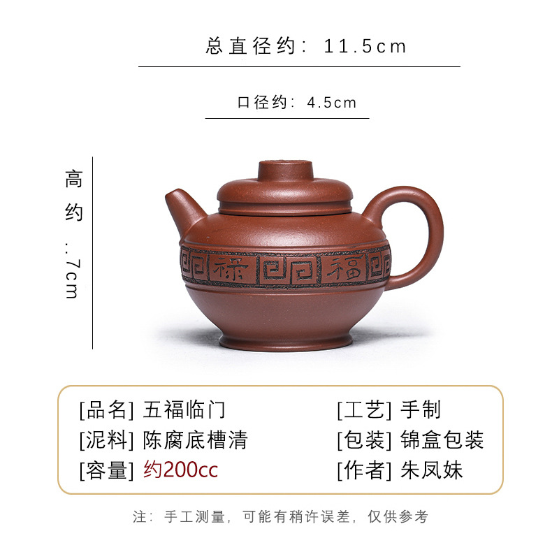 商品名称:宜兴手工紫砂壶家藏底槽清五福临门证书齐全