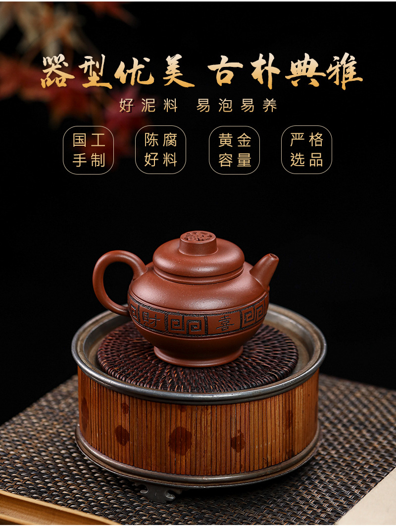 宜兴手工紫砂壶证书全陈腐老墨绿泥聚福易包浆出水暴爽不漏水