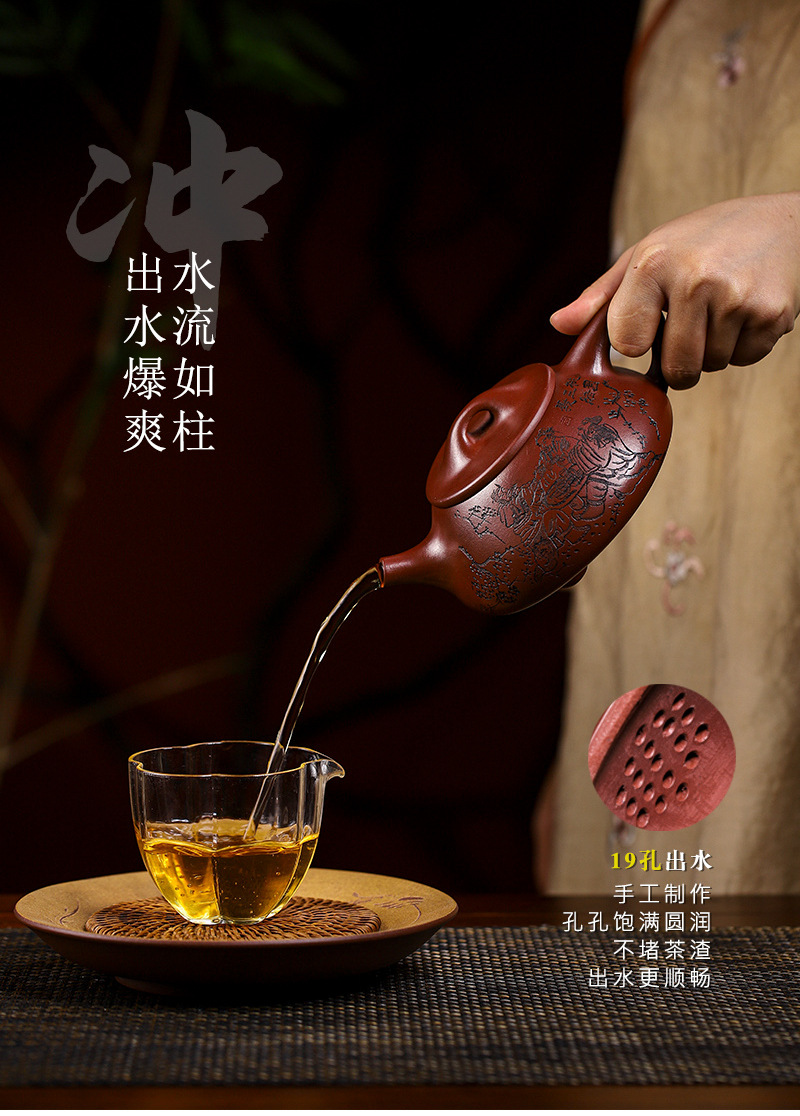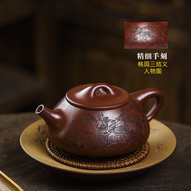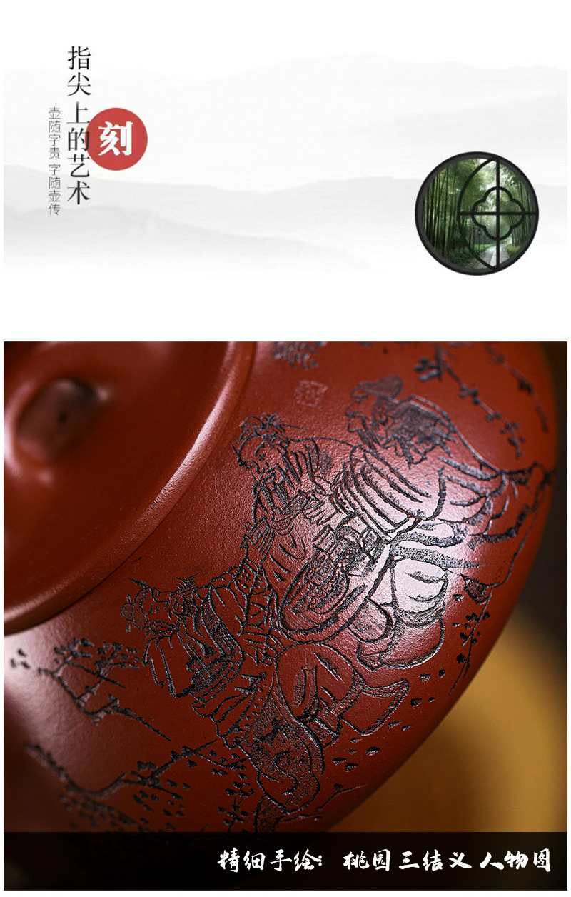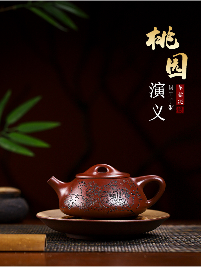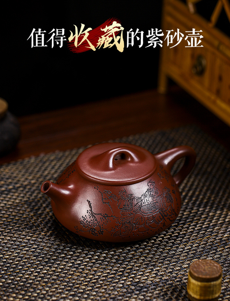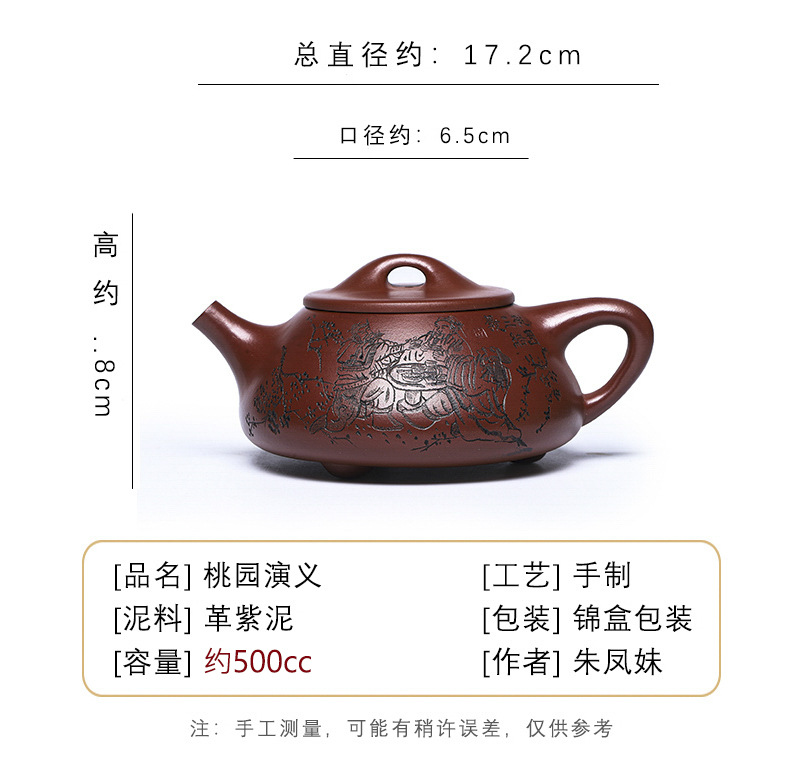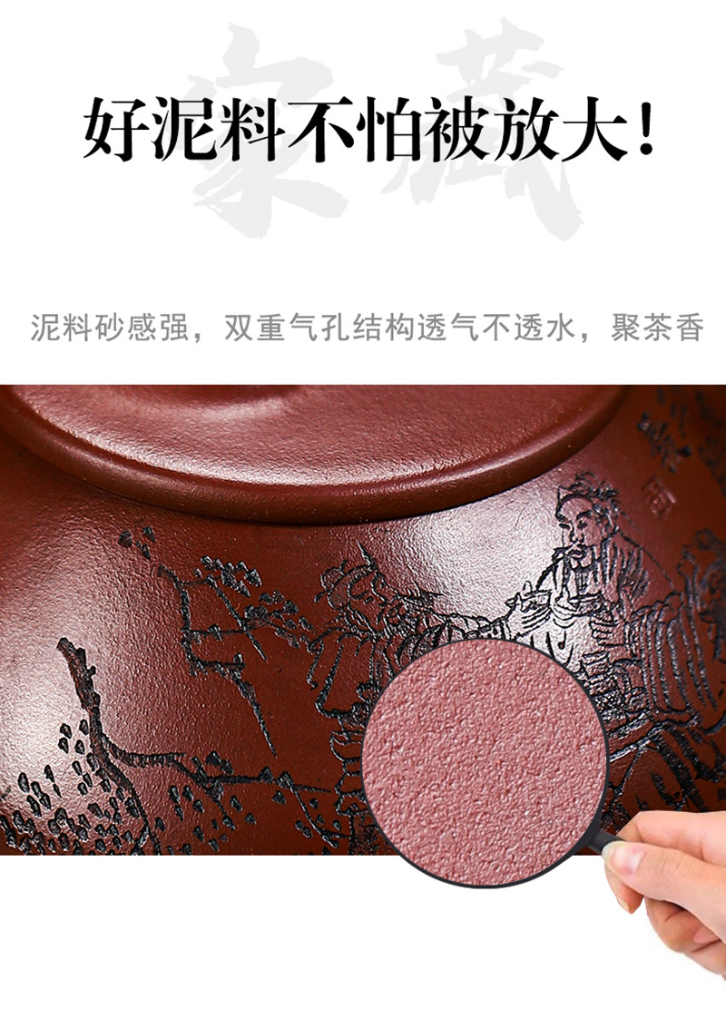 商品名称:宜兴手工紫砂壶家藏革紫泥桃园演义出水爆爽