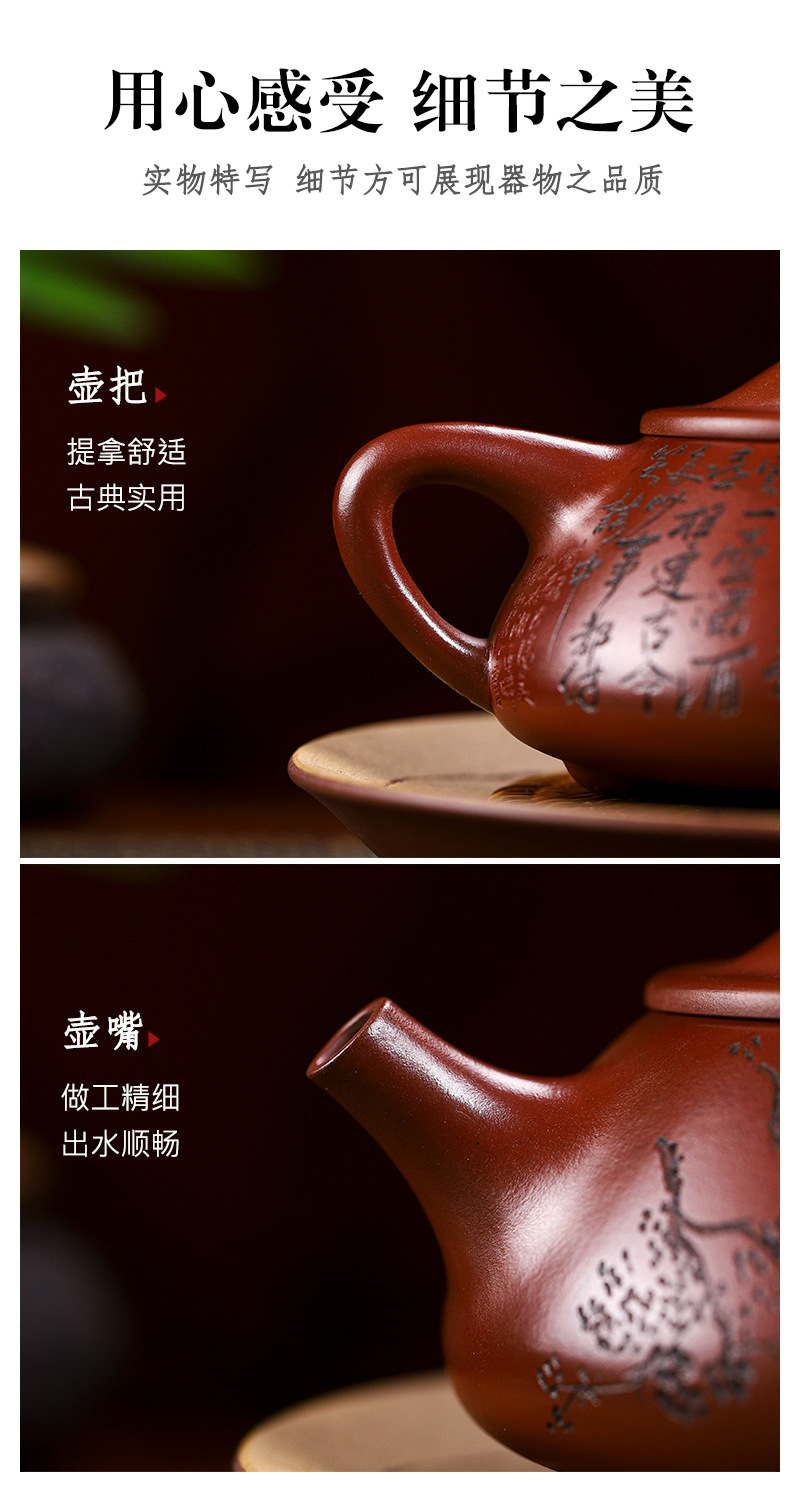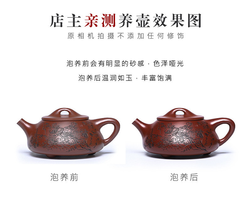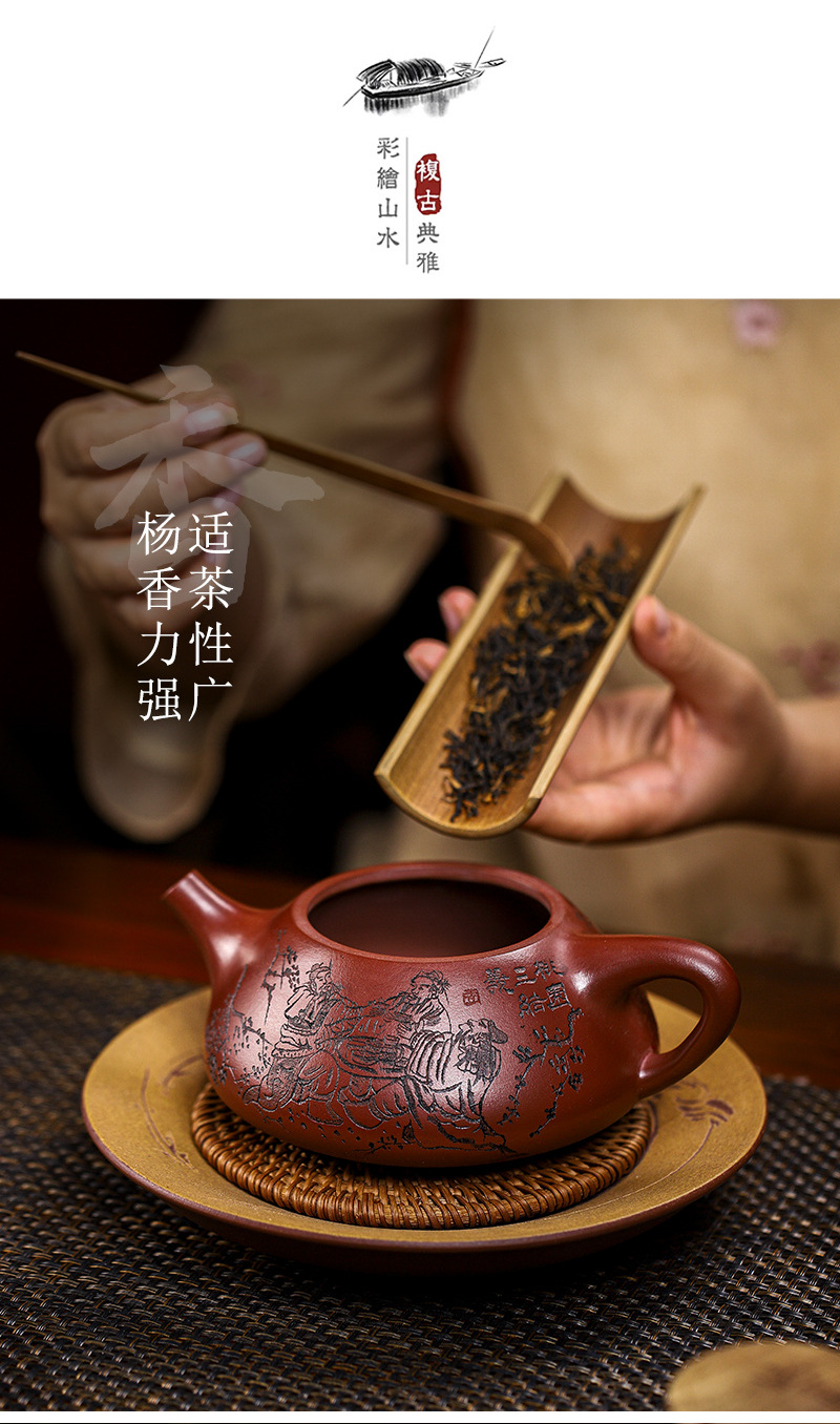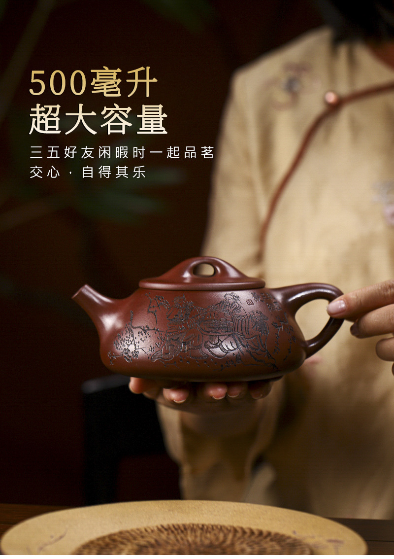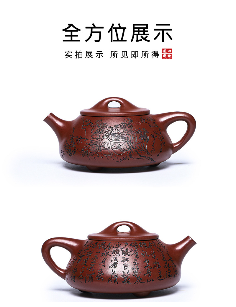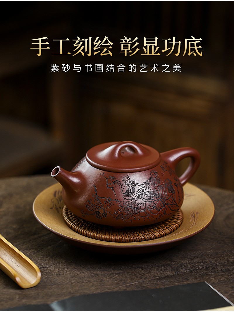 商品名称:宜兴手工紫砂壶家藏革紫泥桃园演义出水爆爽